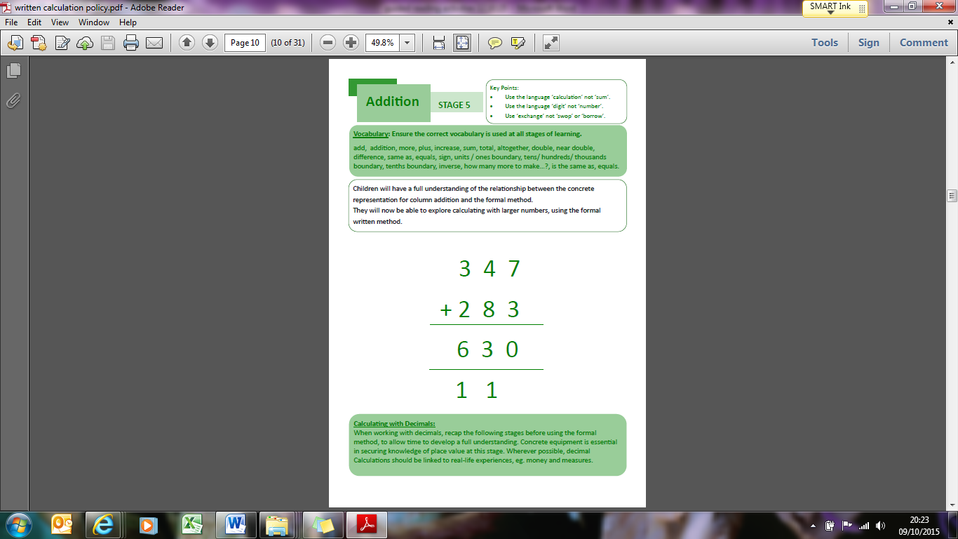 In order to add together larger numbers we have used rounding and partitioning. Please have a look at some of our work below.
