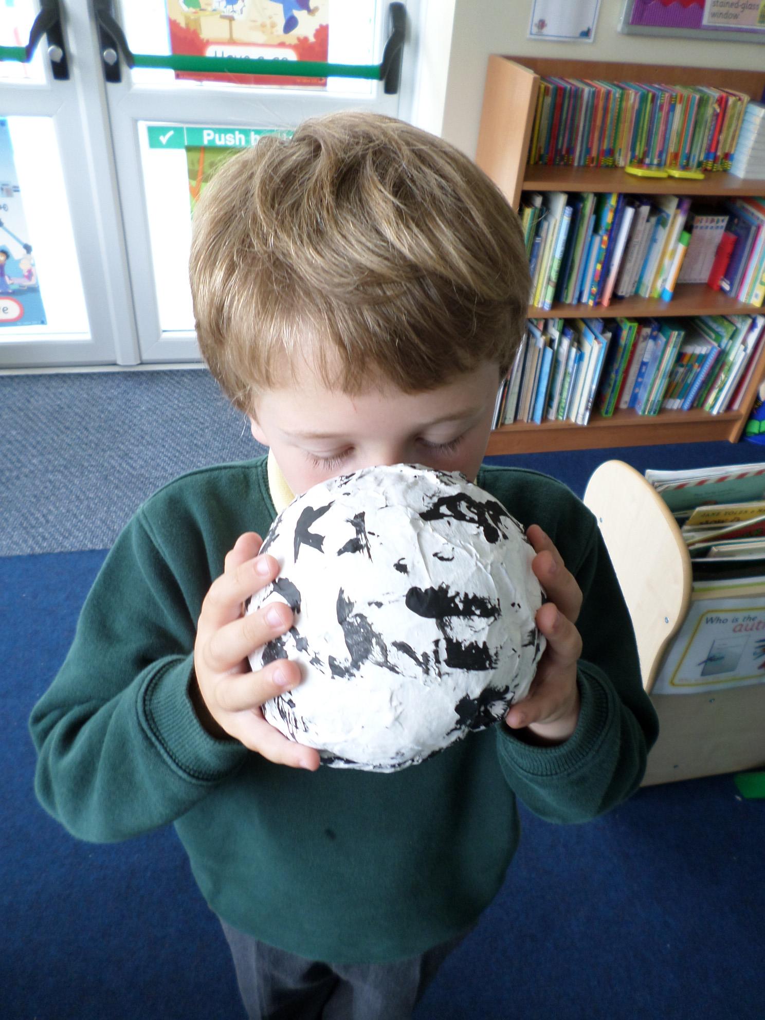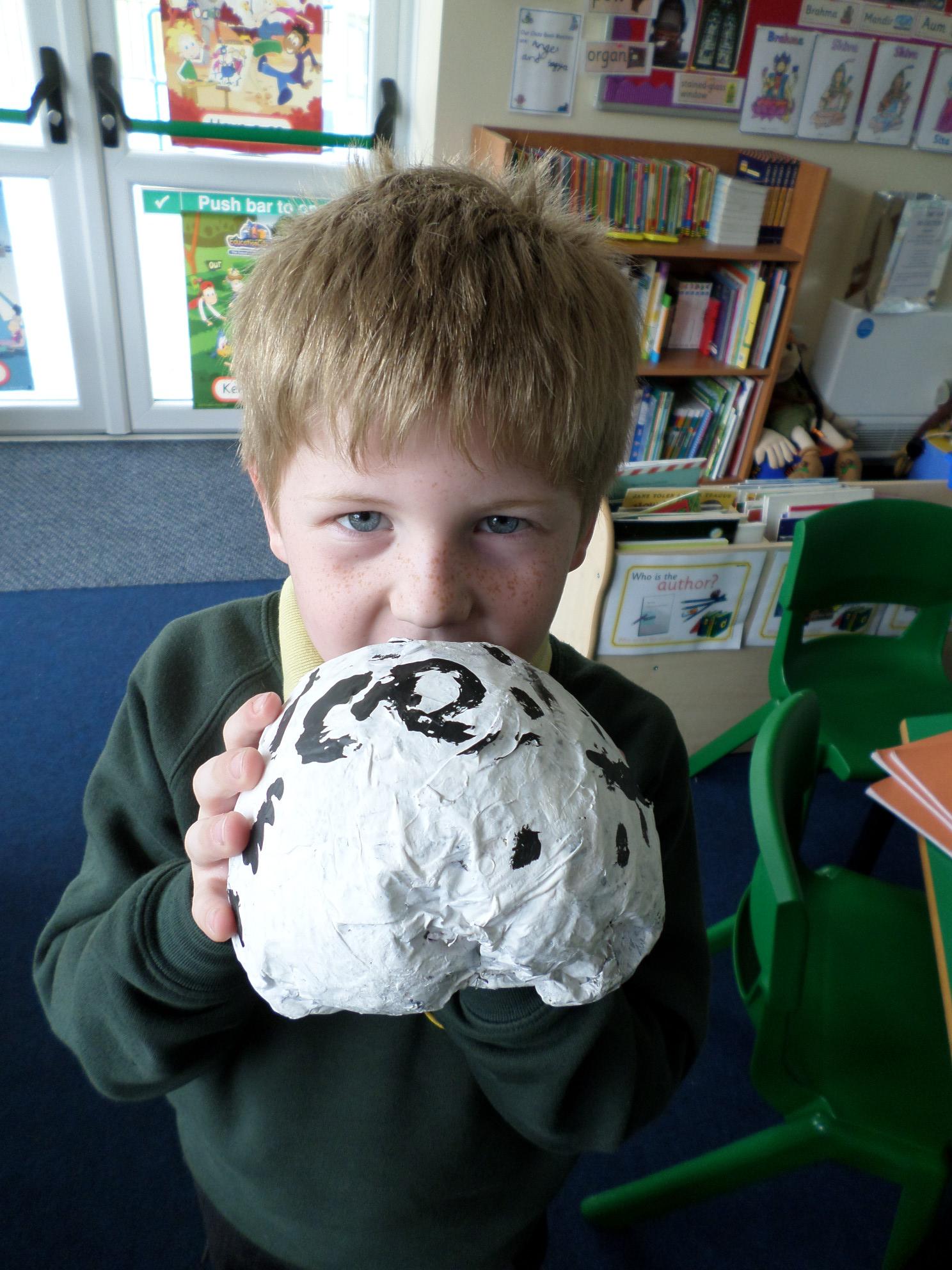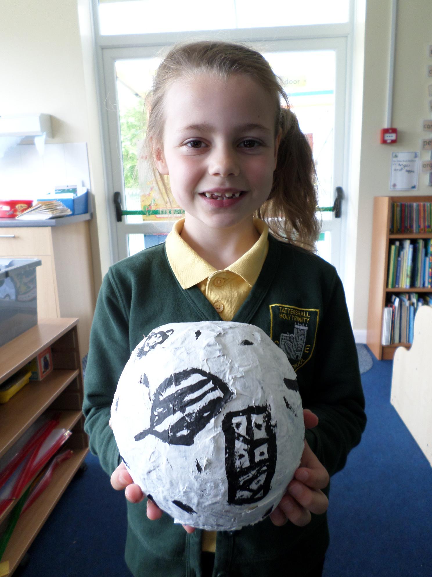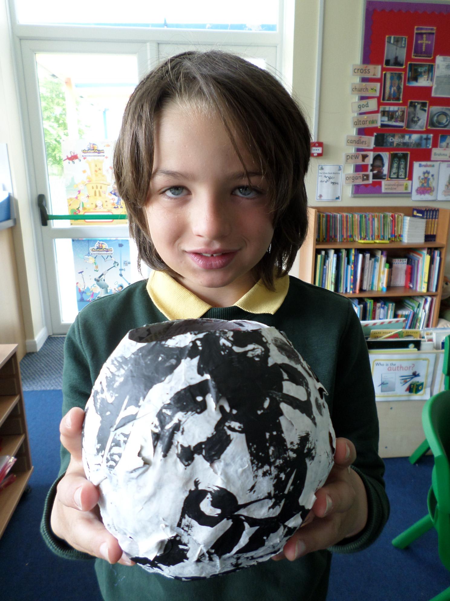 We have been looking at African art and also at the way ostrich eggs are used as water bottles. We made our own papier mache eggs and decorated them to resemble the ostrich egg water carriers. We had great fun and got very sticky. When we popped the balloons, some of our carriers wrinkled a bit but we still managed to decorate them and we think they look great. Have a look at the photos below. If you want to see more of our African art work check out the class Art and Design sub page to see our colourful African collars.