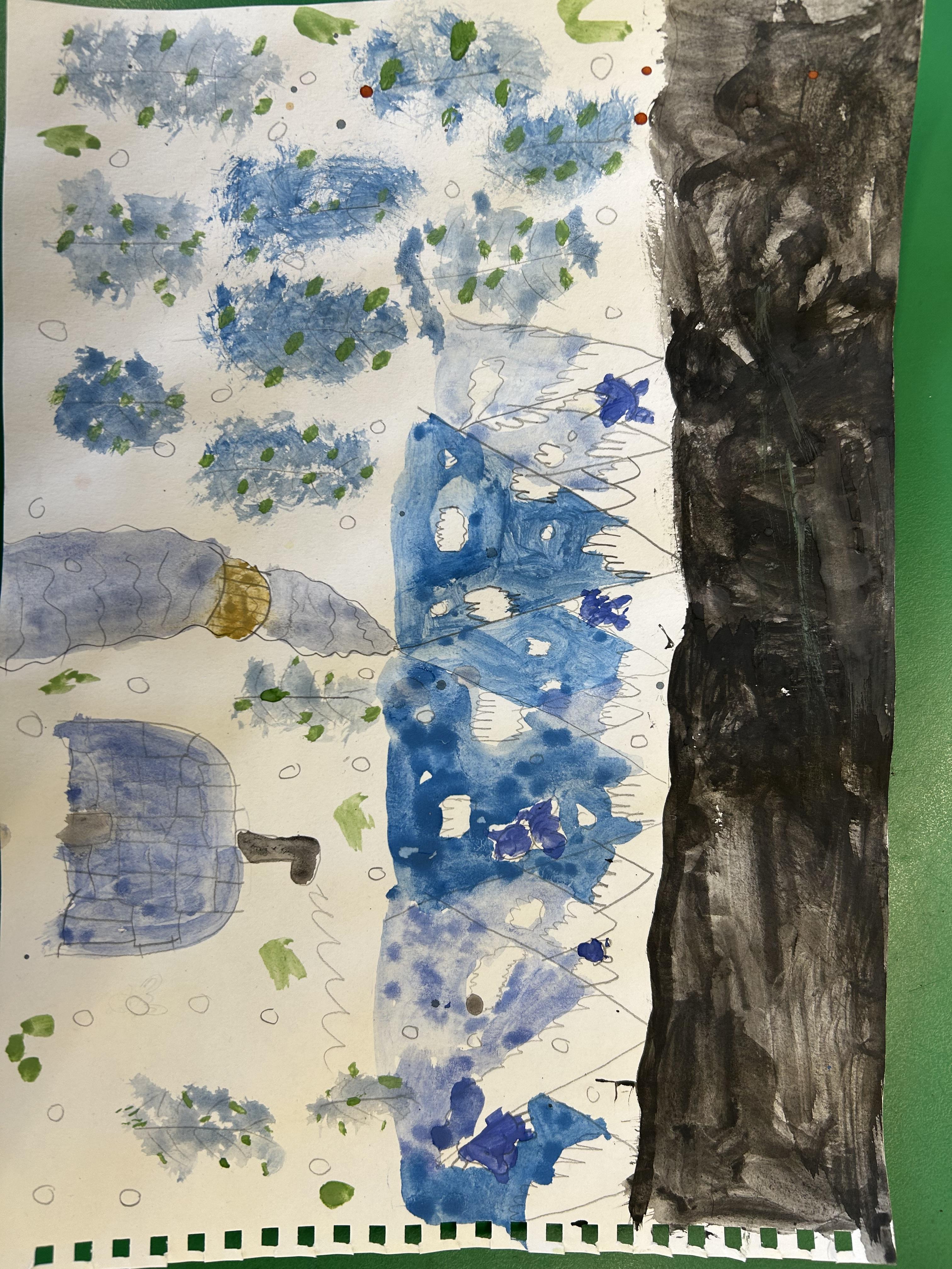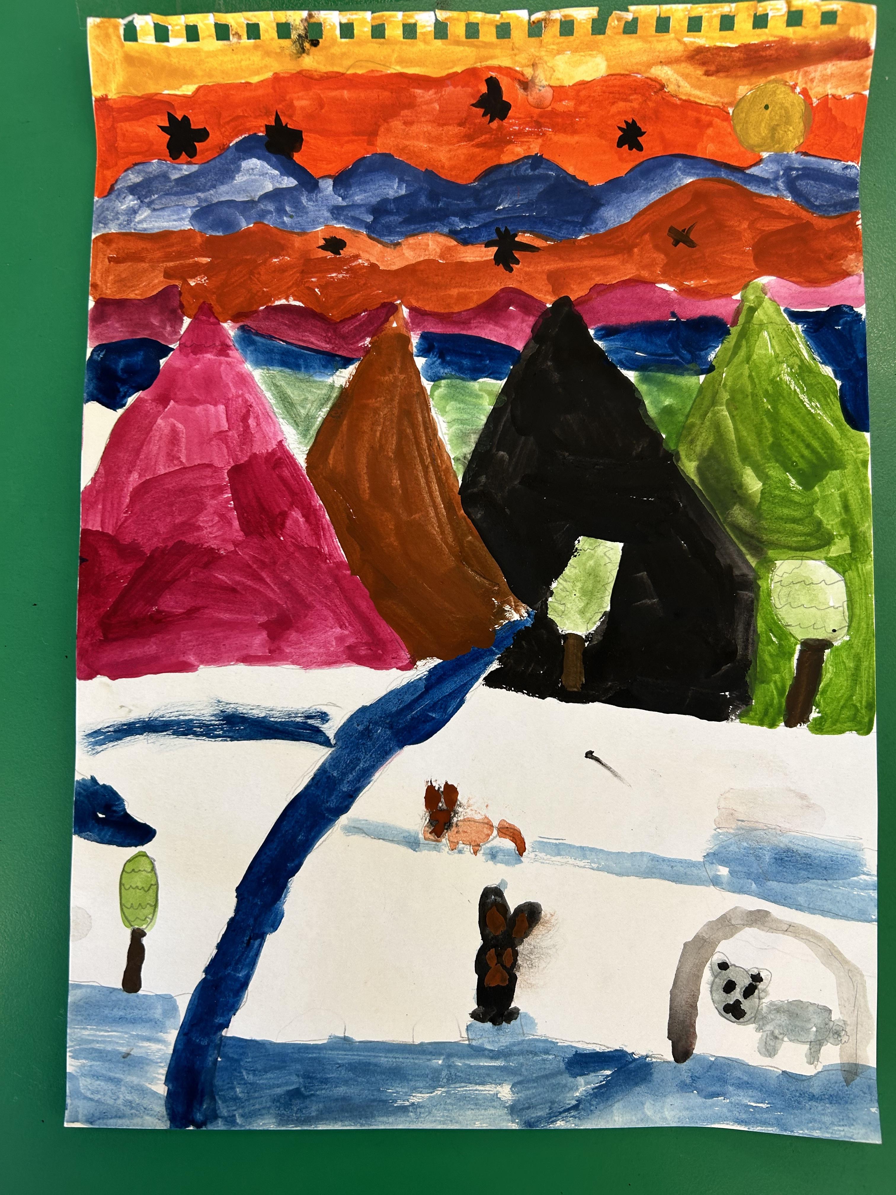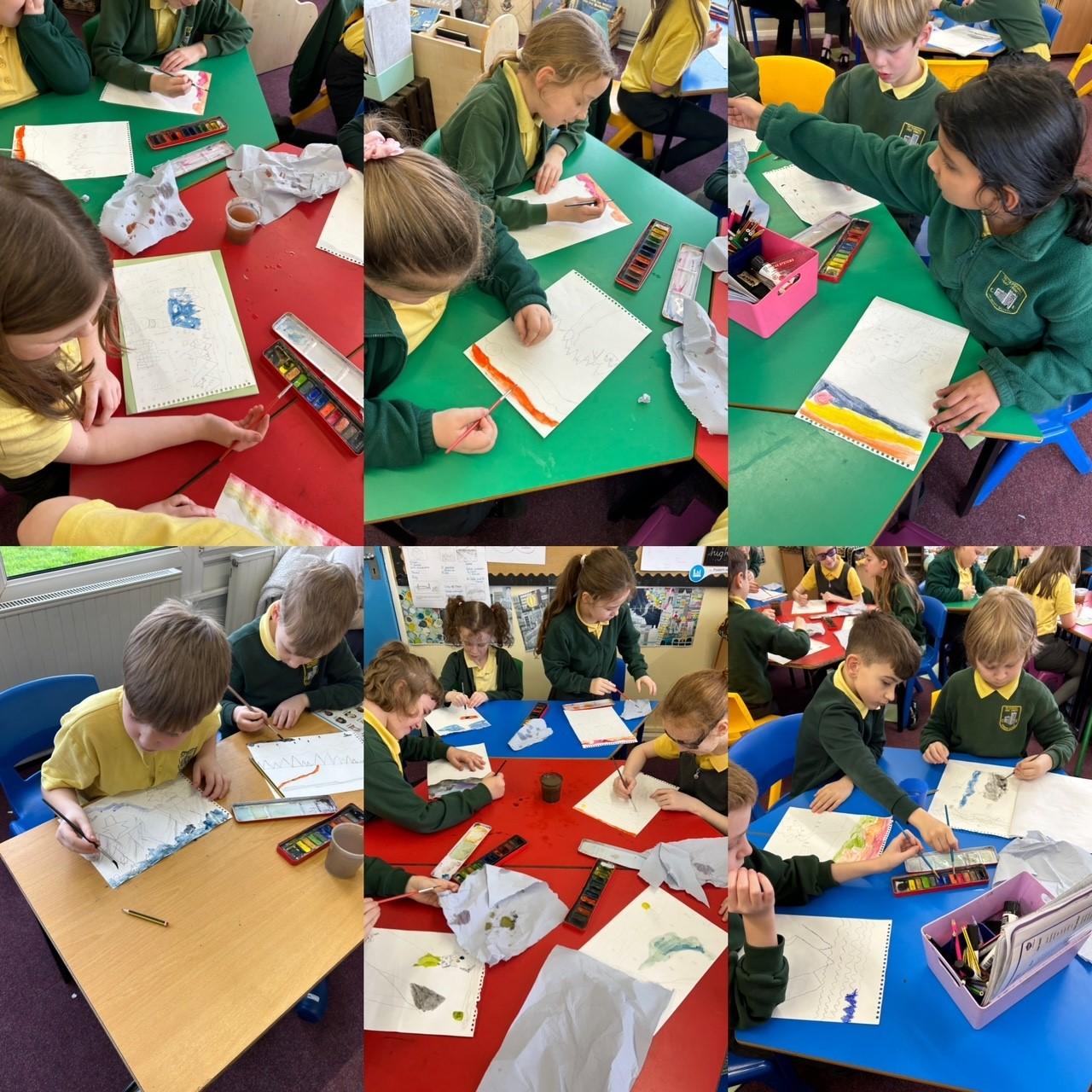 Completing our watercolours in the style of Ted Harrison
