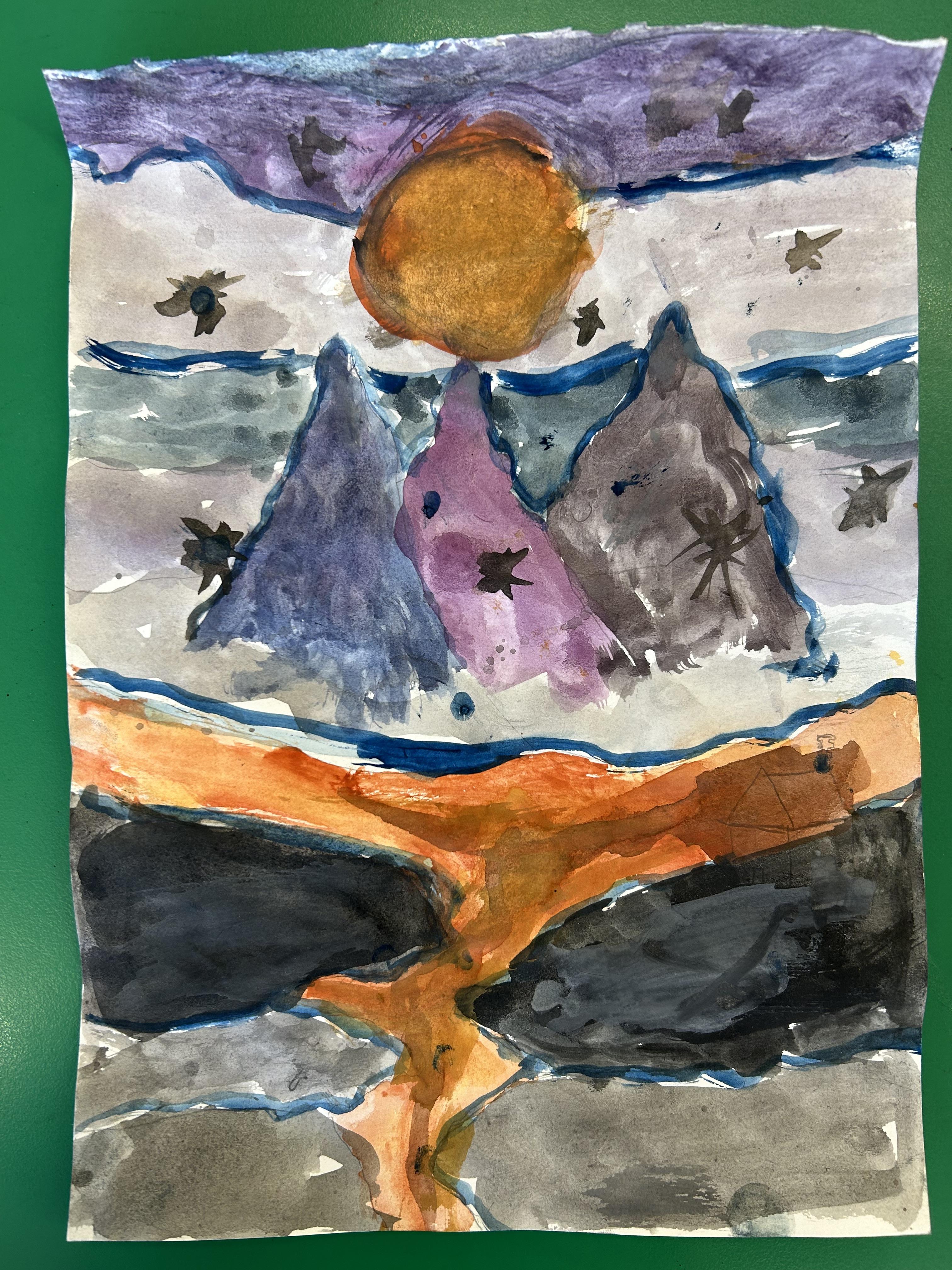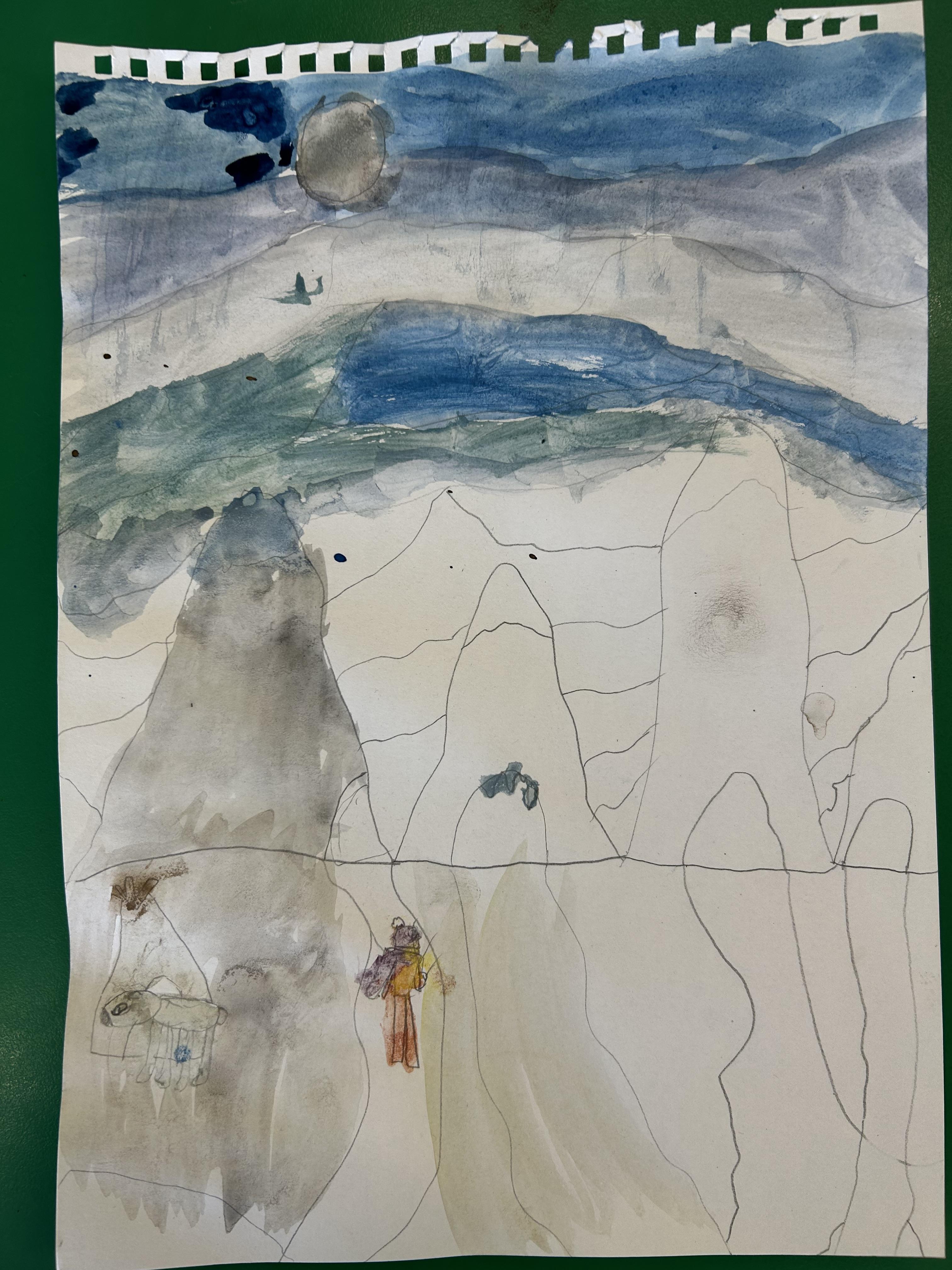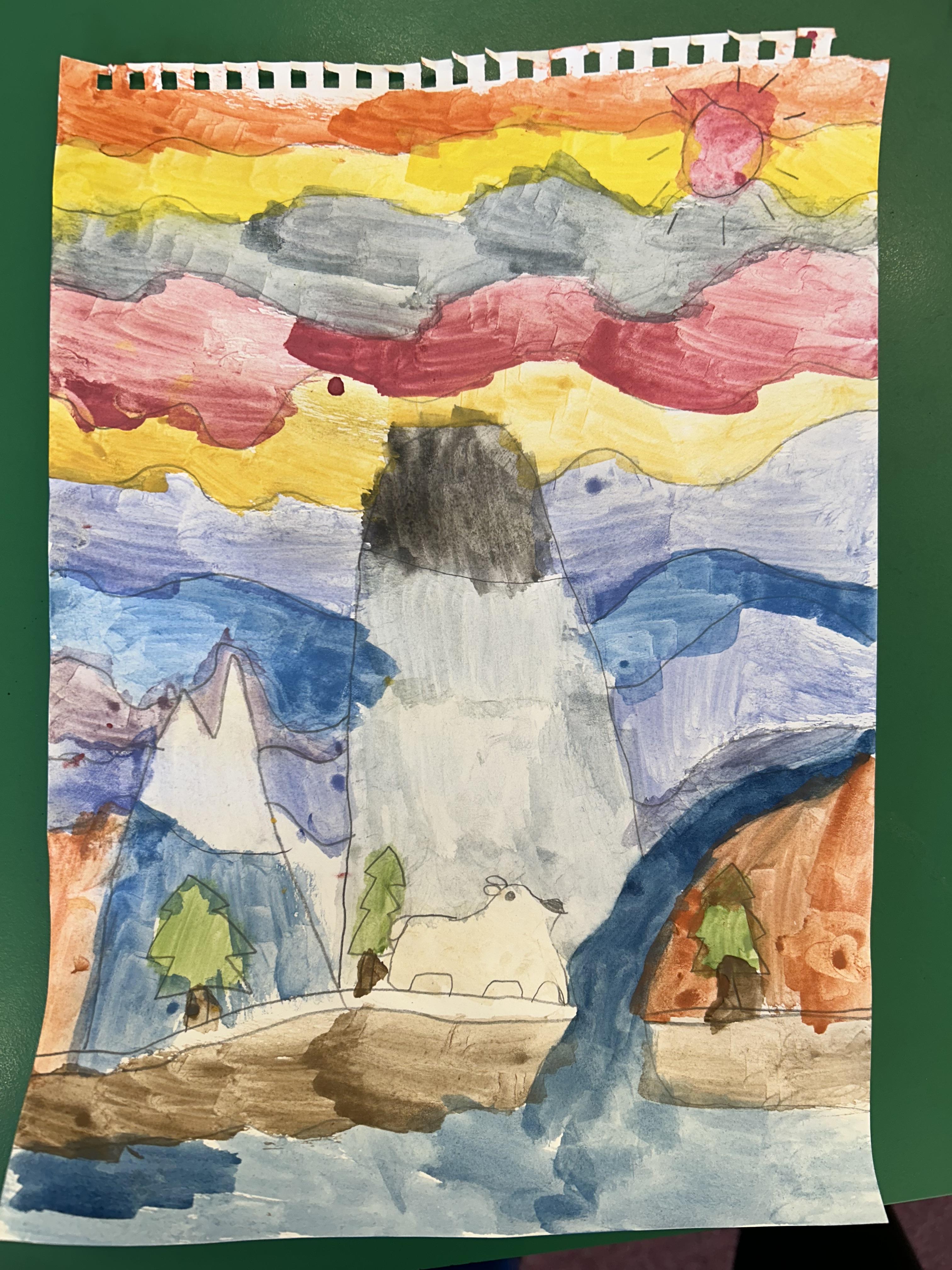 Completing our watercolours in the style of Ted Harrison