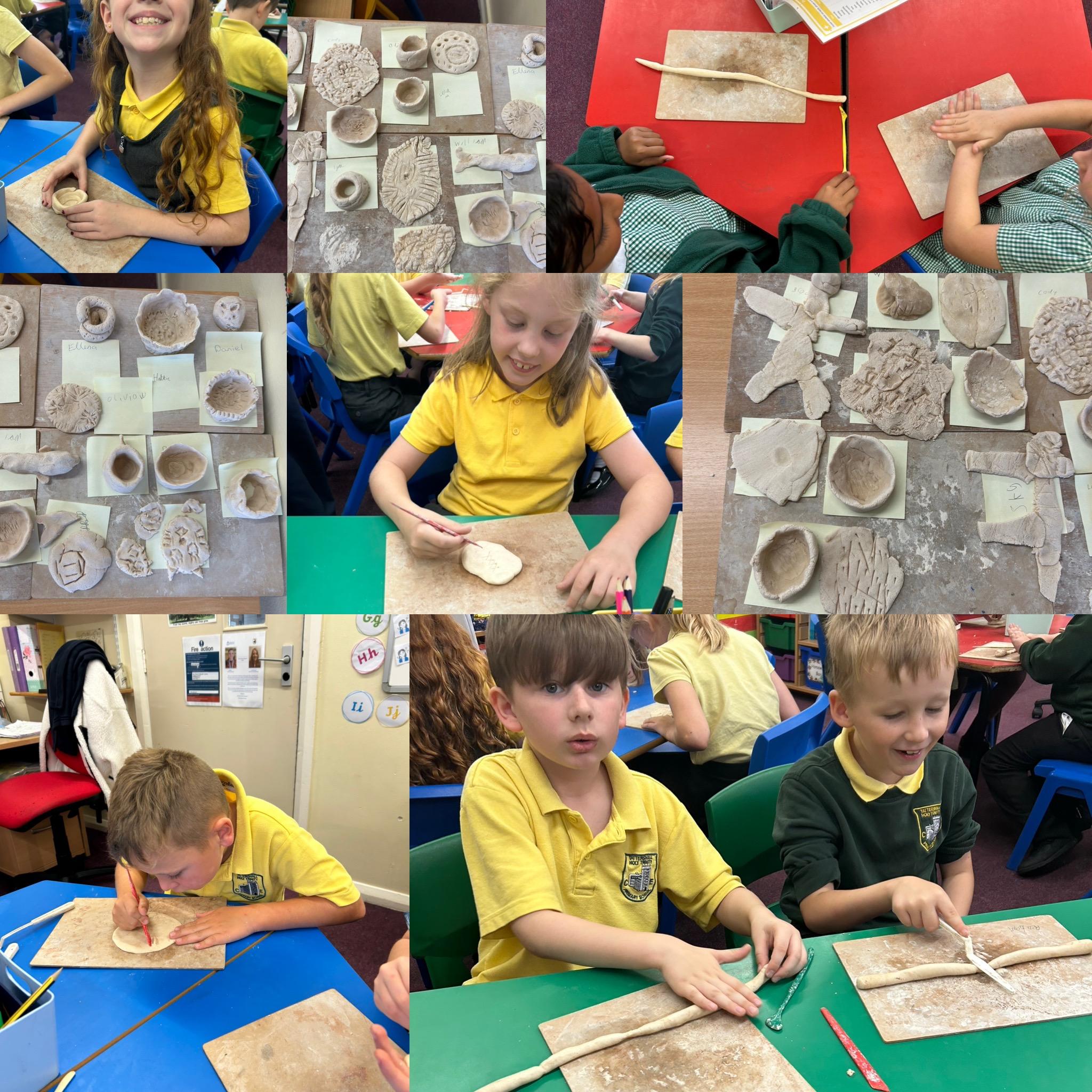 We have used salt dough to experiment with patterns and making coils before designing and making our Roman pots from clay in a few weeks!