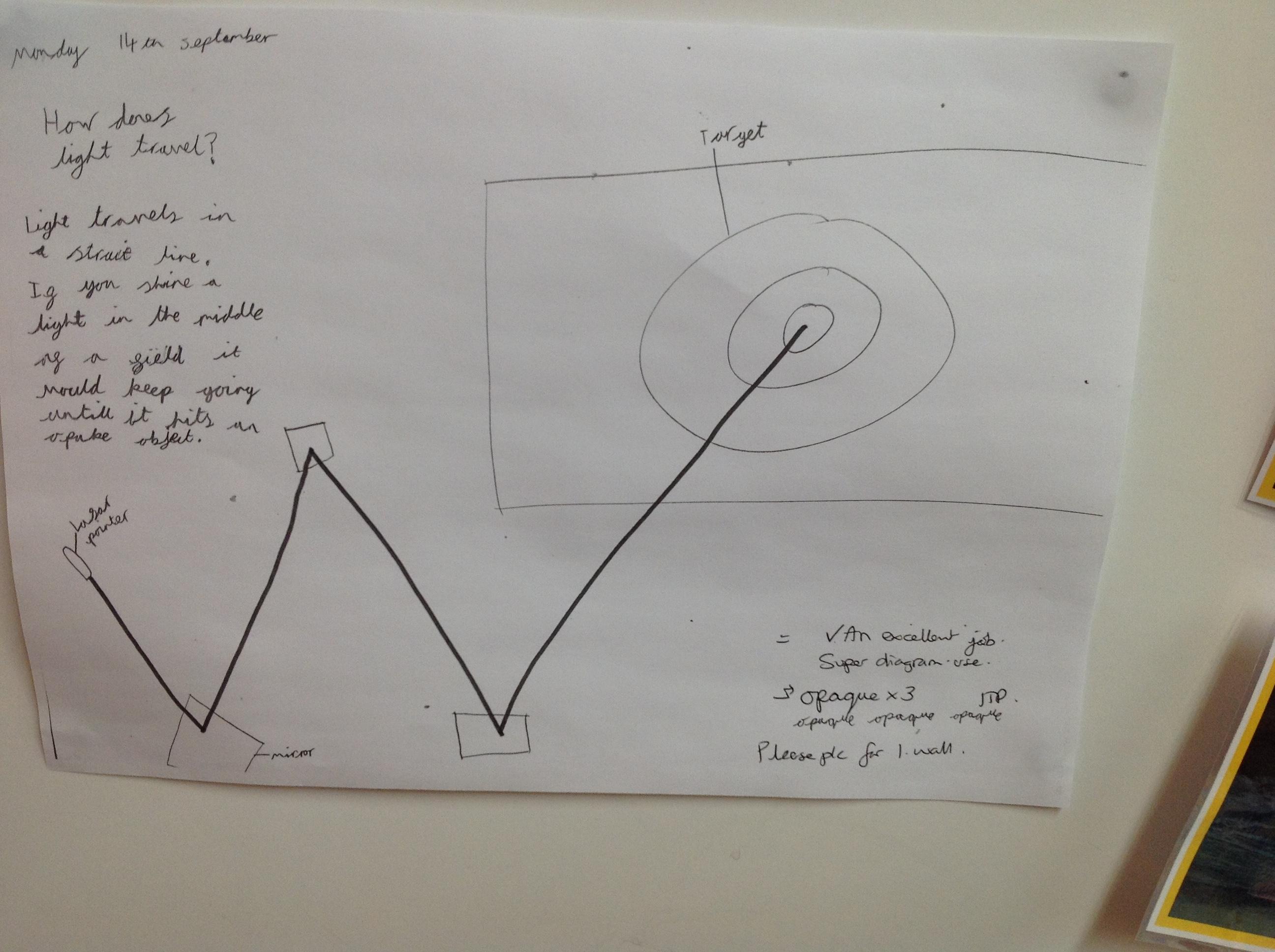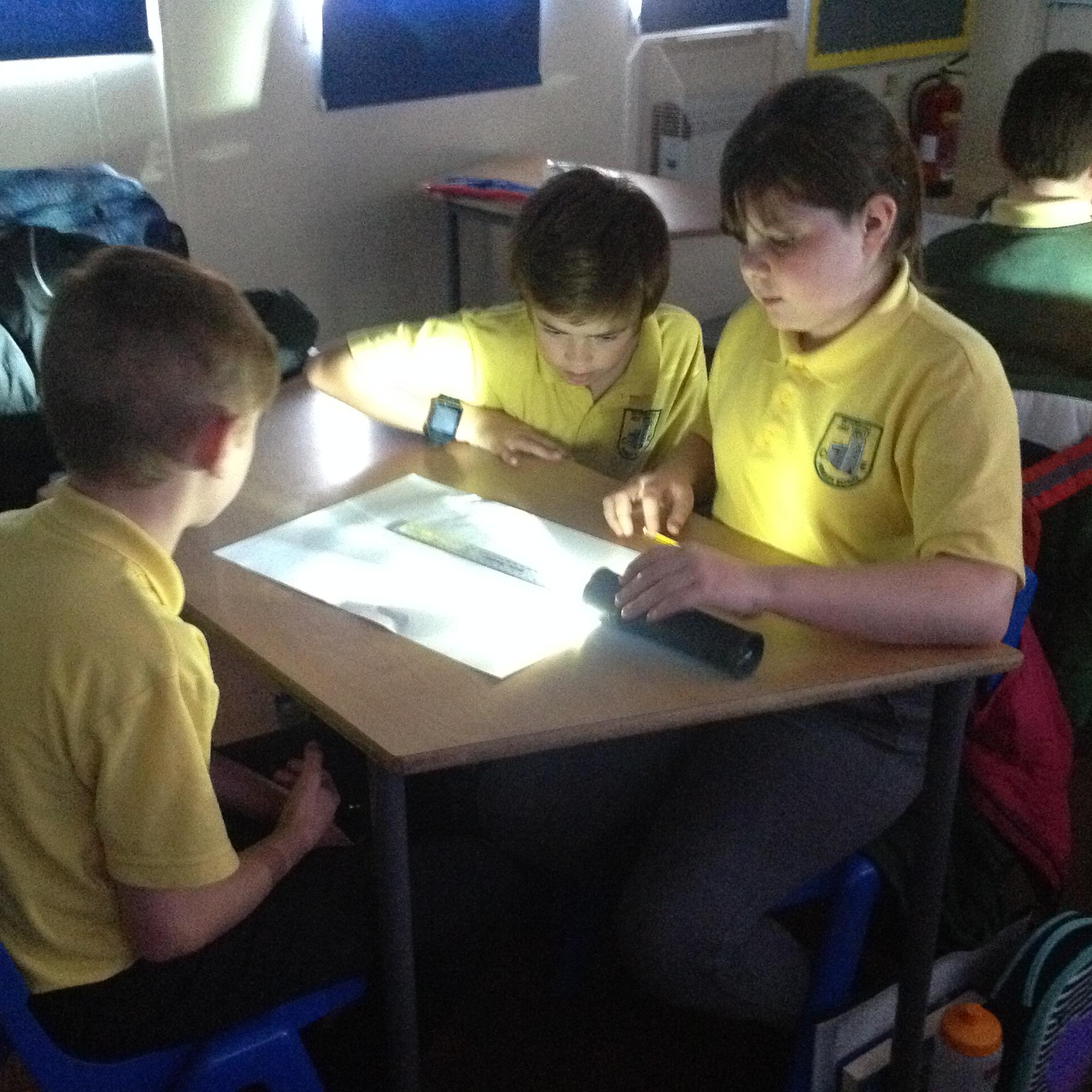 In Science today we have been learning about shadows and how they change. We remembered that shadows can only be created when there is a light source and an opaque object that is blocking the light rays.
