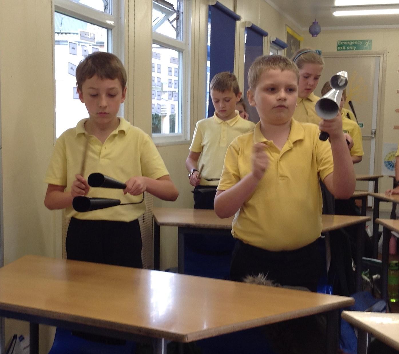 The class were able to display a good knowledge of how the instruments were played and how different sized instruments, for example the violin, viola and cello ranged in pitch.