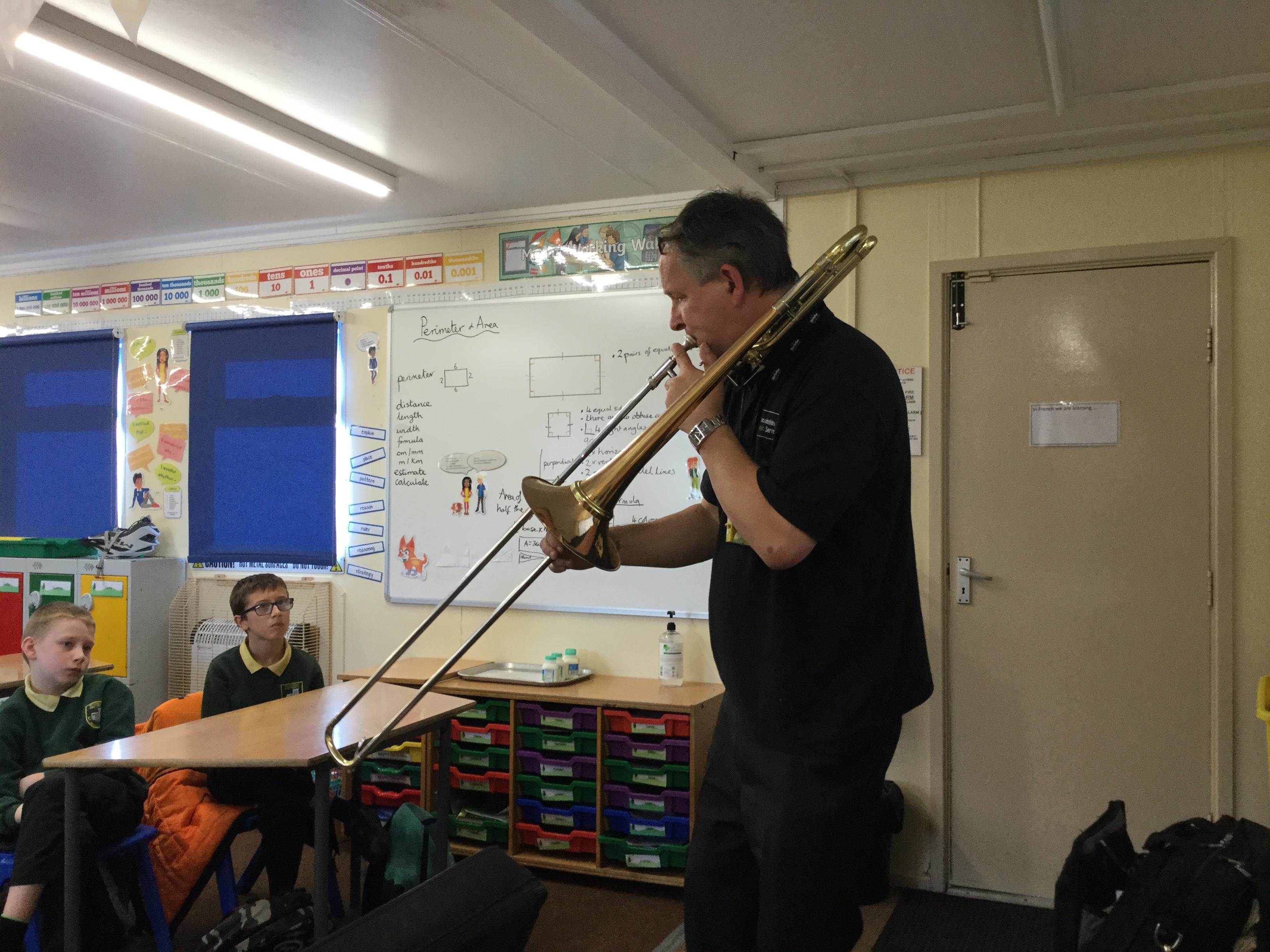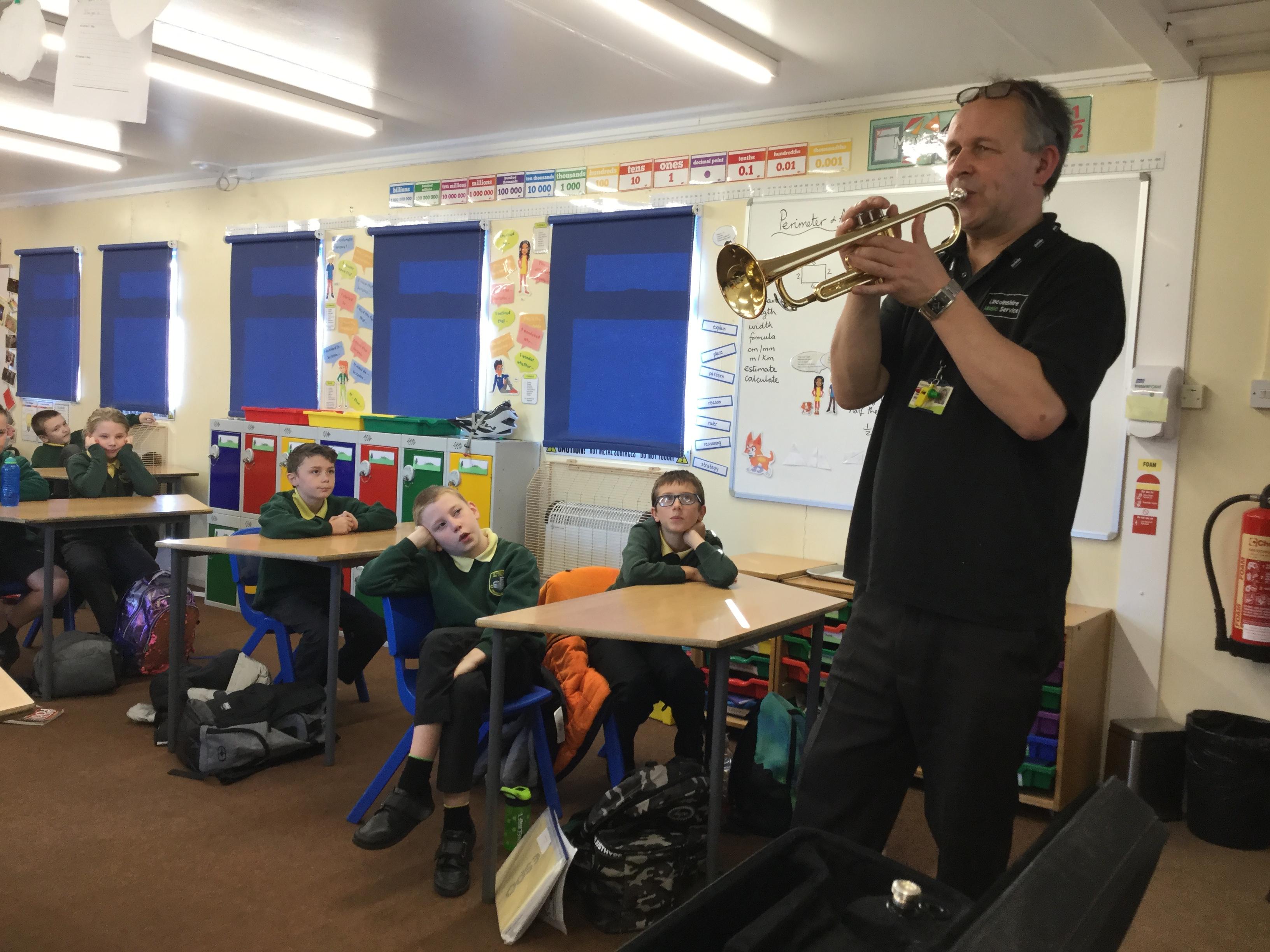 Today we were really lucky to have 2 teachers from the Lincolnshire Music Service come to visit us. We were able to see and hear a good variety of instruments and listen to some lovely live music. We heard folk music, jazz and even some famous film theme tunes from Star Wars.