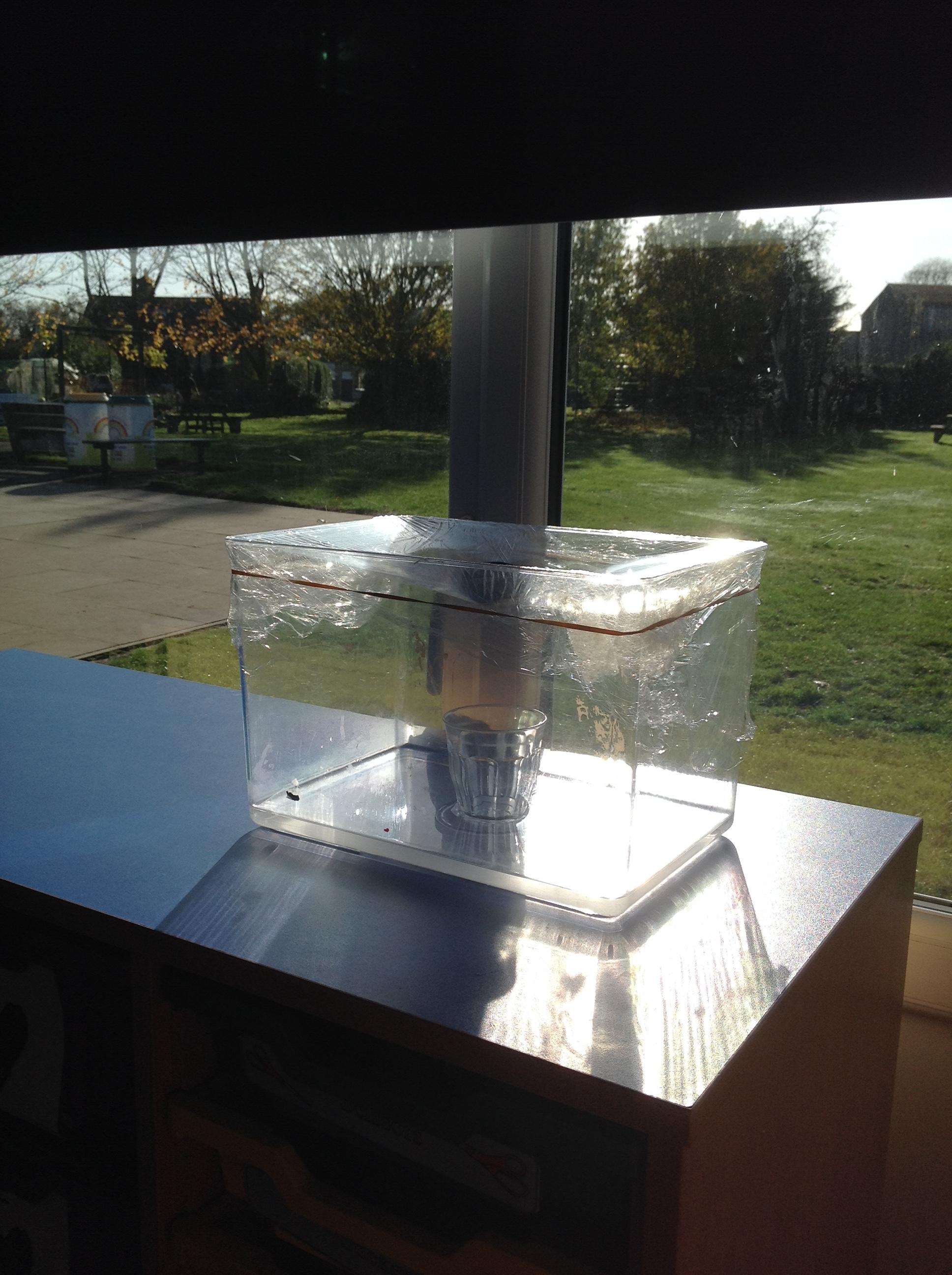 We have also learnt about the water cycle. We have set up a water cycle model in the classroom to see what happens. We predicted that the water will heat up and some of it will evaporate. We predict we will be able to see this on the sides and the cling film top as it begins to condense. We predict that the weight on the cling film will make a slope where the condensation will run to and then we will have precipitation in to the glass at the bottom. We are looking forward to seeing if we are correct!