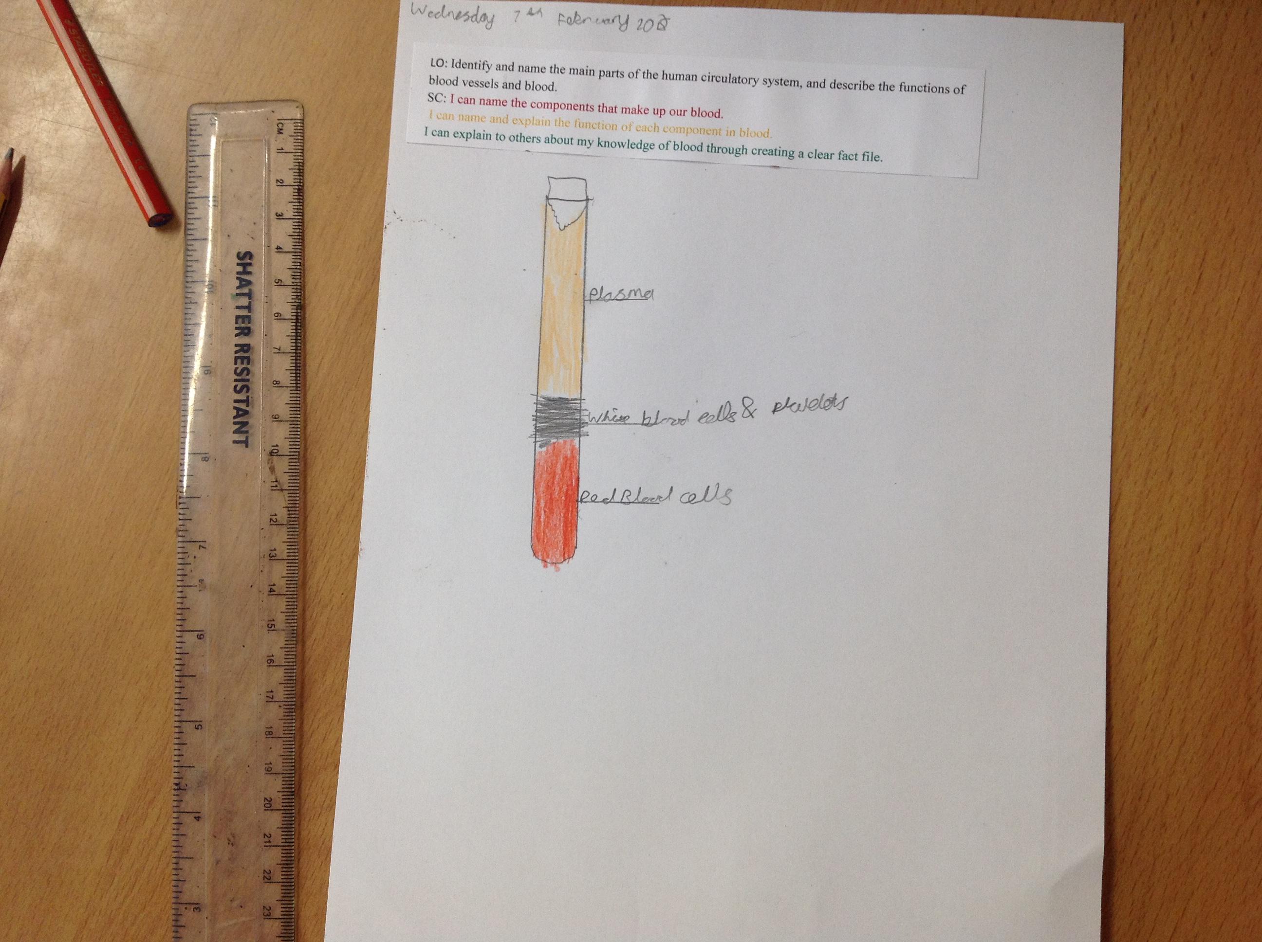 This afternoon Pine class were learning more about the circulatory system by looking at what makes up our blood.