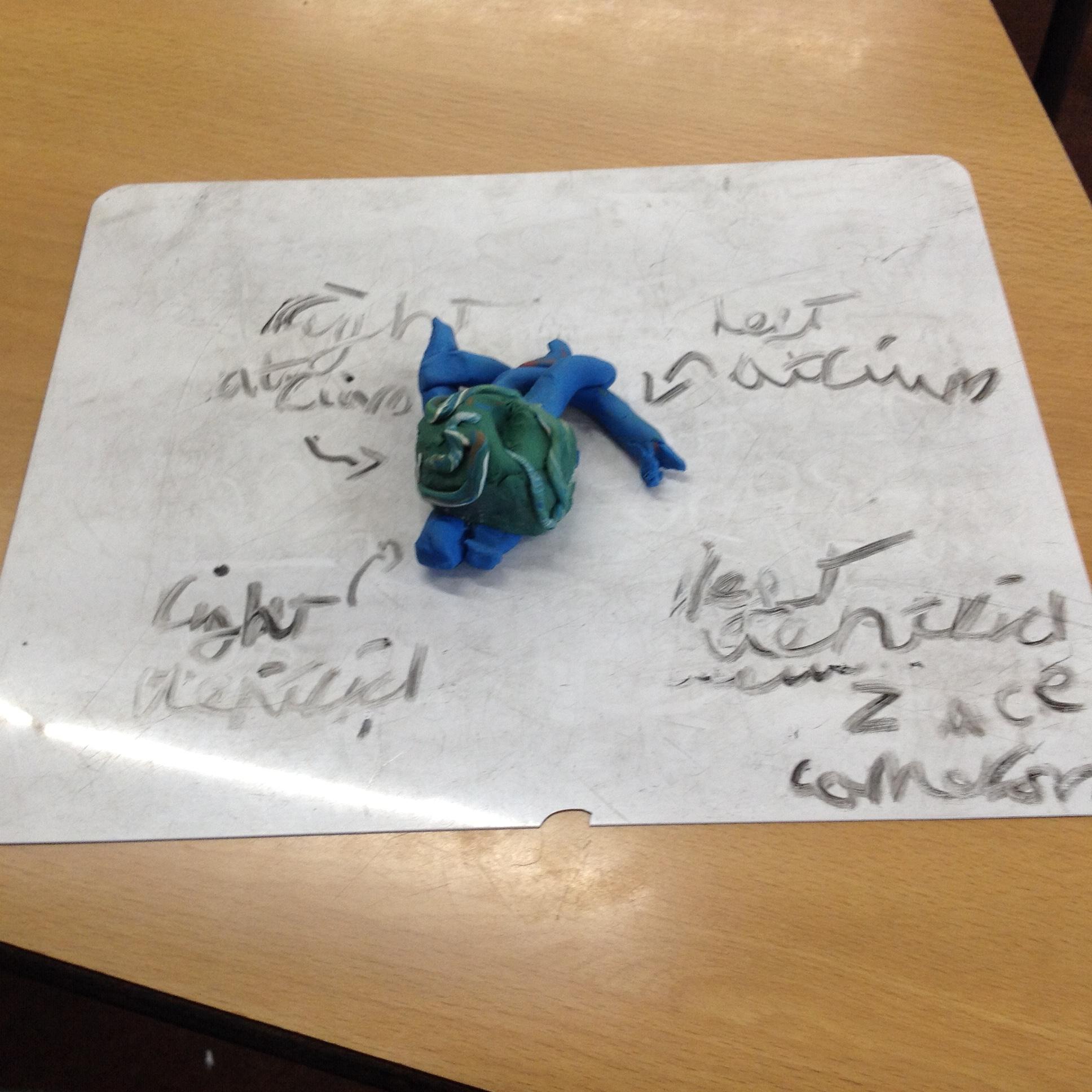 We worked as partners today to create a plasticine model of a human heart; then placed the model on a whiteboard to label the chambers and components of this hard-working organ, as we learn how it works and why.