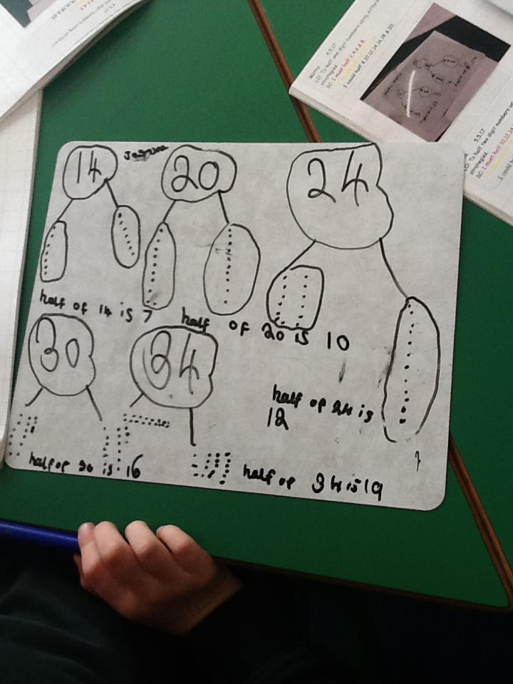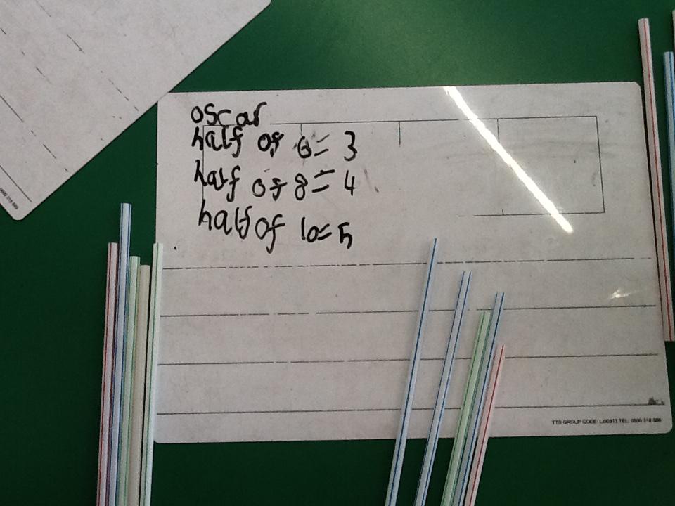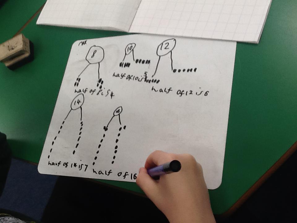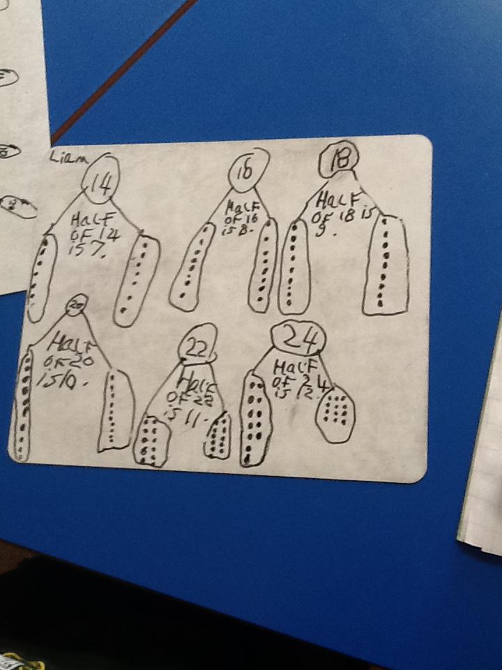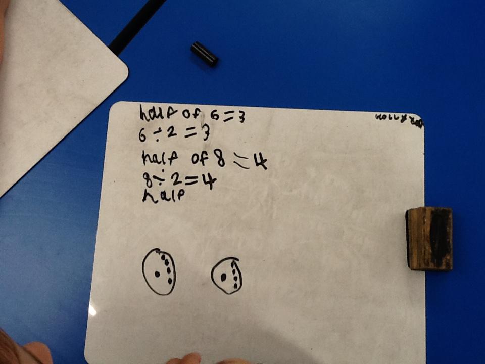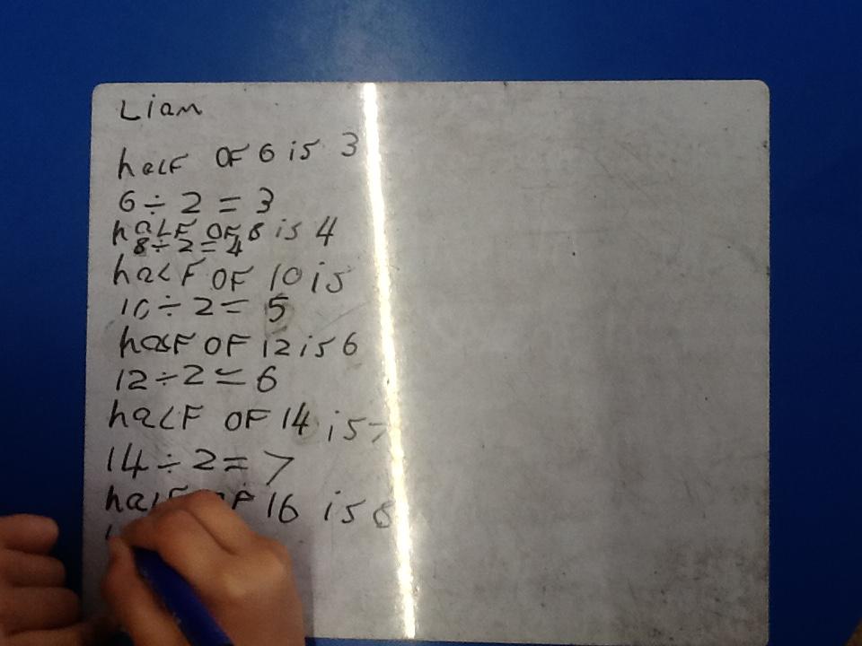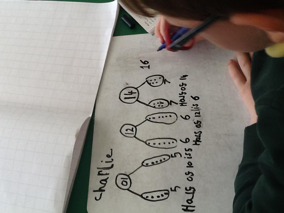 In maths this week we have been learning more about doubling and halving. We recognised the multiplication and division symbol and understood about having equal groups. We have used lots of different strategies to help us this week but our favourite was drawing the numbers out in dots.