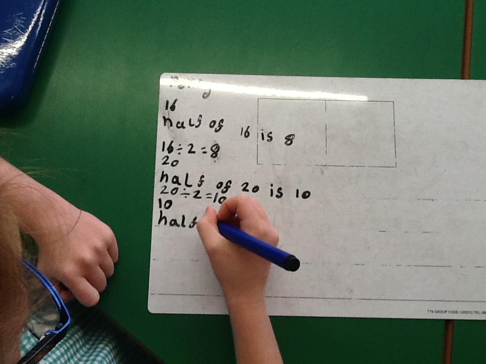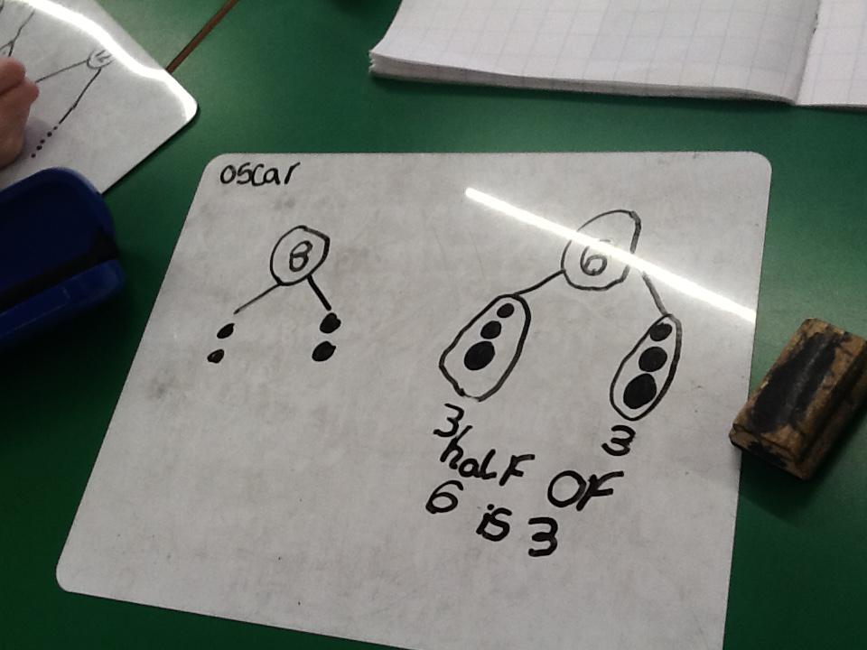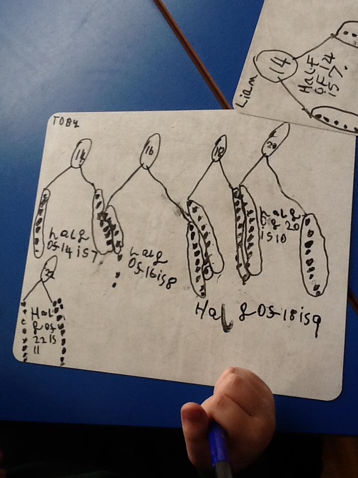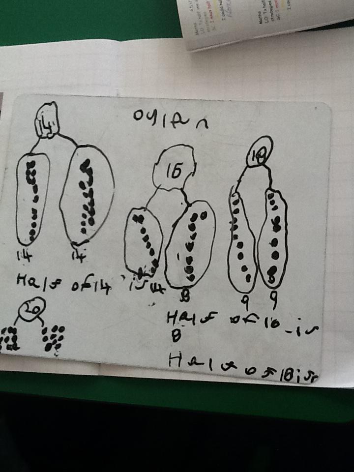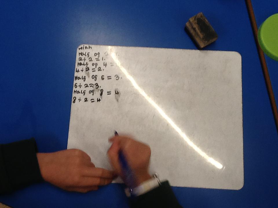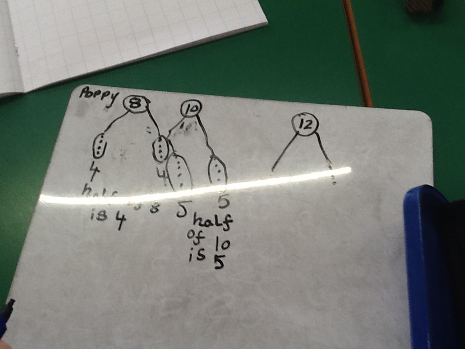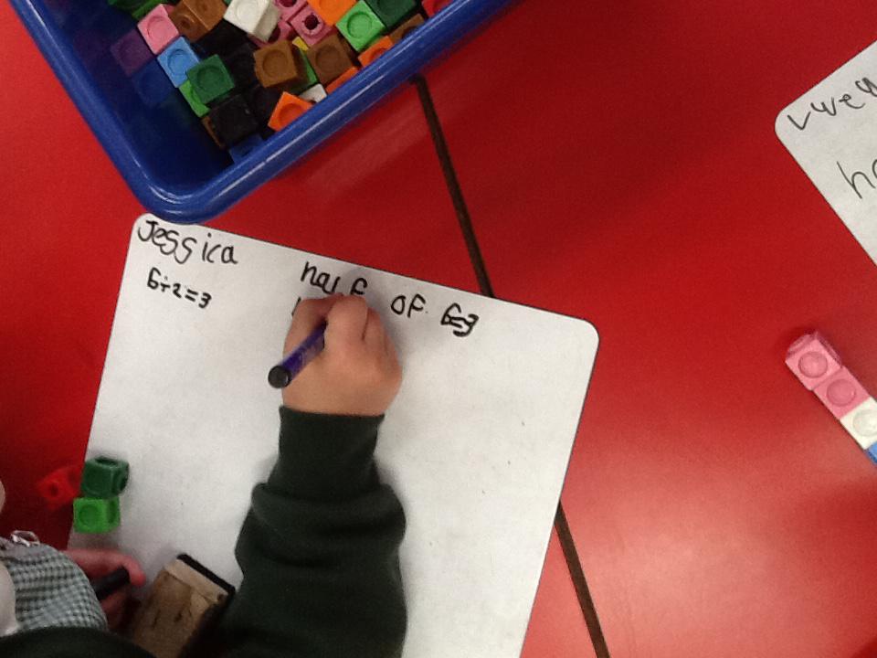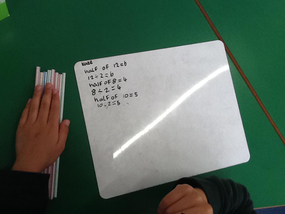 In maths this week we have been learning more about doubling and halving. We recognised the multiplication and division symbol and understood about having equal groups. We have used lots of different strategies to help us this week but our favourite was drawing the numbers out in dots.
