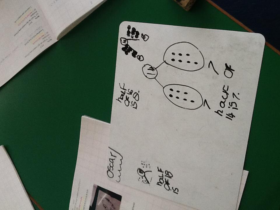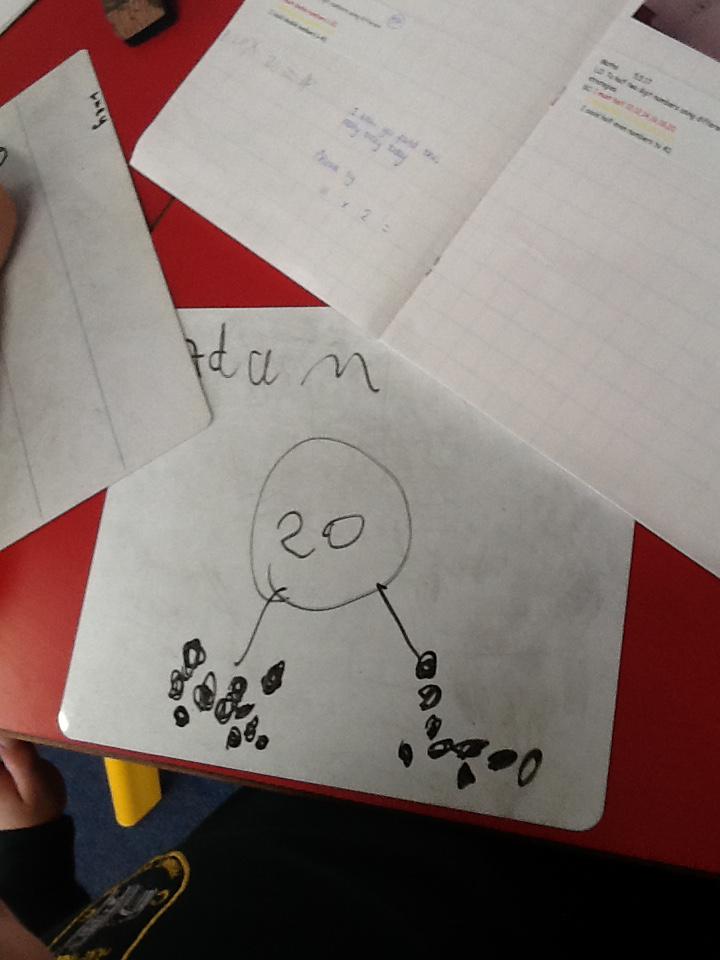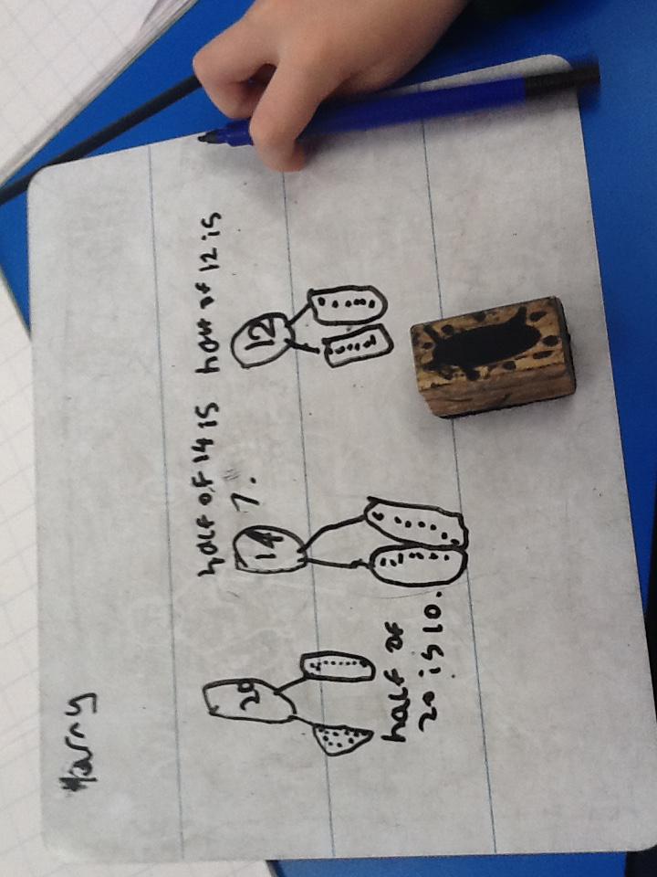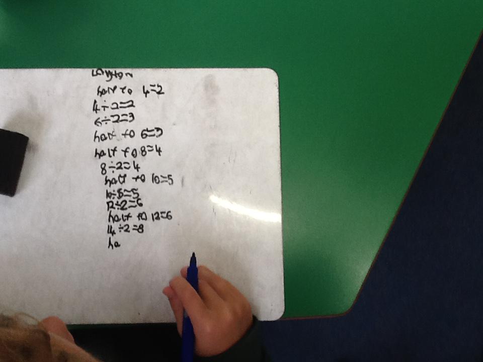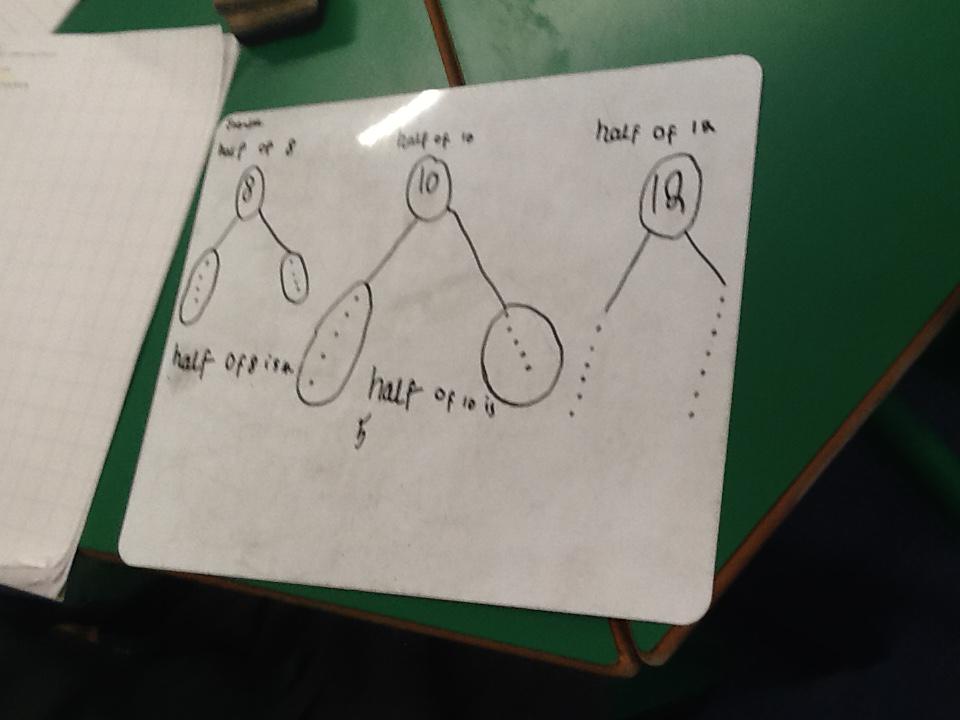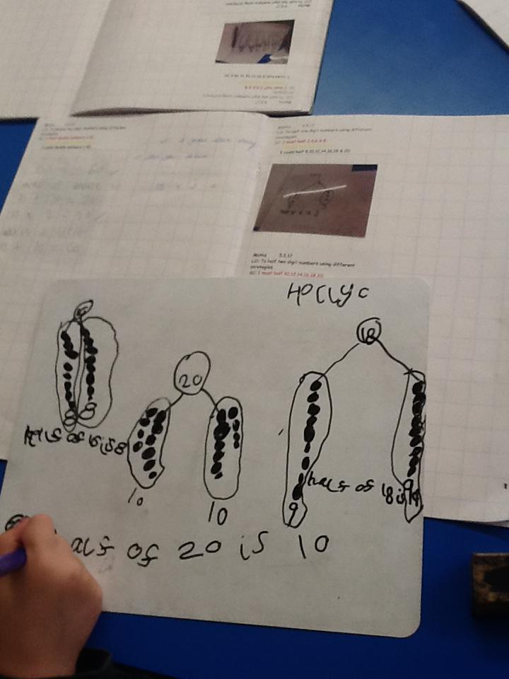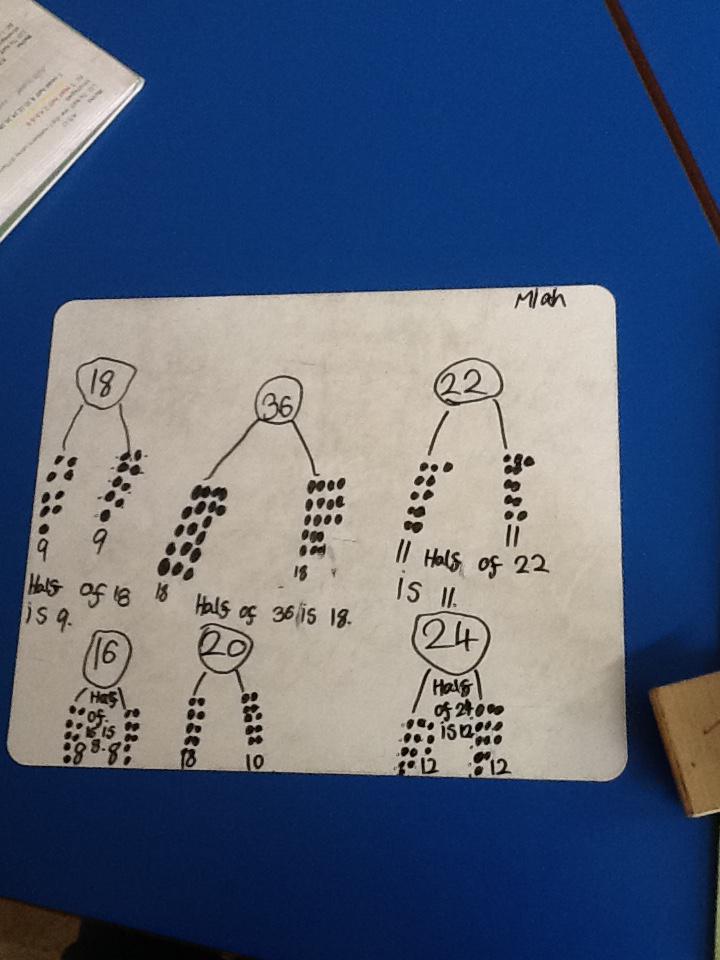 In maths this week we have been learning more about doubling and halving. We recognised the multiplication and division symbol and understood about having equal groups. We have used lots of different strategies to help us this week but our favourite was drawing the numbers out in dots.