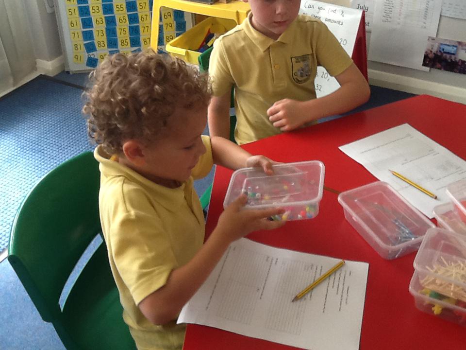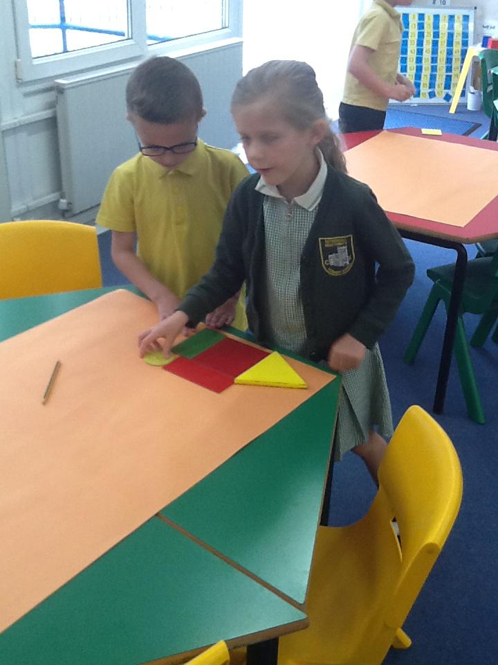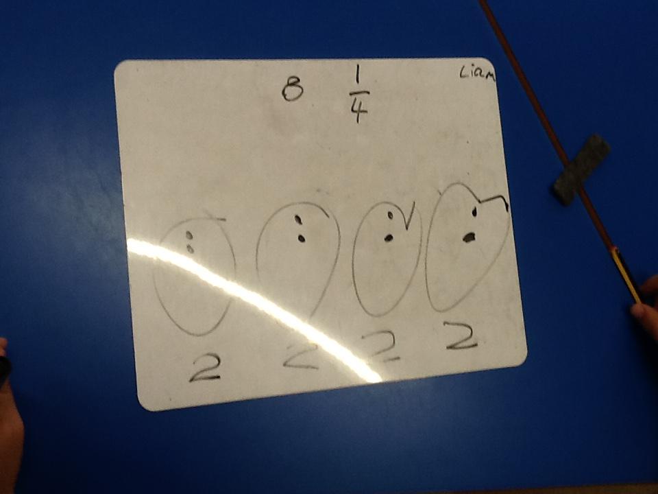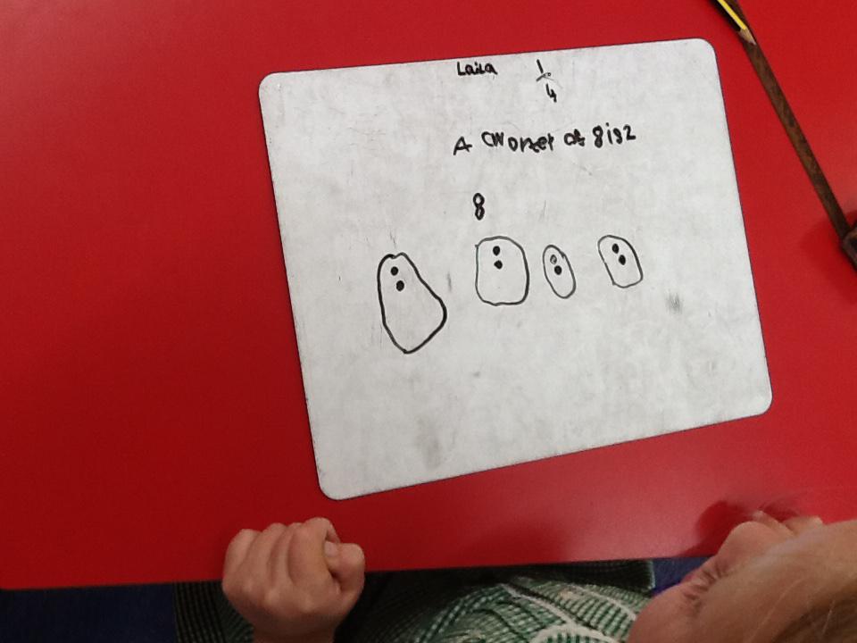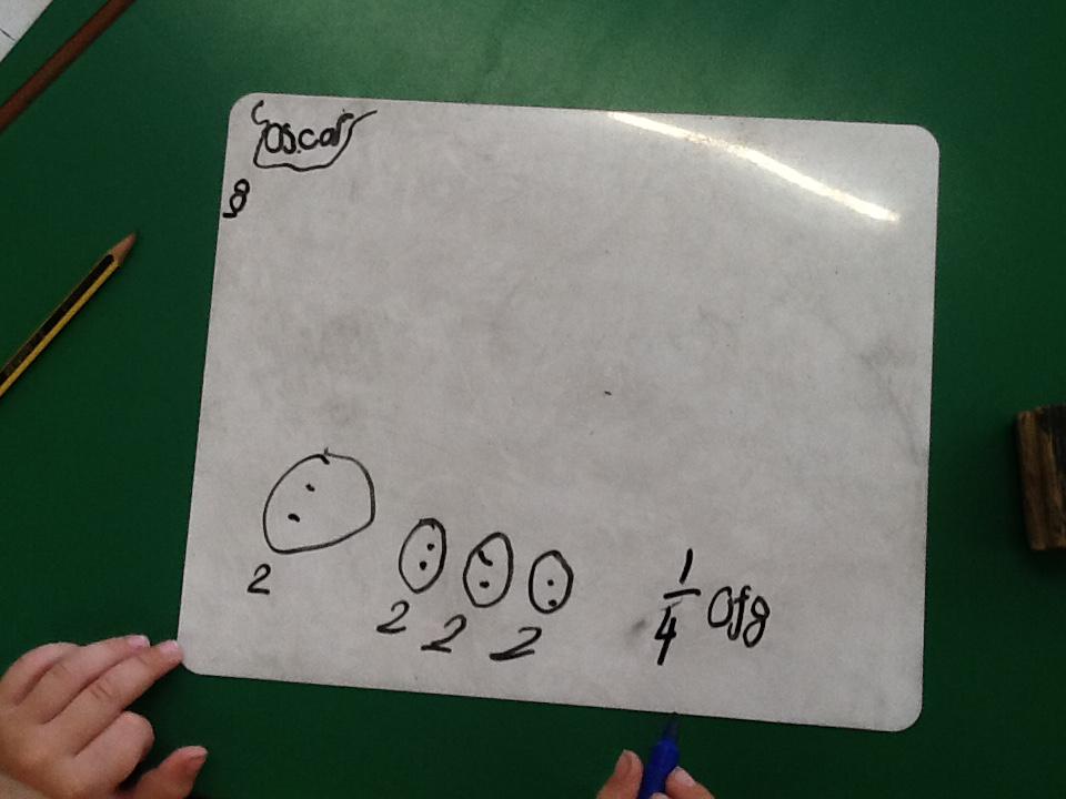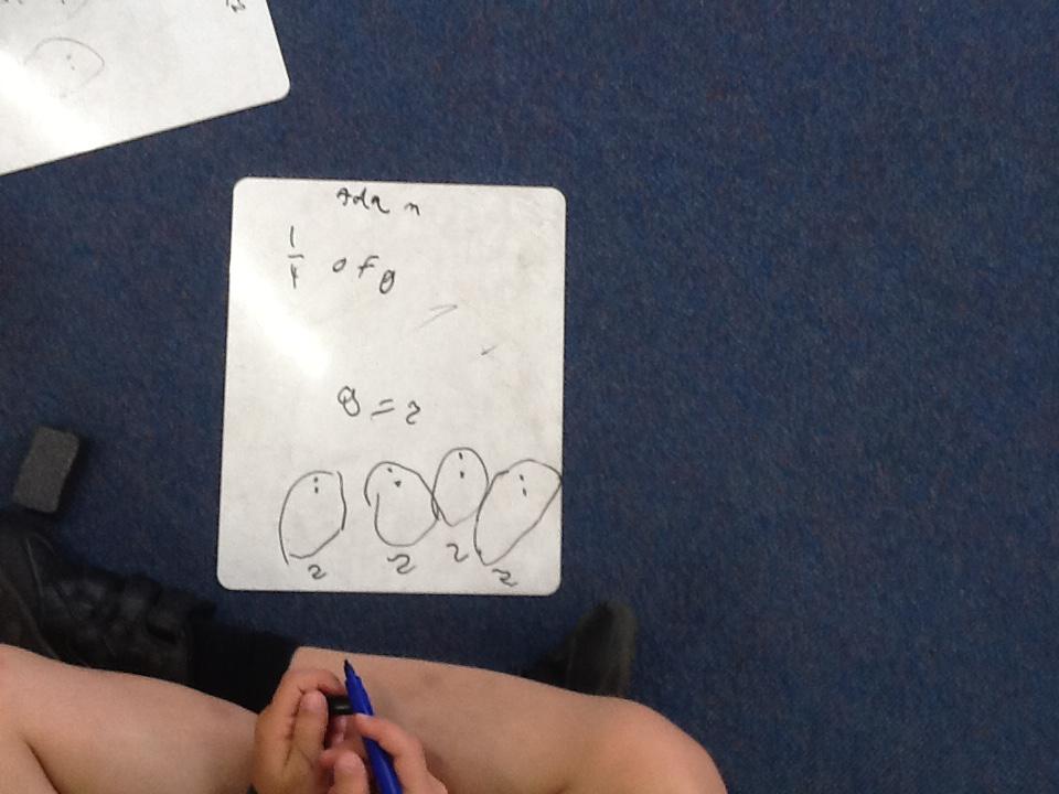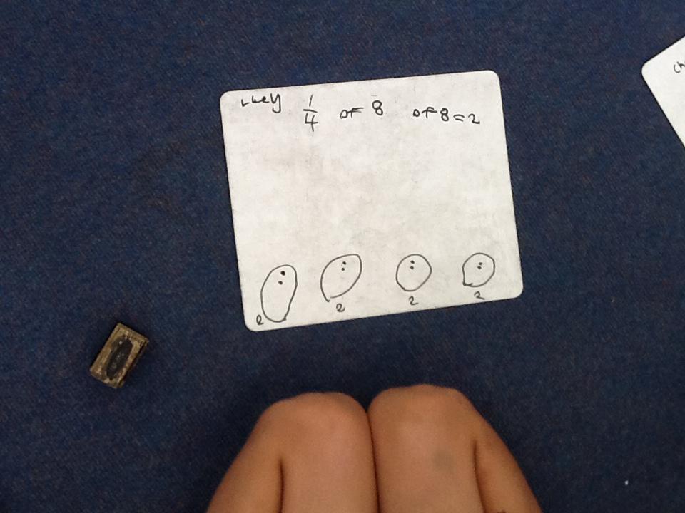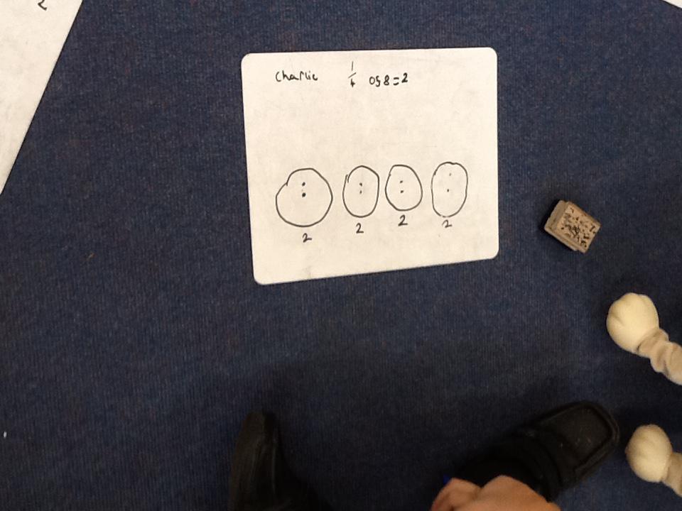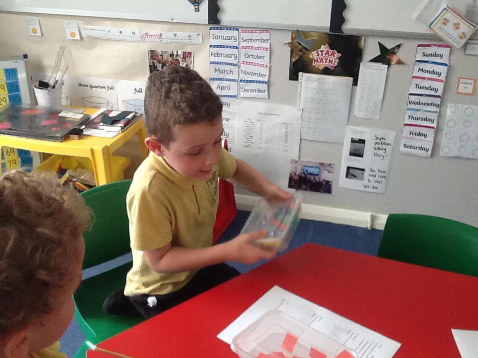 This week in maths we have been finding fractions of amounts and shapes. We have been looking at 1/2, 1/4, 3/4 and a whole. We used different equipment to help us find the different amounts. We played a fraction game where we used a fraction dice and then had to colour that fraction of a shape in.