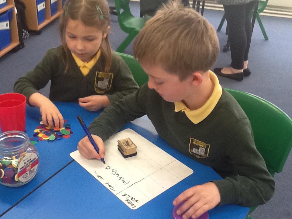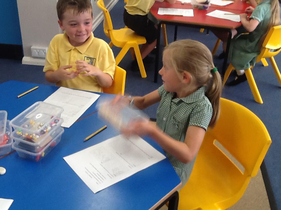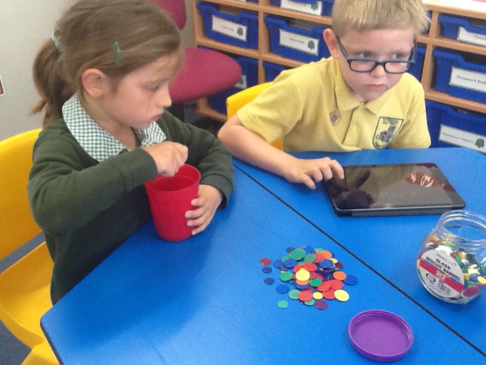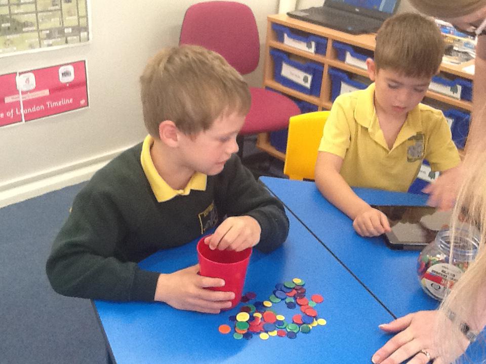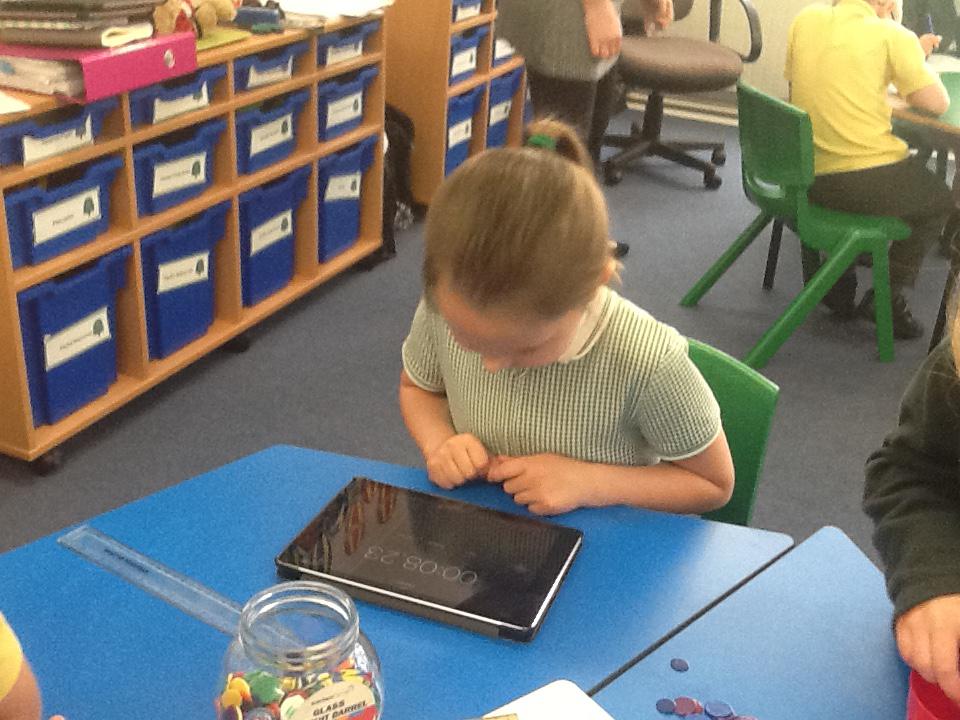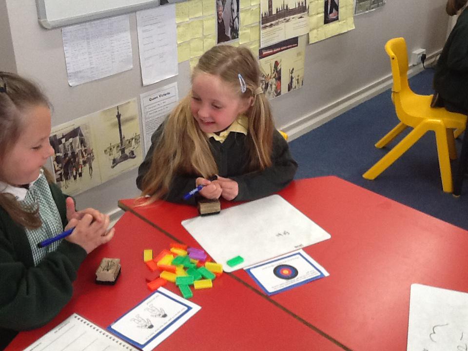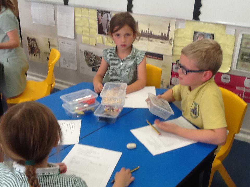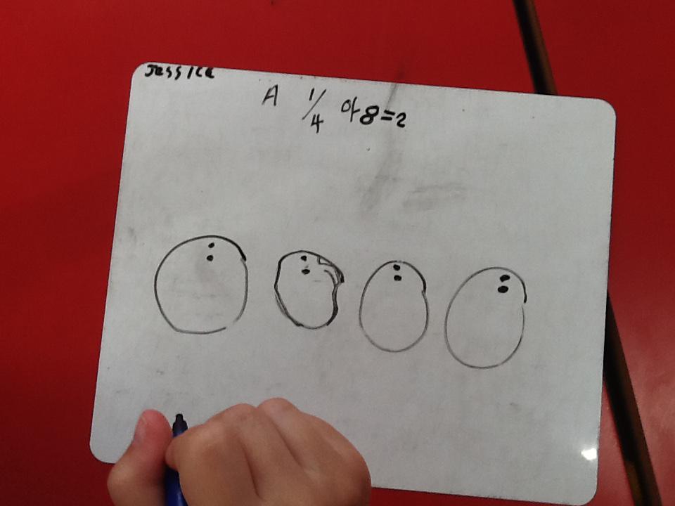 This week in maths we have been finding fractions of amounts and shapes. We have been looking at 1/2, 1/4, 3/4 and a whole. We used different equipment to help us find the different amounts. We played a fraction game where we used a fraction dice and then had to colour that fraction of a shape in.