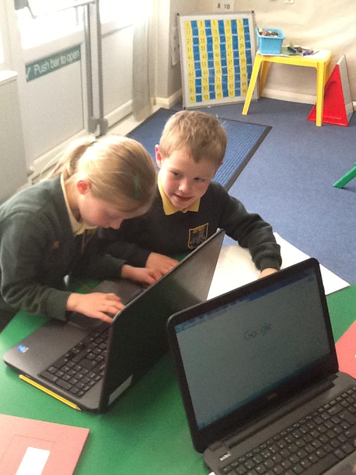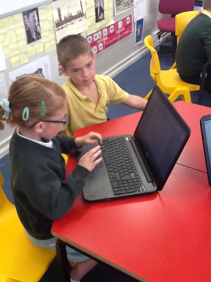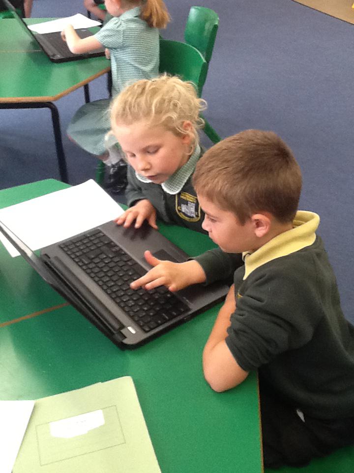 We used ICT to help us to find facts about the Queen. We worked with a partner and searched for different information and then selected the bits we needed to answer our questions. It was great fun using the laptops.