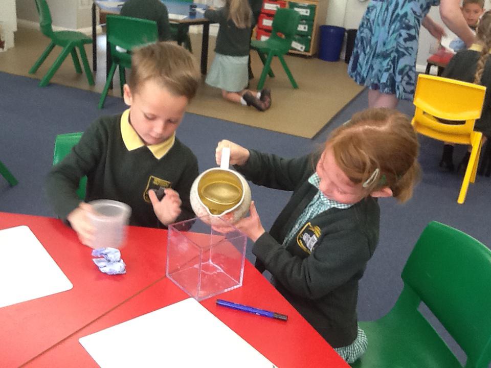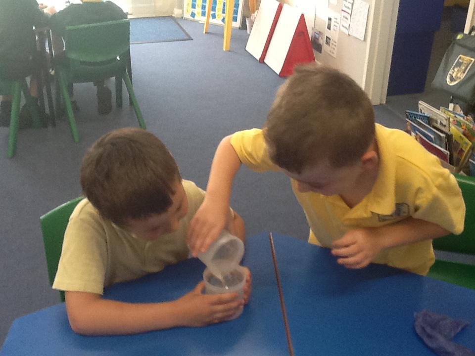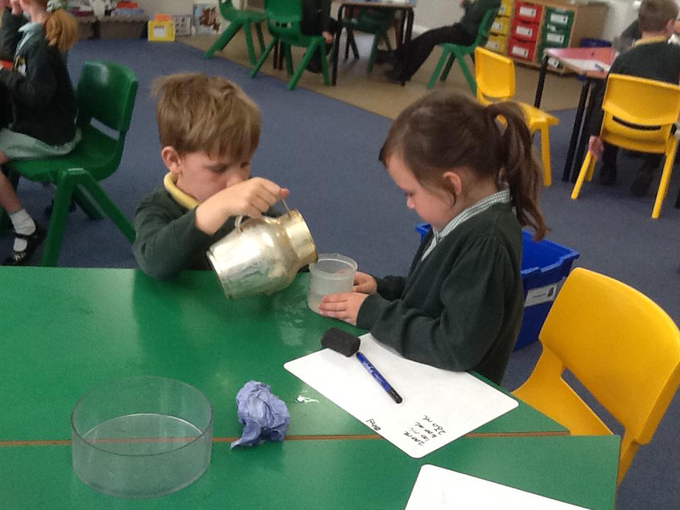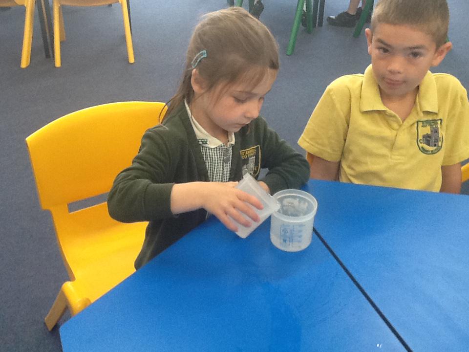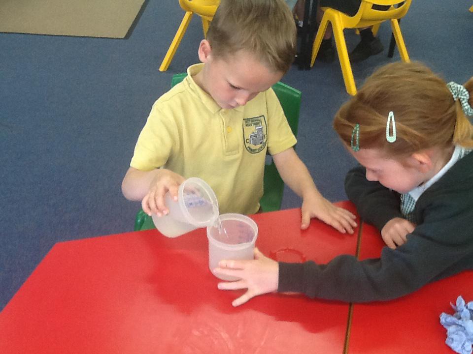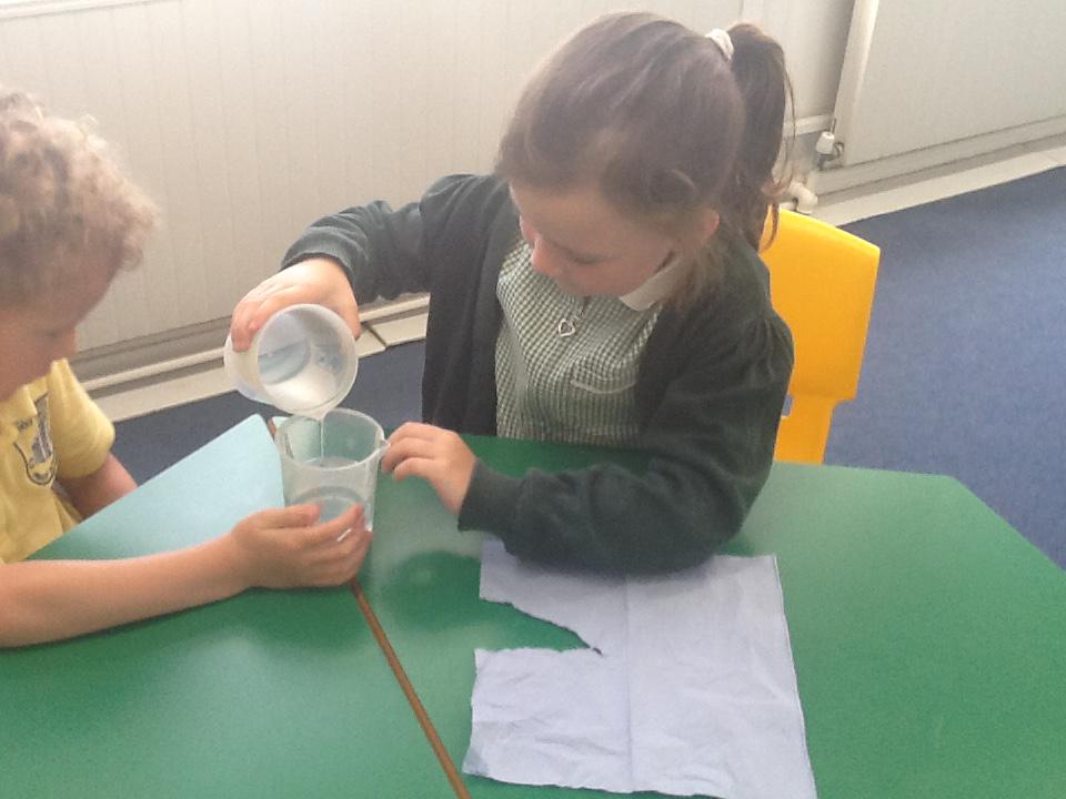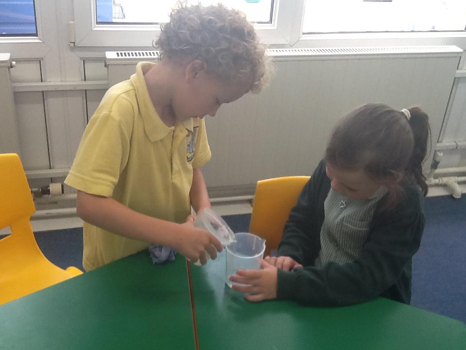 We have had two very exciting science investigations over the past couple of weeks. Continuing with our materials topic we decided we wanted to investigate how different things felt and what their properties would be like. We had great fun feeling chocolate spread, shaving foam, talc, vegetable oil, maple syrup and face cream. We were able to talk about the different properties of these things and how we thought they helped them do their job.