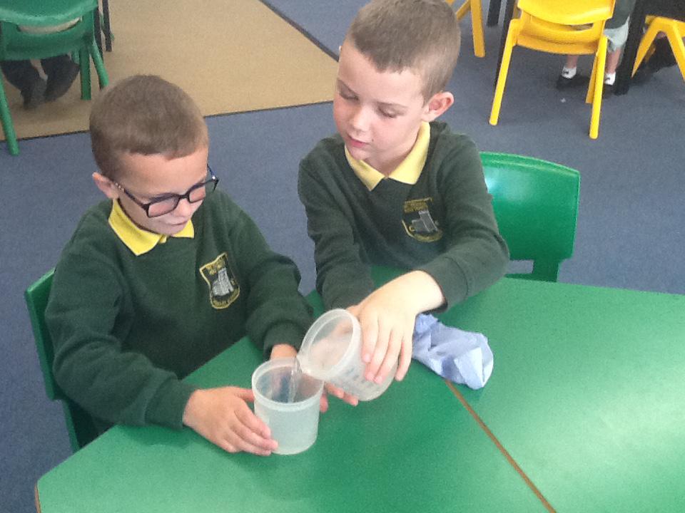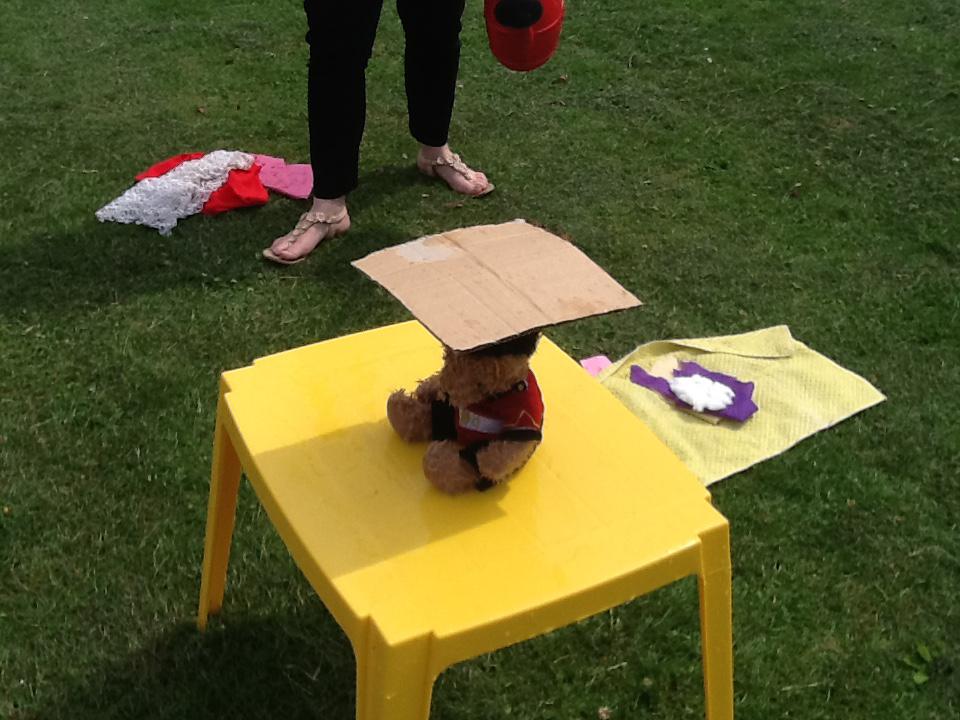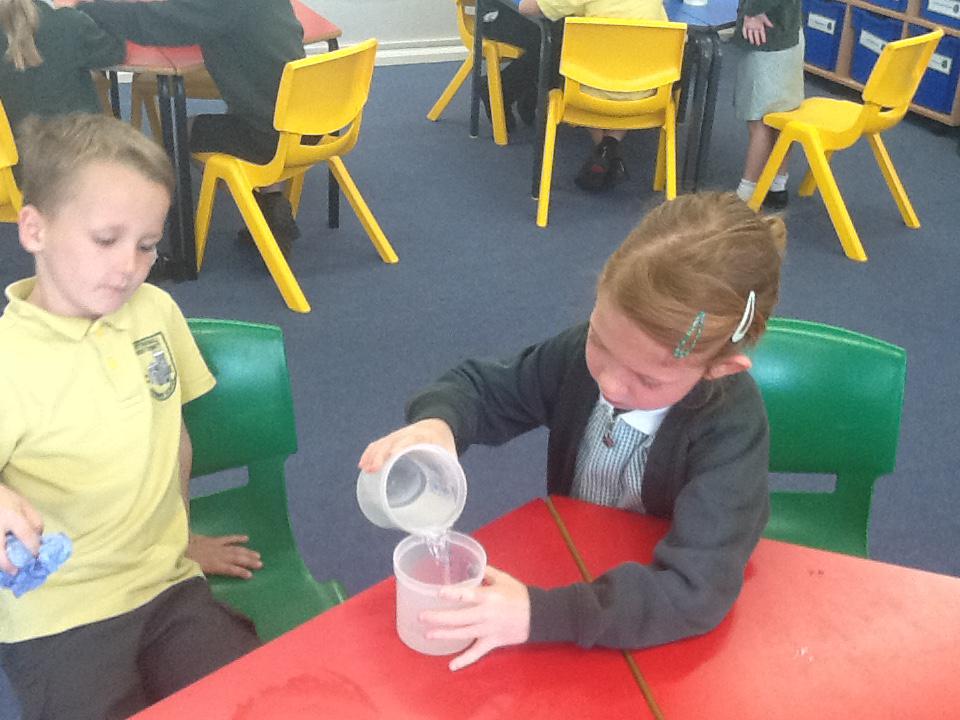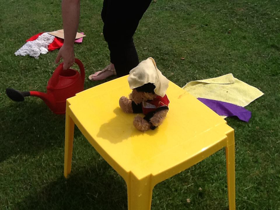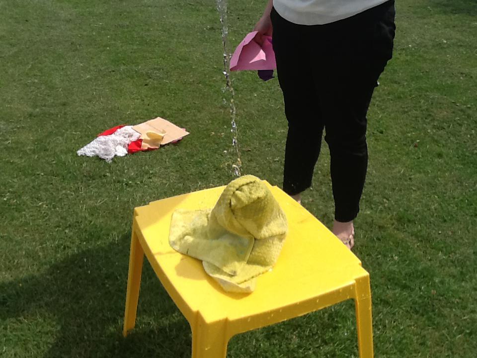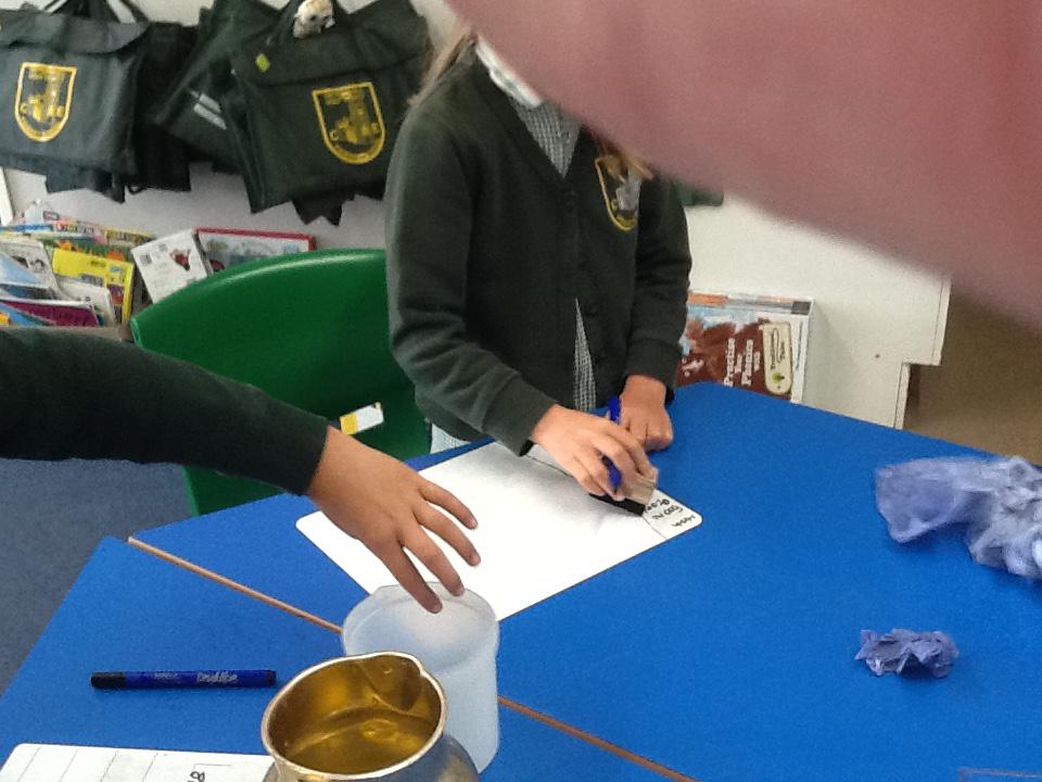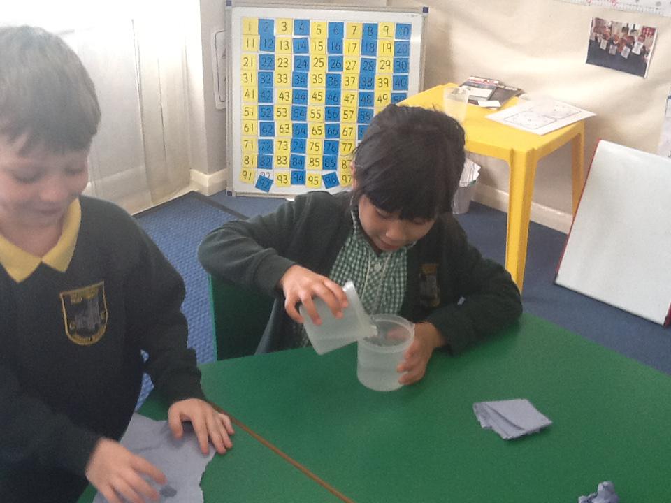 This week we have been investigating the best material to use to make Benny a waterproof coat. We looked at the properties of lots of different materials and then made predictions of which material we thought would be the best one to use. We had to give reasons for our predictions. Unfortunately some of the materials we investigated were not very waterproof and Benny got very wet! After our investigation we compared different materials deciding that material backed with a plastic coating was the best thing to use for Benny's new coat!