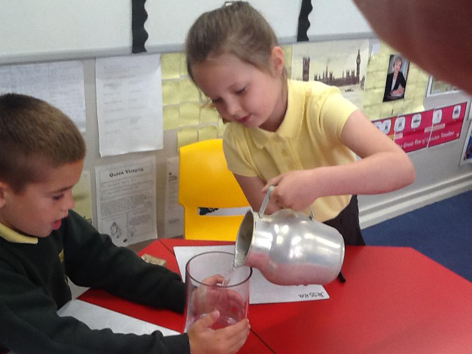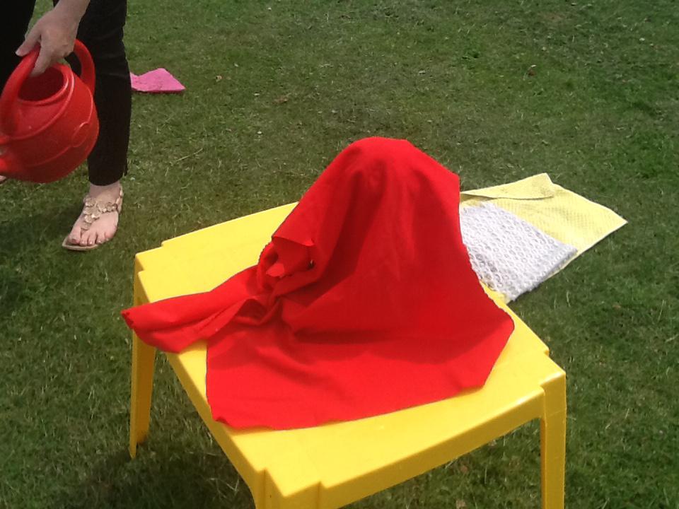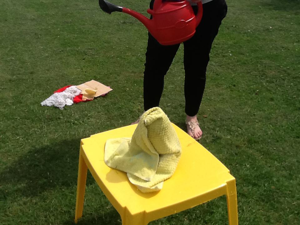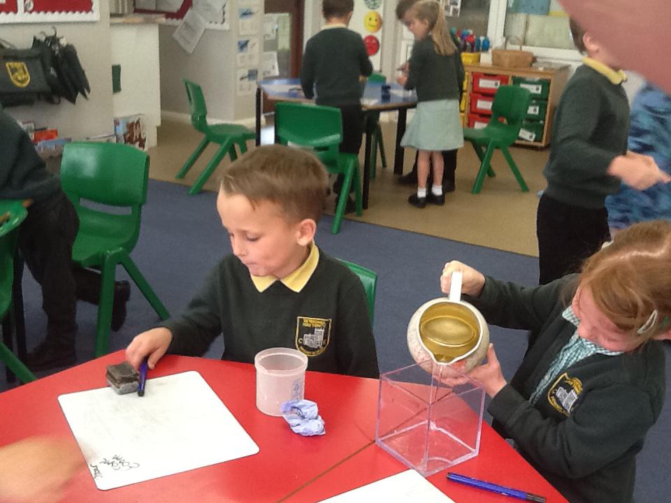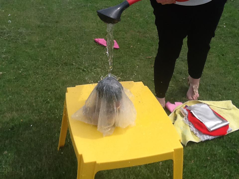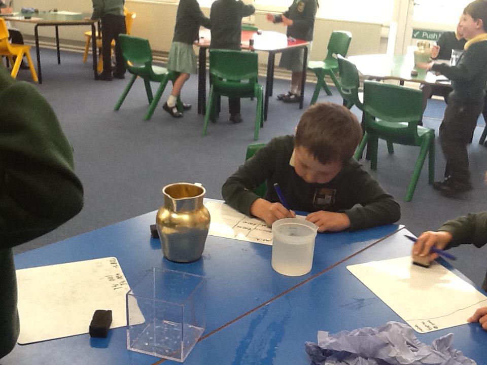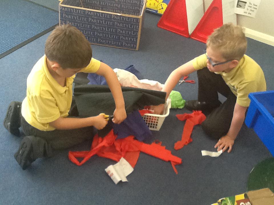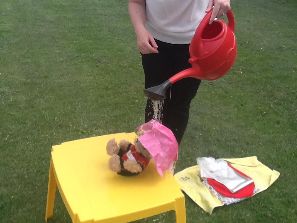 This week we have been investigating the best material to use to make Benny a waterproof coat. We looked at the properties of lots of different materials and then made predictions of which material we thought would be the best one to use. We had to give reasons for our predictions. Unfortunately some of the materials we investigated were not very waterproof and Benny got very wet! After our investigation we compared different materials deciding that material backed with a plastic coating was the best thing to use for Benny's new coat!