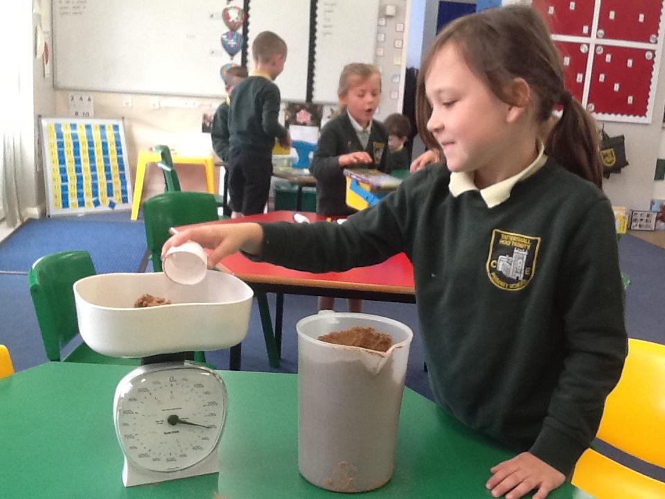 This week we have been looking at different measurements. We have been using the correct units of measurement and thinking about the best equipment to use to measure different things. We have been reading scales and calculating the different intervals so we know what to count in. We also recorded a group of different measurements and worked out the biggest and smallest ones.