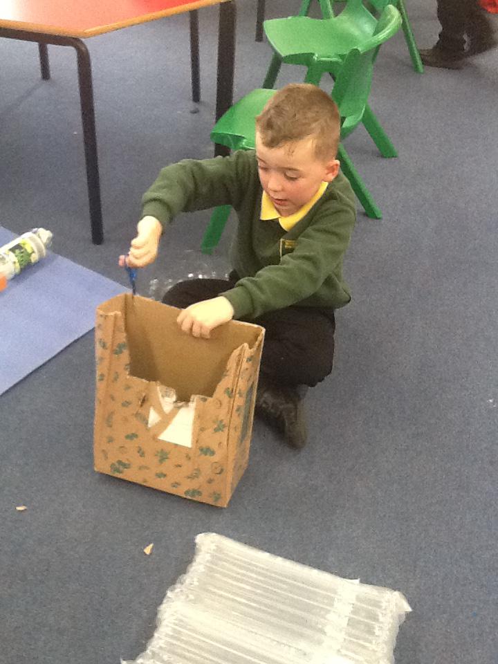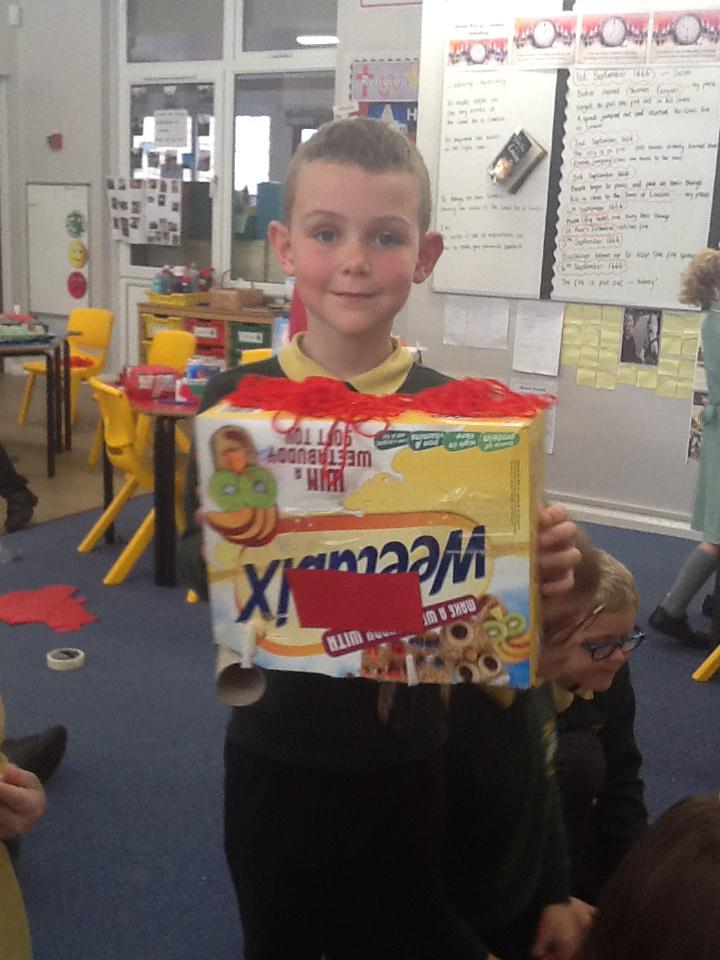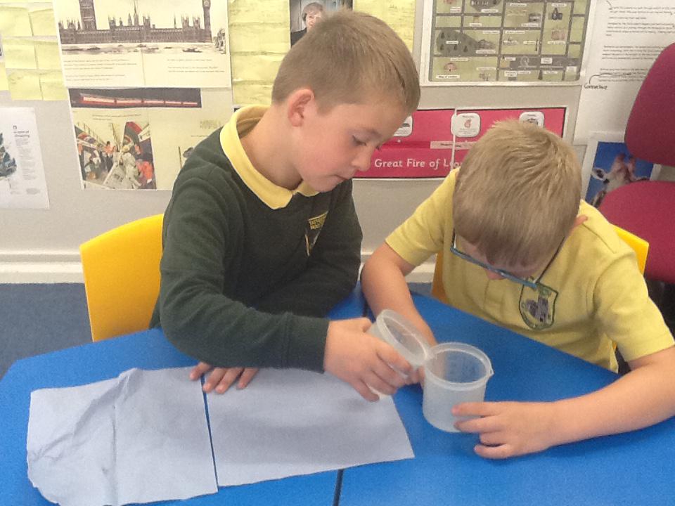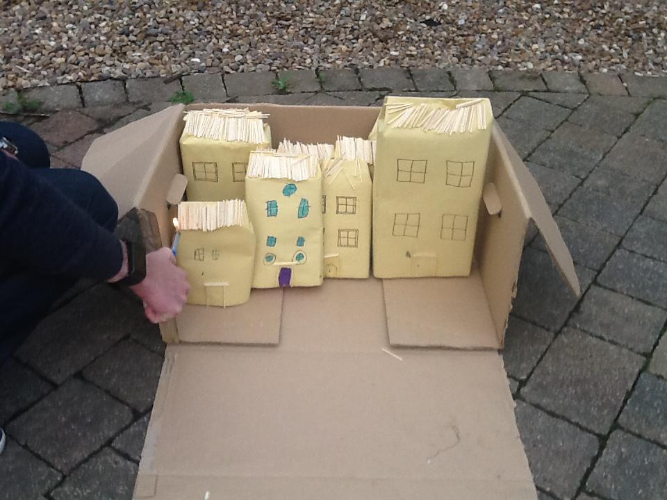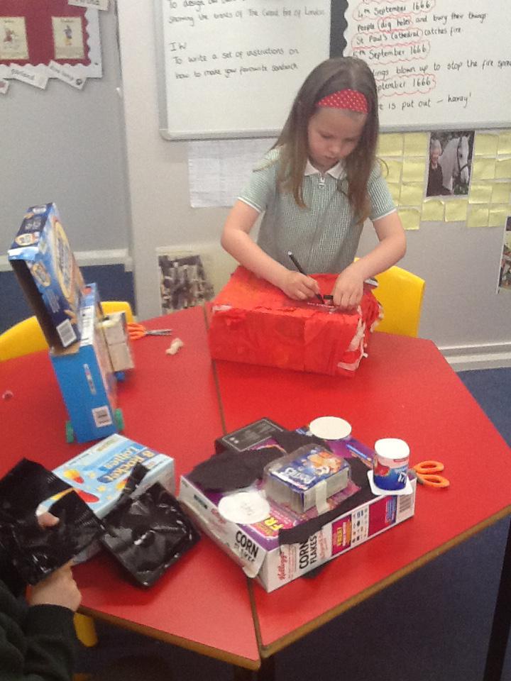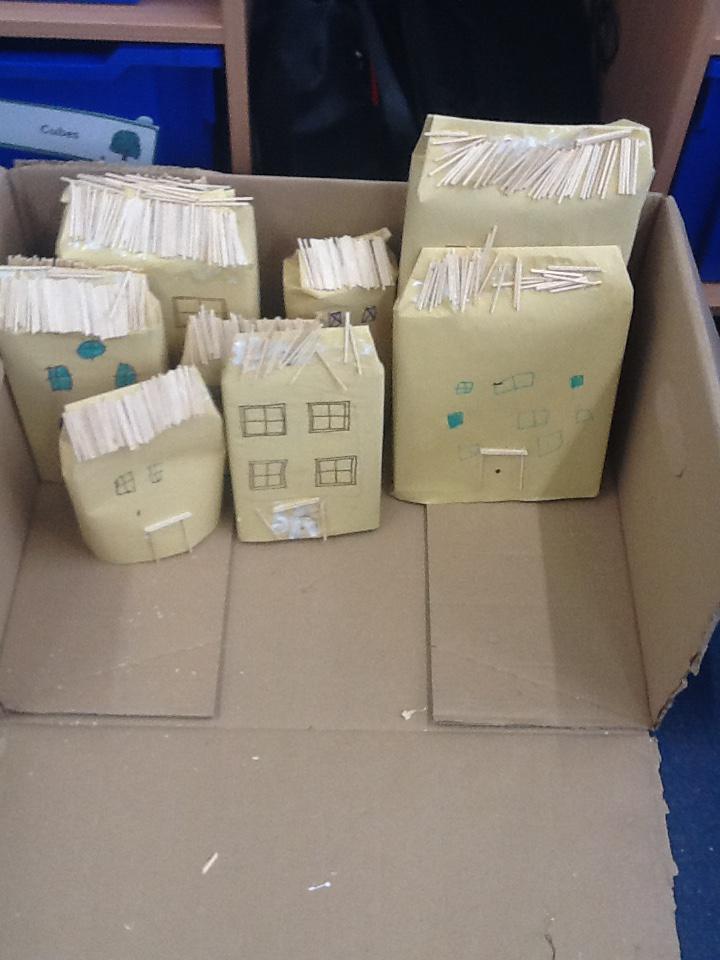 We have continued our work looking at different materials. We have been thinking really hard about the materials the house were made from and why they burnt so easily. We have also been thinking about how we could have prevented the fire and how houses are build differently today. We created our own Pudding Lane using materials that we thought were similar to the ones they used in 1666. Miss Burnett took our Pudding Lane home and with a little bit of help from Chris set it on fire. We were able to see just how easily the fire spread through the houses and all the different noises that come from a fire. We used this video clip to help us with our writing! If you would like to see the full video clip please look on the video sharing platform on our school website.