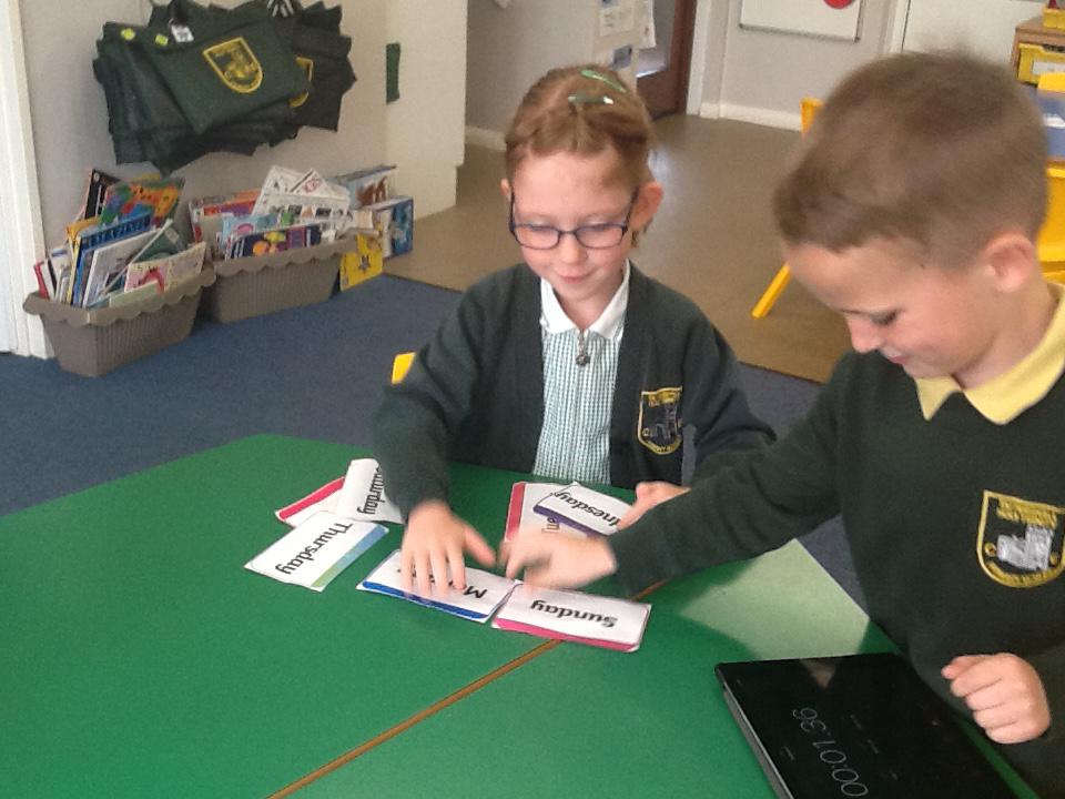 This week we have been very busy completing assessments. We had a carousel of different activities going on in the classroom which included creating o'clock and half past times on clocks, writing the days of the week and the months of the year, sorting times into earliest and latest and timing how long it takes us to do different things. We all worked really hard and it is clear we are making lots of progress with our learning.