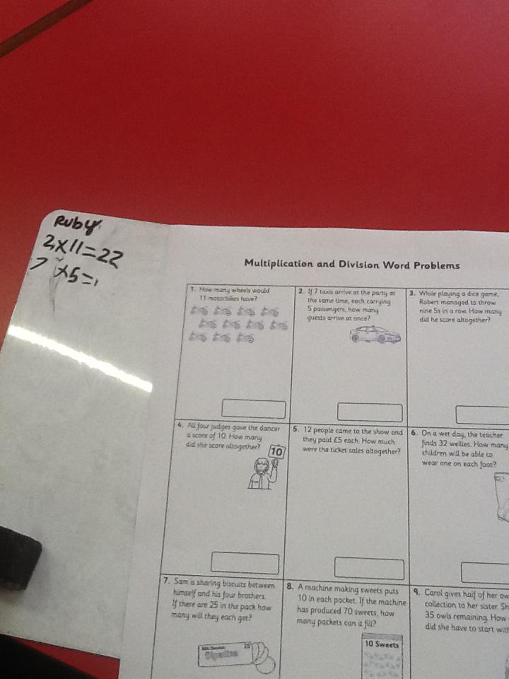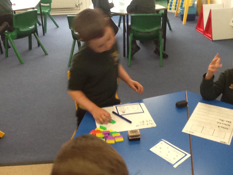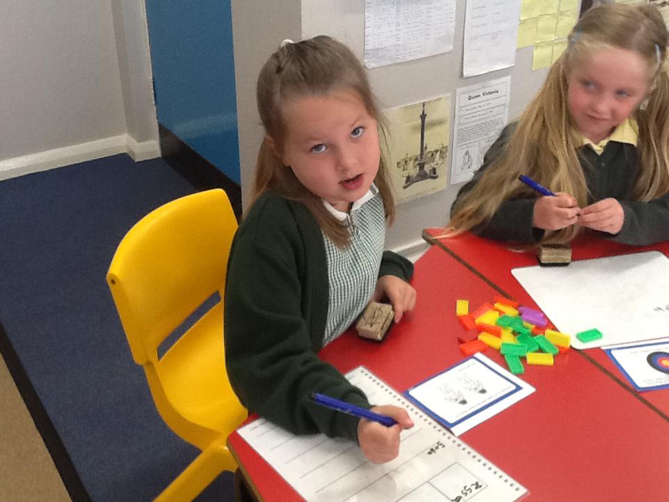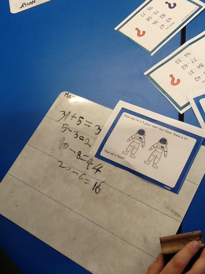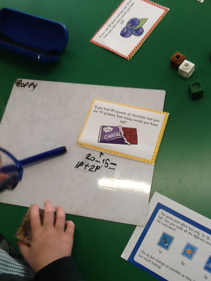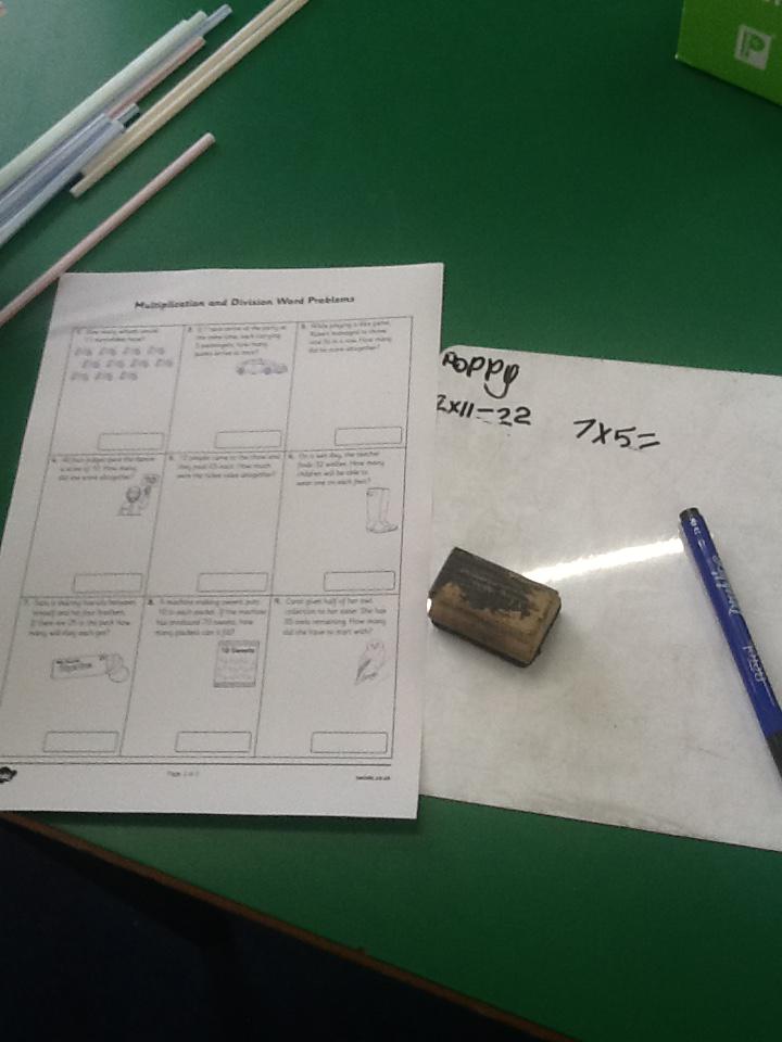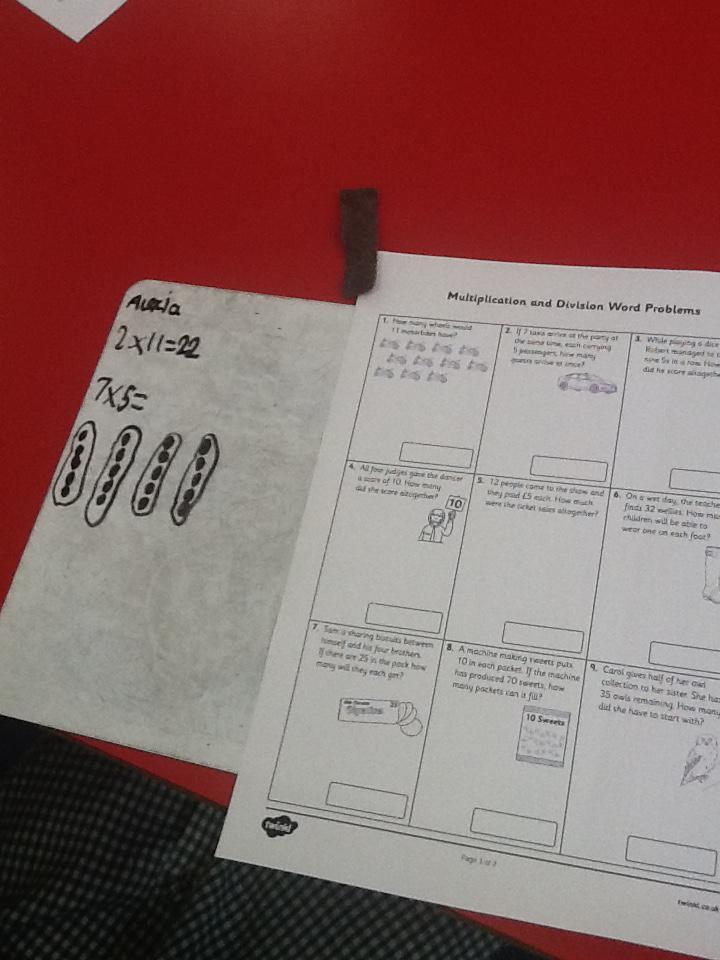 In maths this week we have been solving word problems. We have been looking at ways to find the information we need and then write down the number sentence so we can solve the problem. We looked at problems that used all four number operations. It was good fun using different equipment to help us.