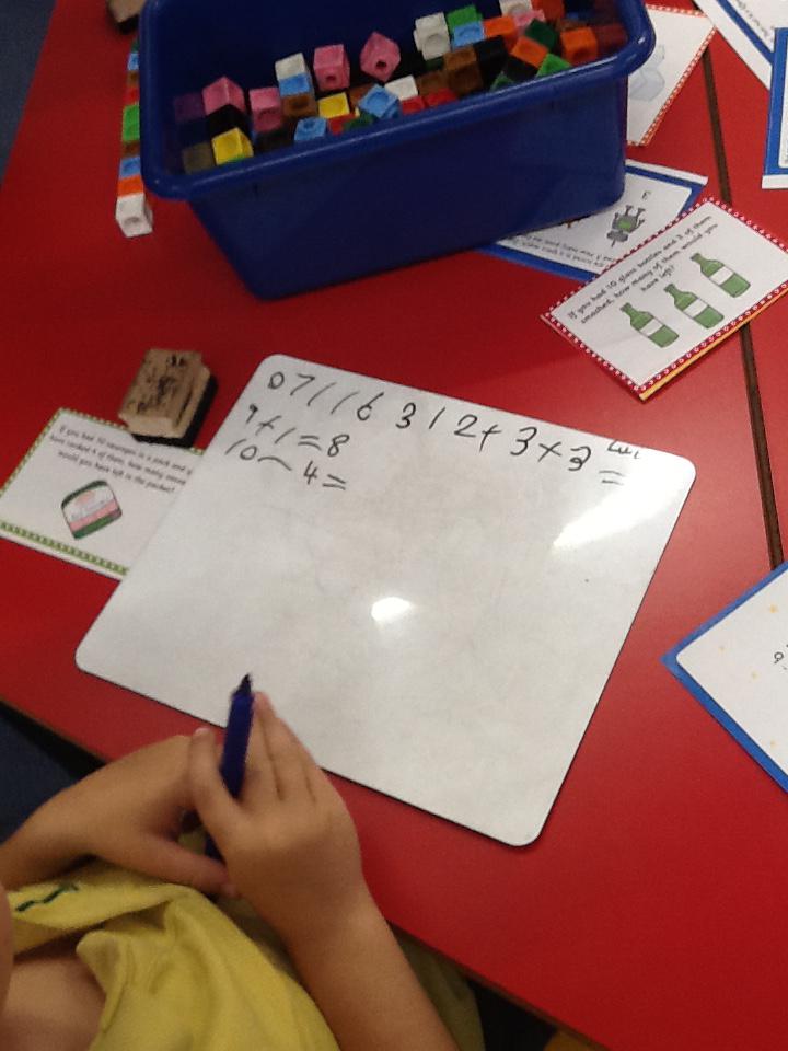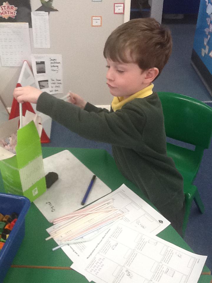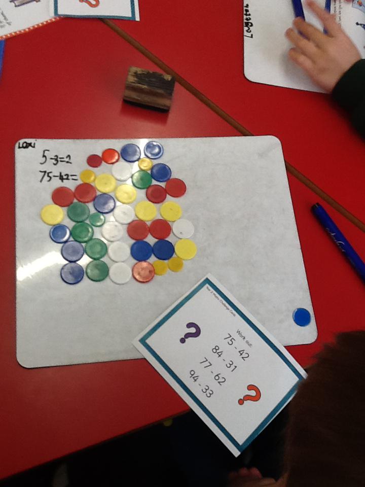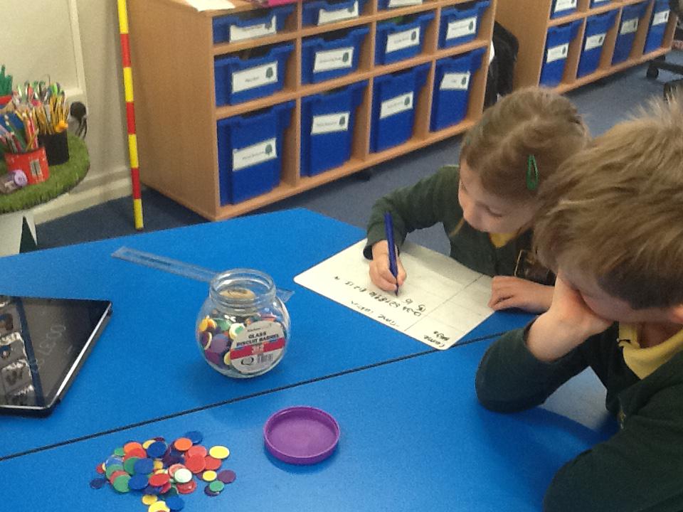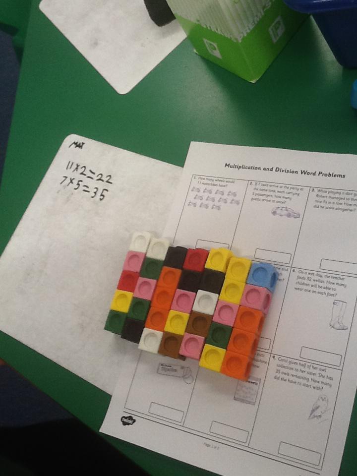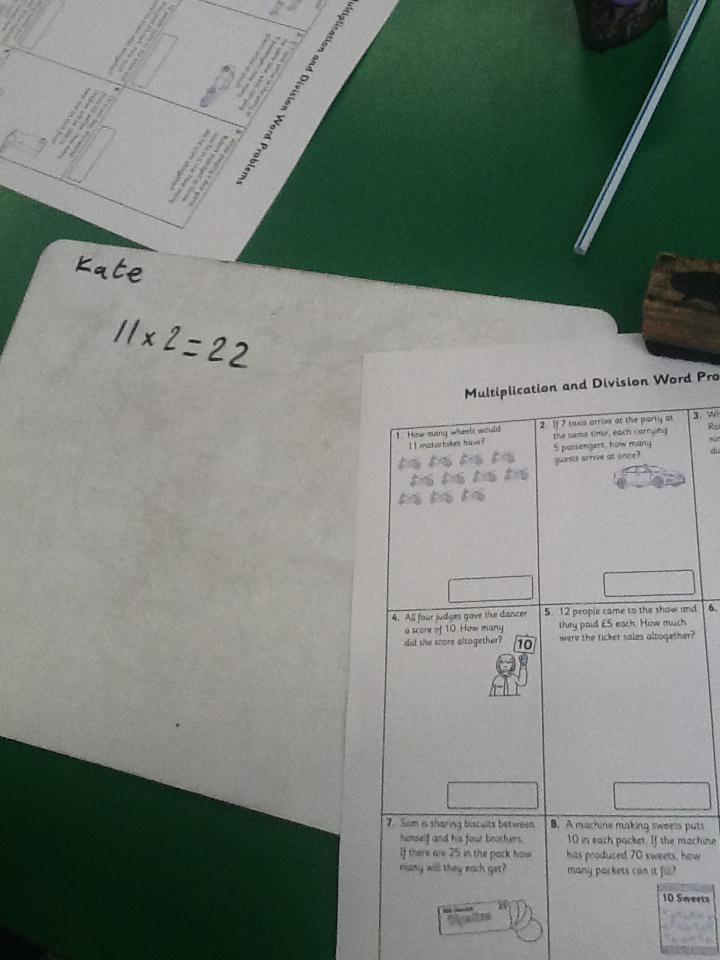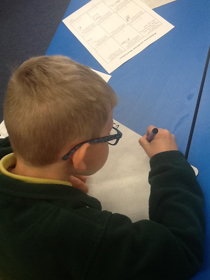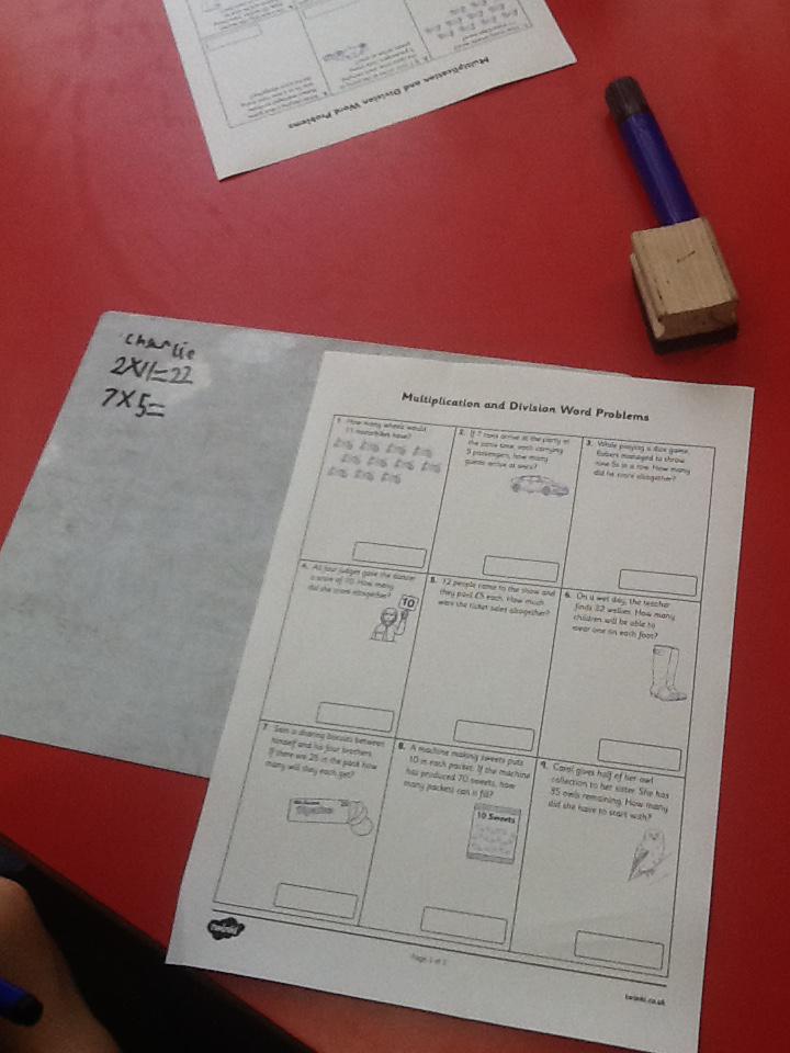 In maths this week we have been solving word problems. We have been looking at ways to find the information we need and then write down the number sentence so we can solve the problem. We looked at problems that used all four number operations. It was good fun using different equipment to help us.