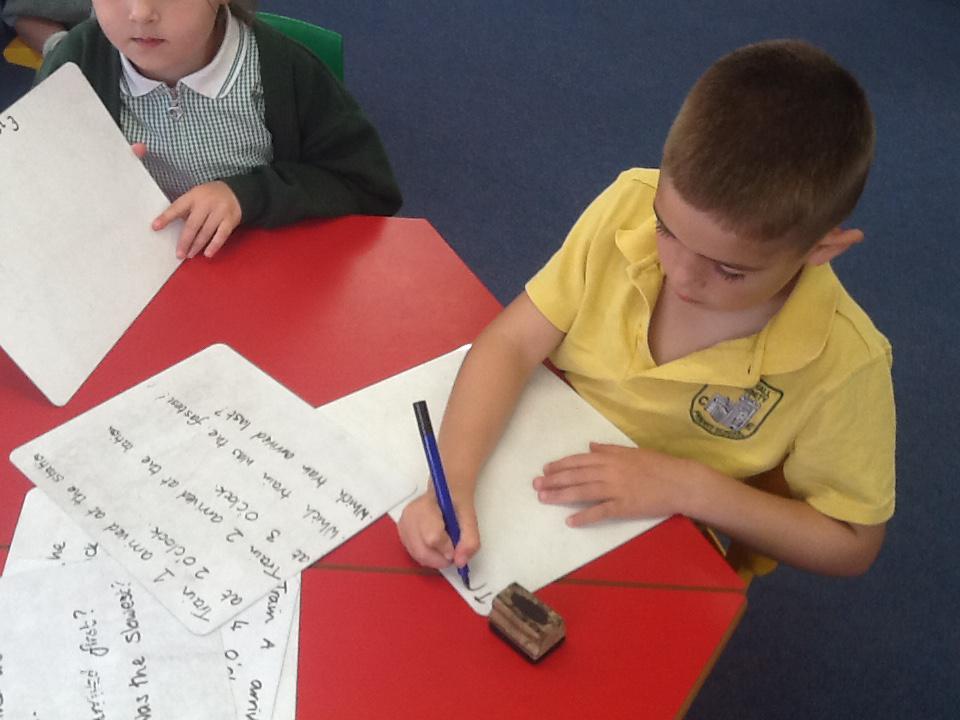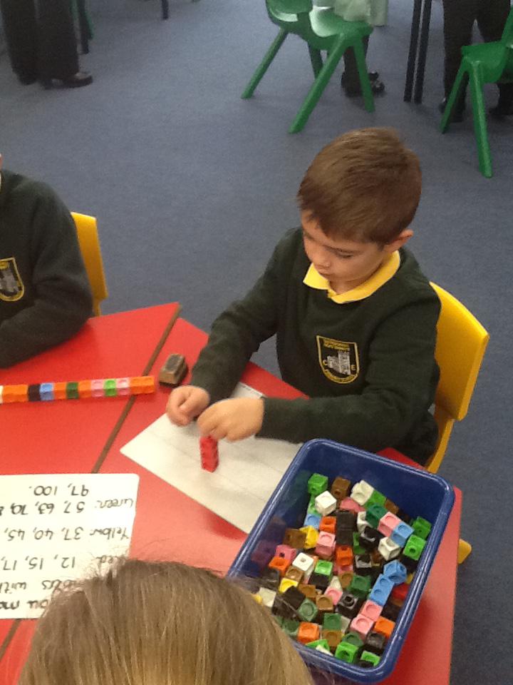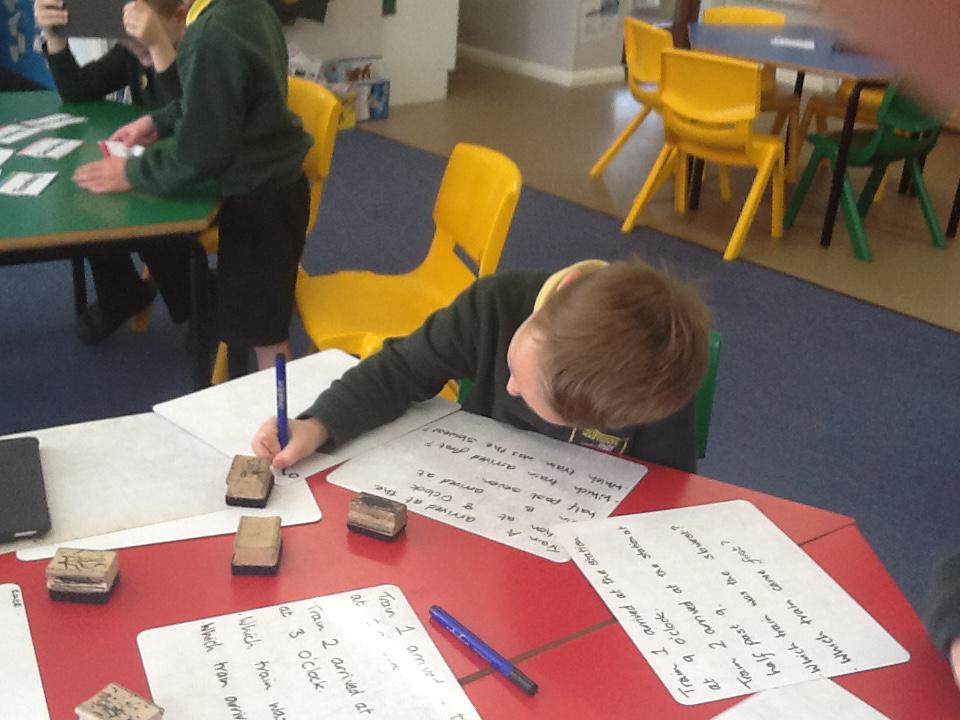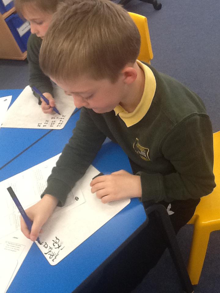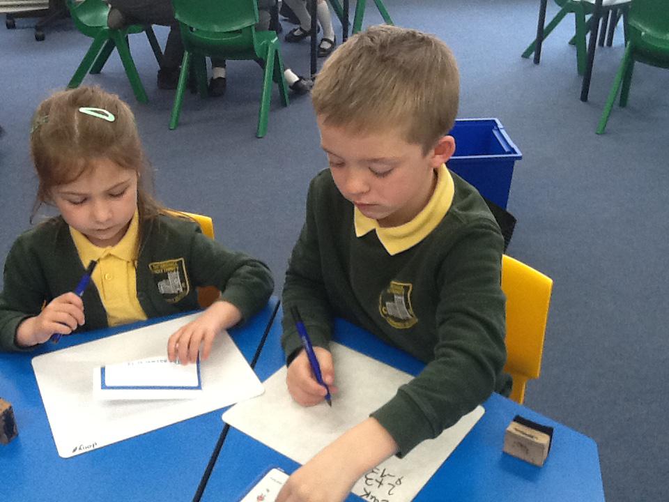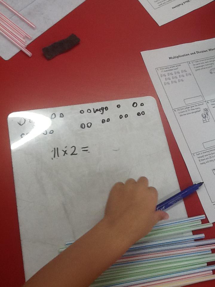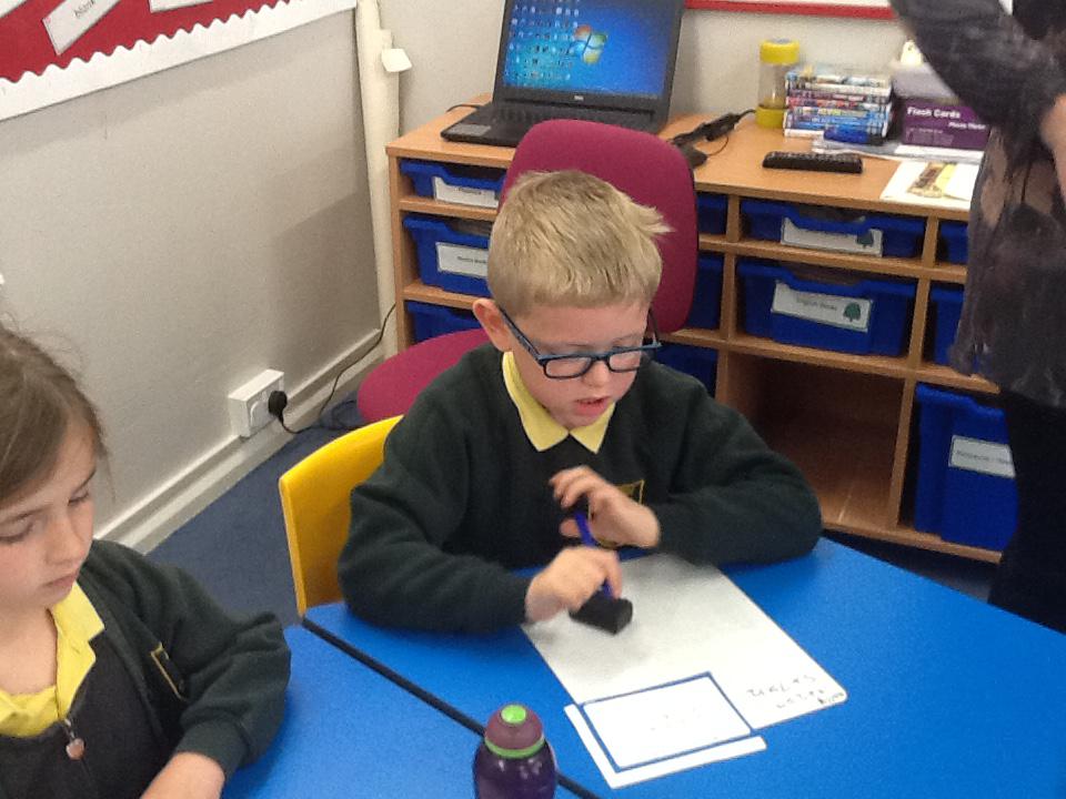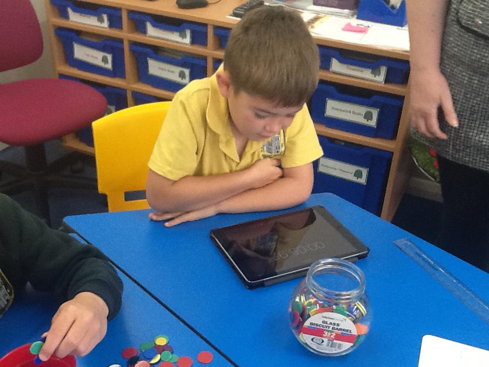 In maths this week we have been solving word problems. We have been looking at ways to find the information we need and then write down the number sentence so we can solve the problem. We looked at problems that used all four number operations. It was good fun using different equipment to help us.