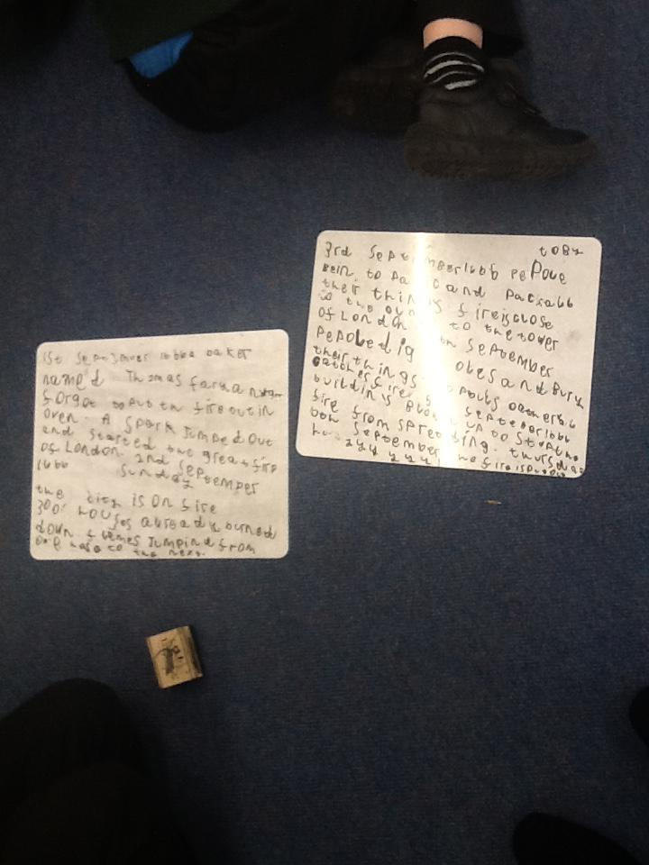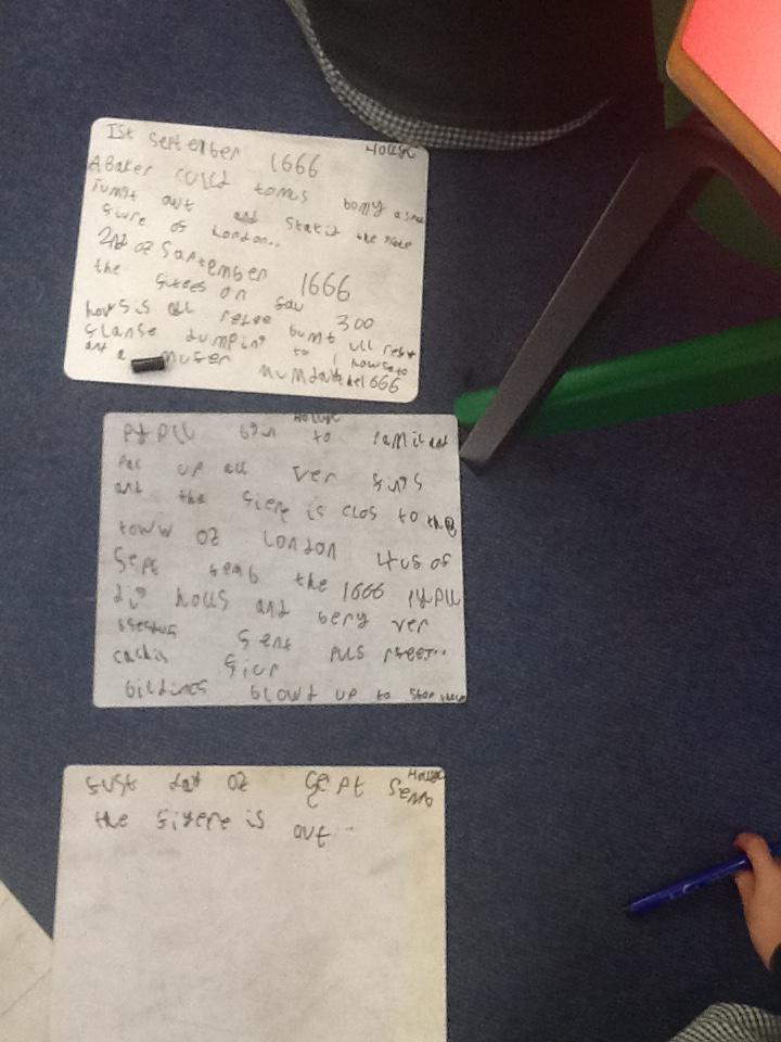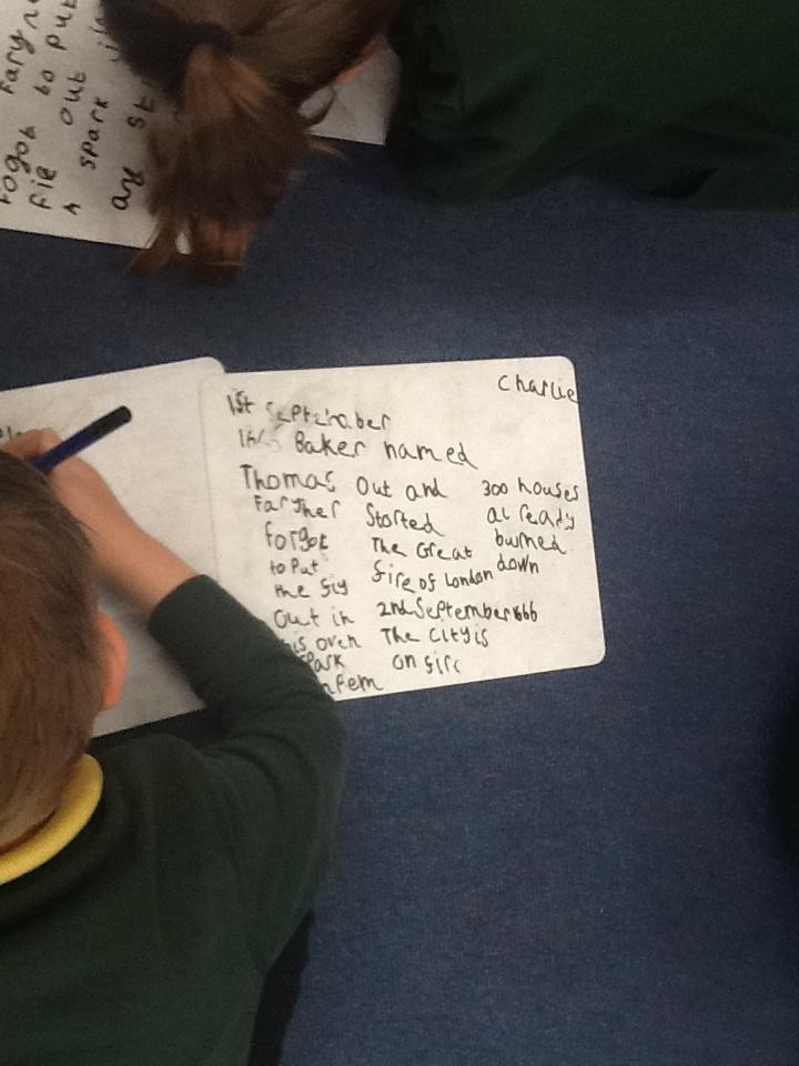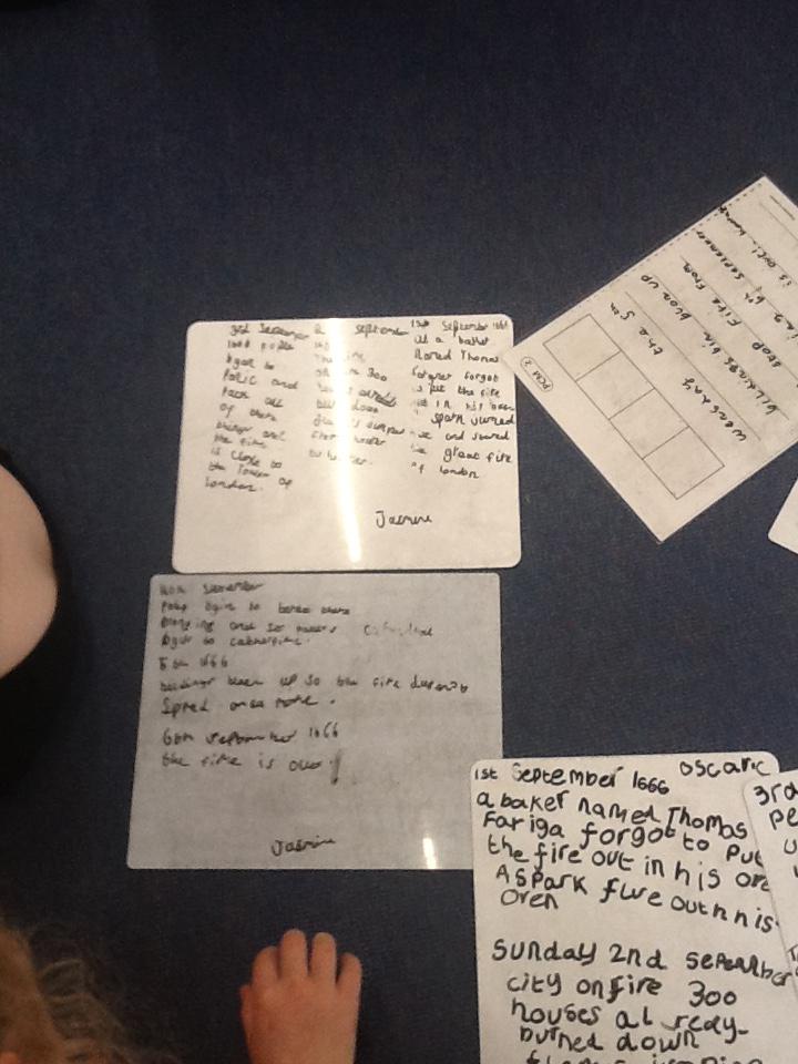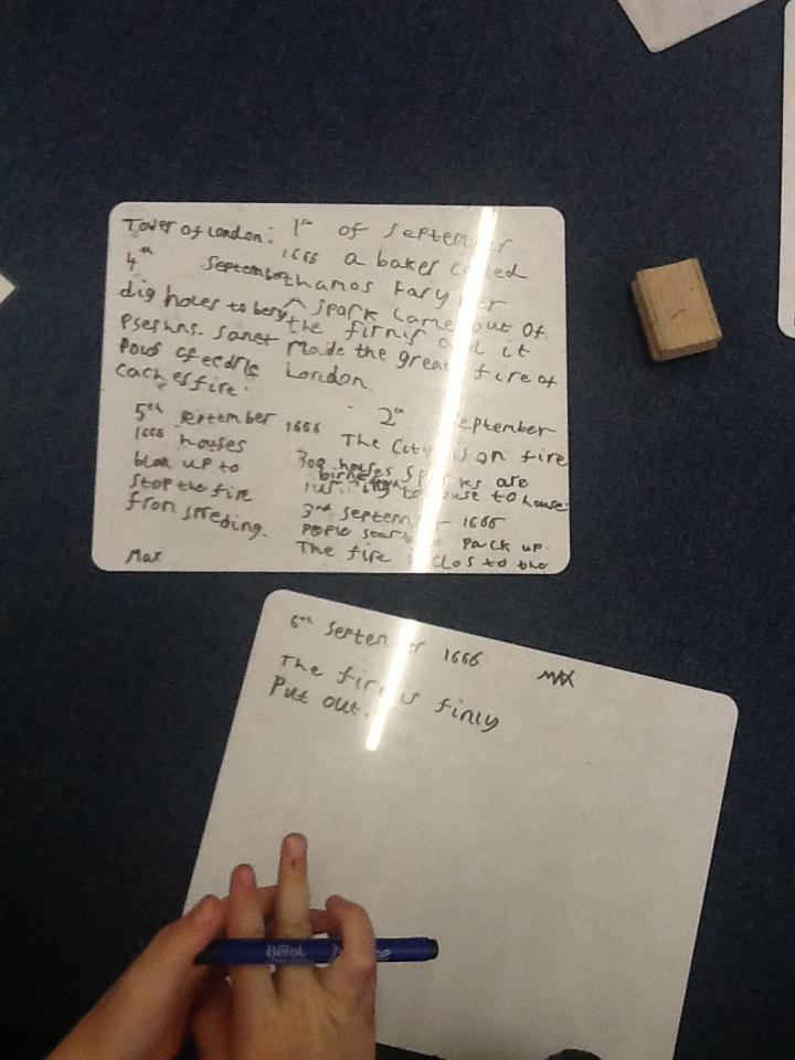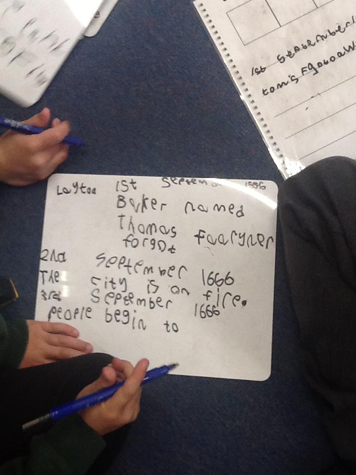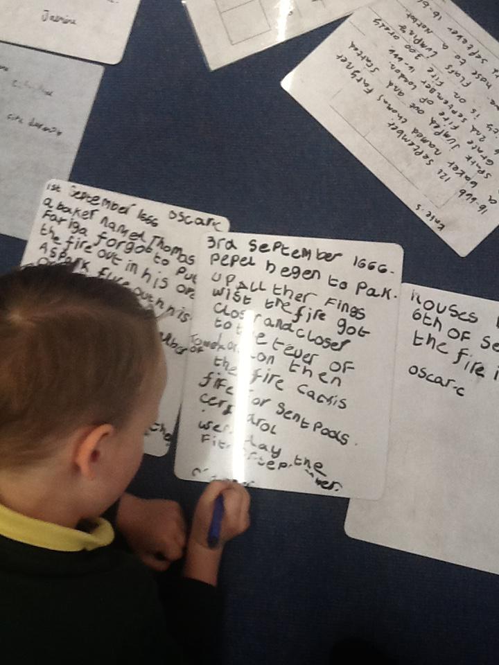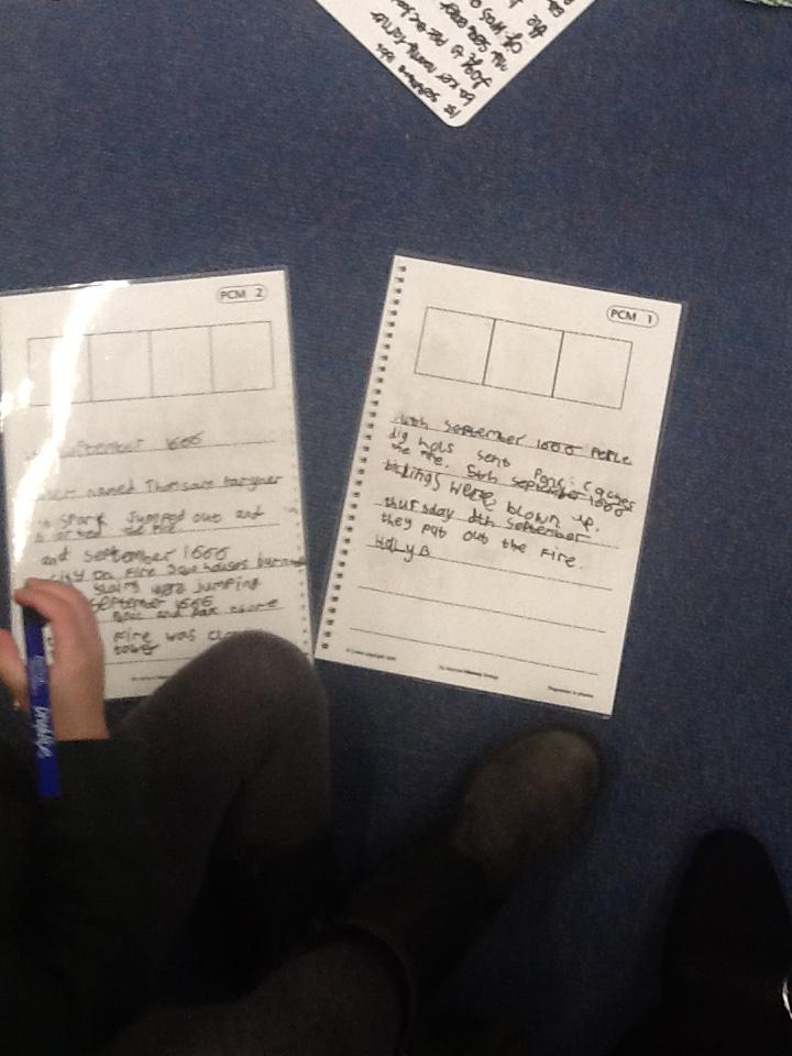 This week we continued our work on The Great Fire of London. We began by making notes on the key events within the great fire. We then used these notes to help us sort some jumbled cards so we knew on which day the different things happened. On Wednesday we began designing our own time lines thinking carefully about what happened on each day and how we could present it neatly in our books.
