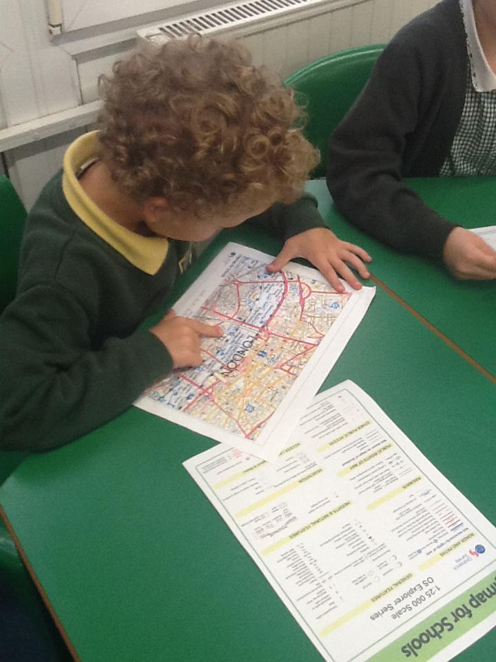 This week we have been looking at maps. We have been using the key and different symbols to find things on different maps of London. We looked at maps from today and also maps from the 1800's to see how things have changed.