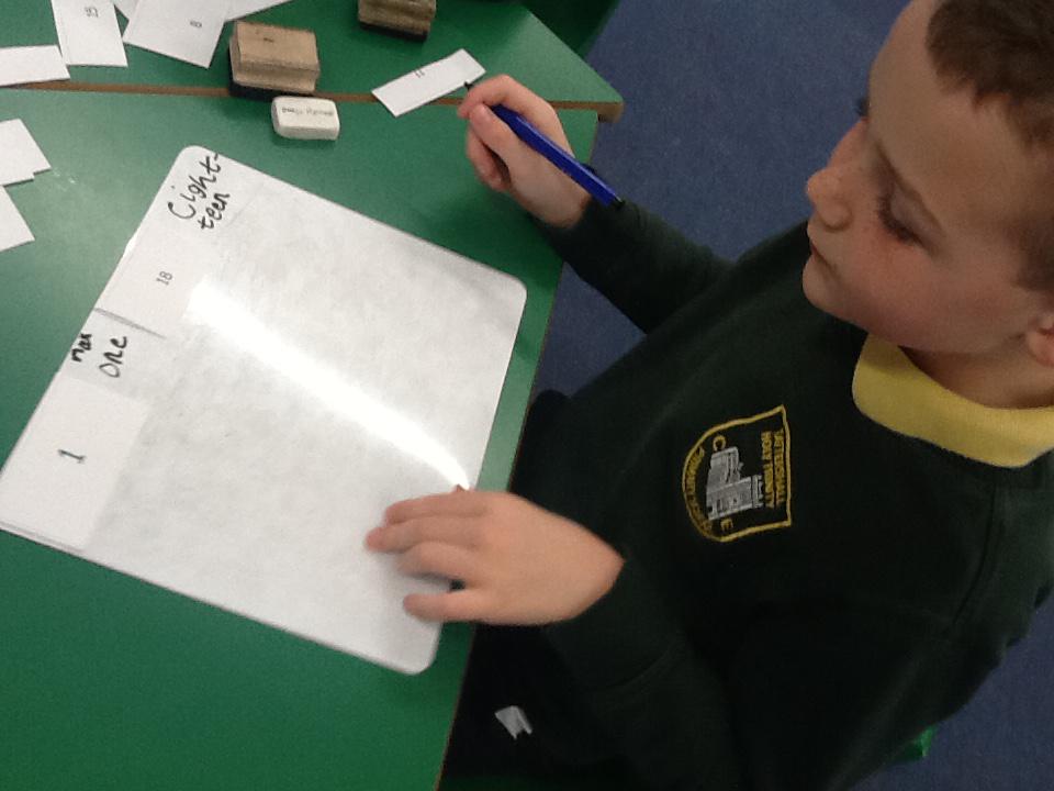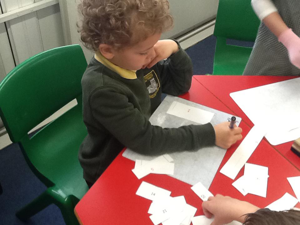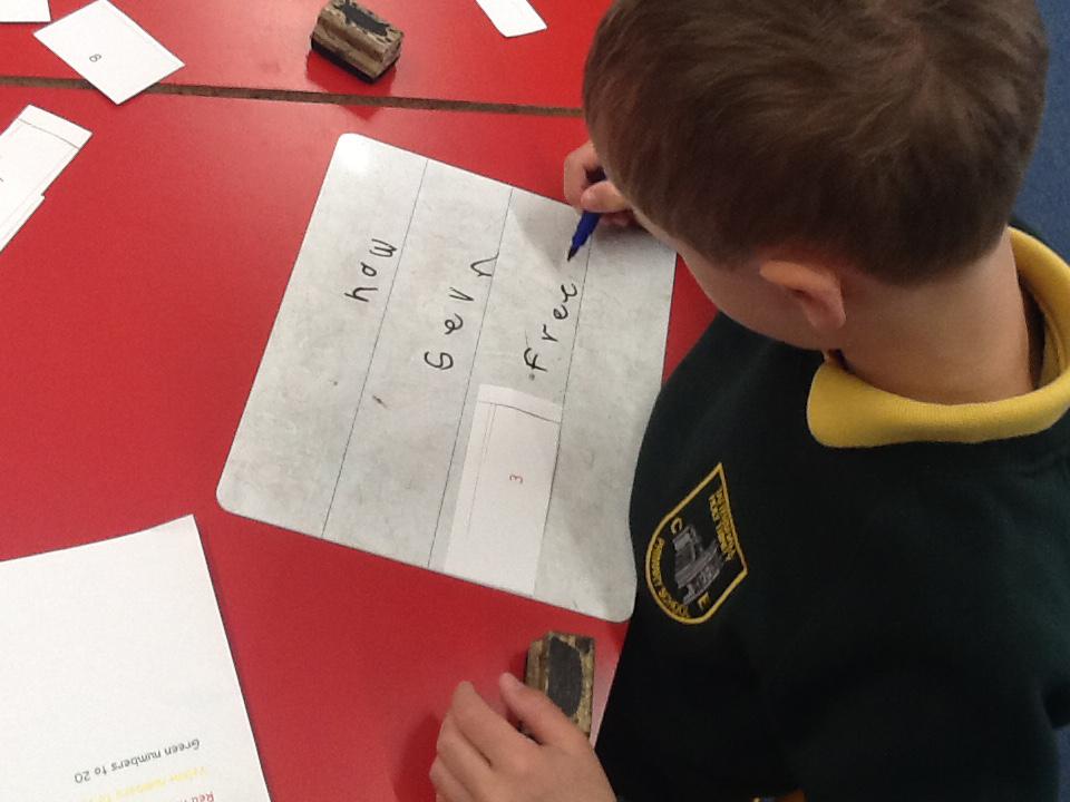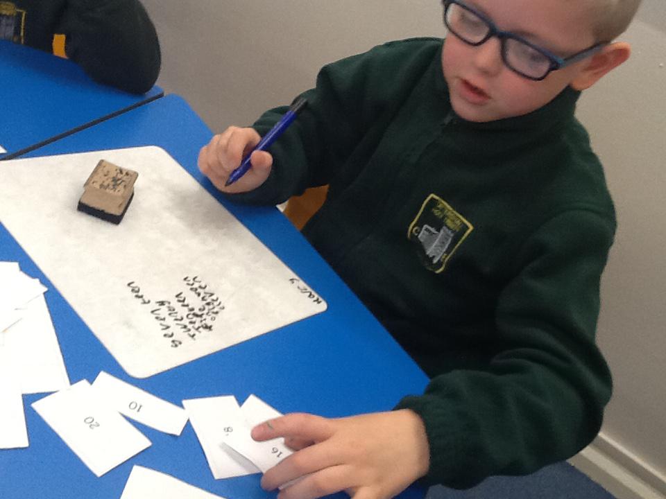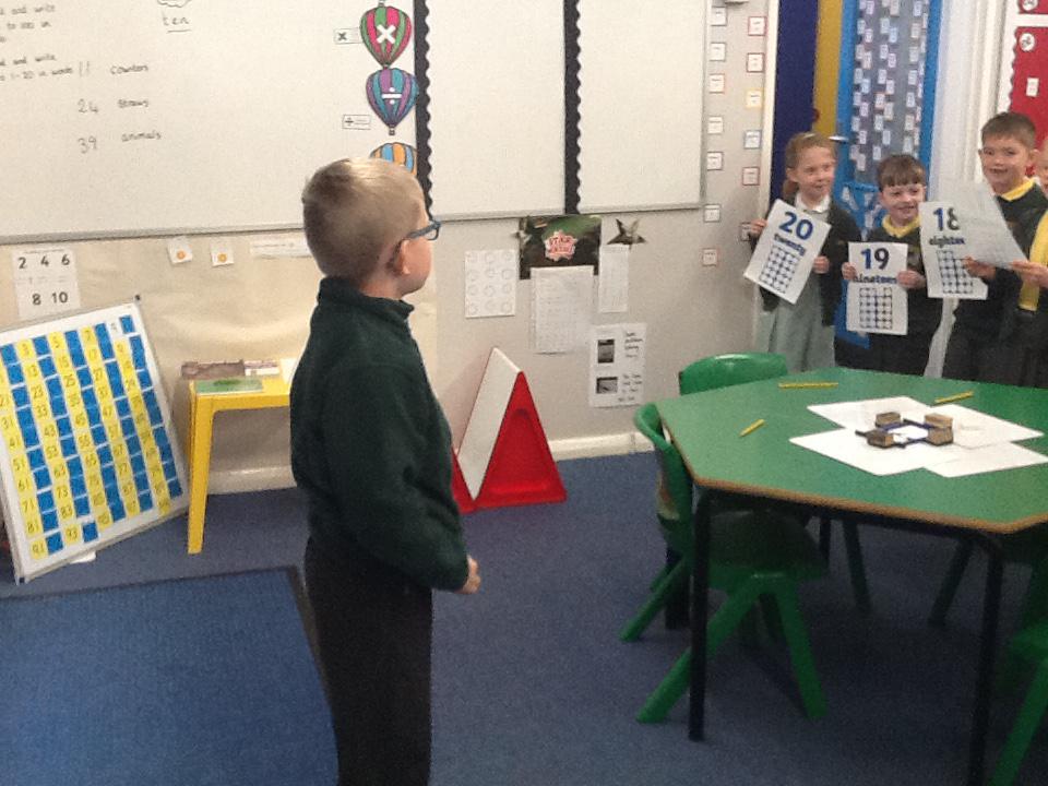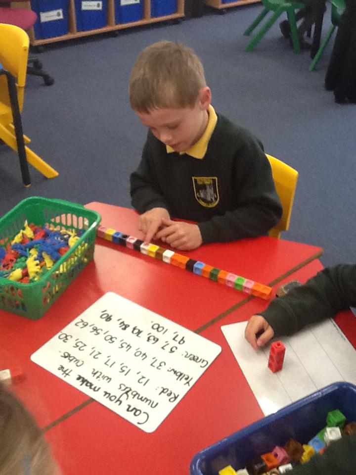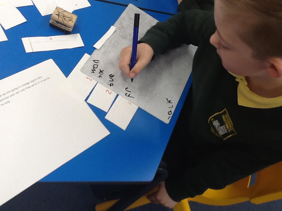 This week we have been working really carefully with numbers. We have been practising writing them, reading them, making them out of different equipment and playing games with them. We have been checking our work against the learning wall to make sure our formation is correct. We ordered number words and had a go at writing number words to 20 this was tricky! We ended the week looking at one more and one less and made patterns with the numbers.