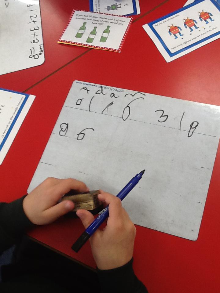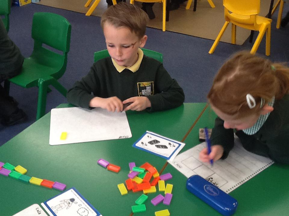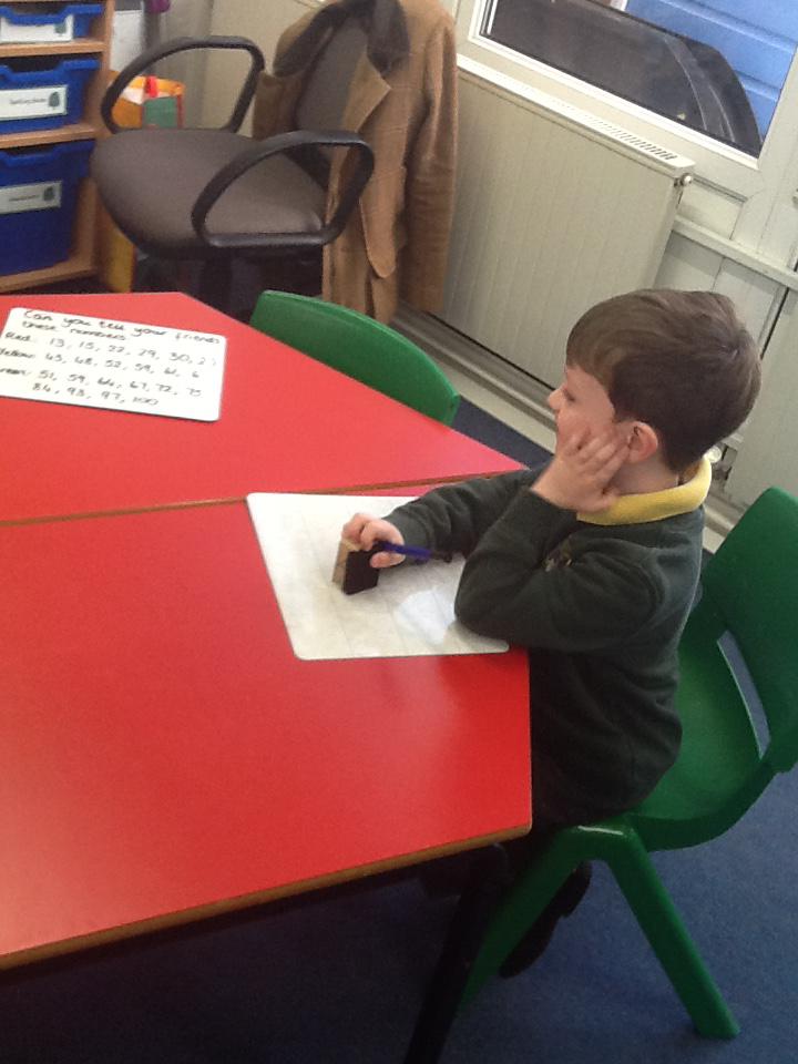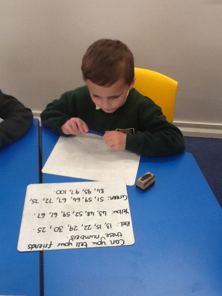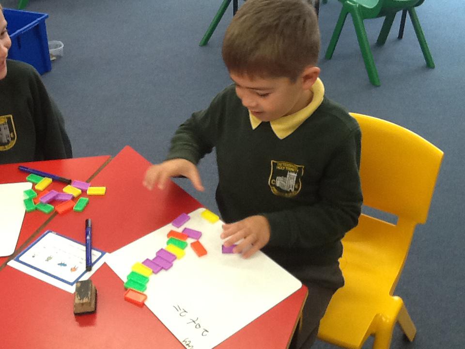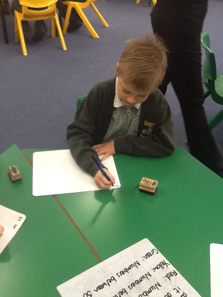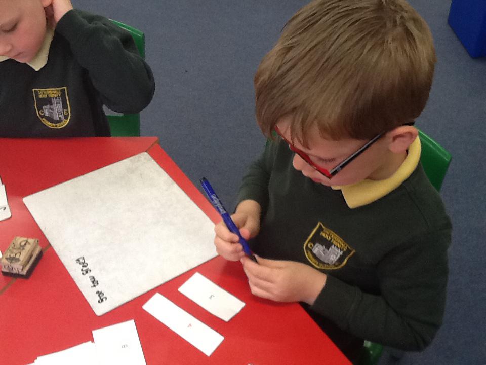 This week we have been working really carefully with numbers. We have been practising writing them, reading them, making them out of different equipment and playing games with them. We have been checking our work against the learning wall to make sure our formation is correct. We ordered number words and had a go at writing number words to 20 this was tricky! We ended the week looking at one more and one less and made patterns with the numbers.
