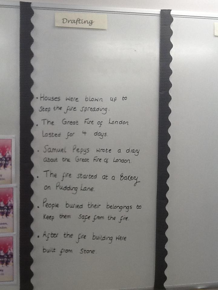 This week we have planned and written a recount of the Great Fire of London. We thought carefully about the different materials that were used to build houses in 1666 and how these have changed today. We focused on including adjectives and connectives in our sentences!