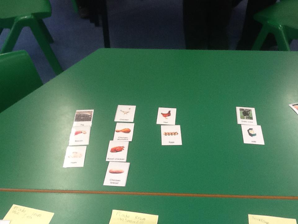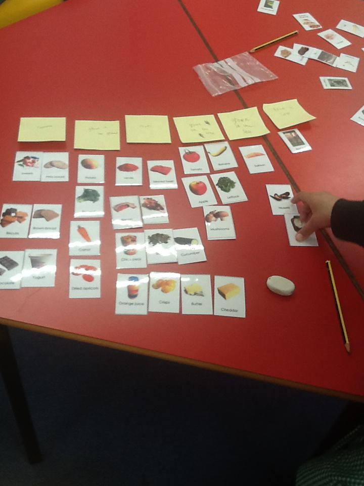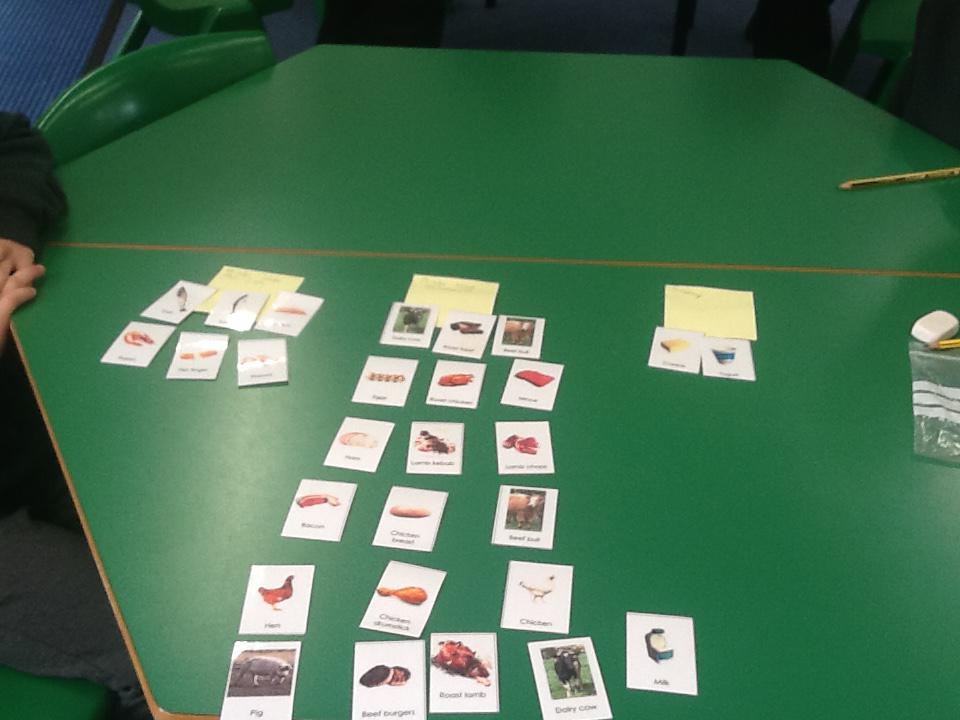 This week we have been thinking about where different foods come from. We had lots of different images of different foods and we had to sort them into different categories. Each group chose how they wanted to sort the different foods and our results were very interesting. We realised that lots of different things come from animals.