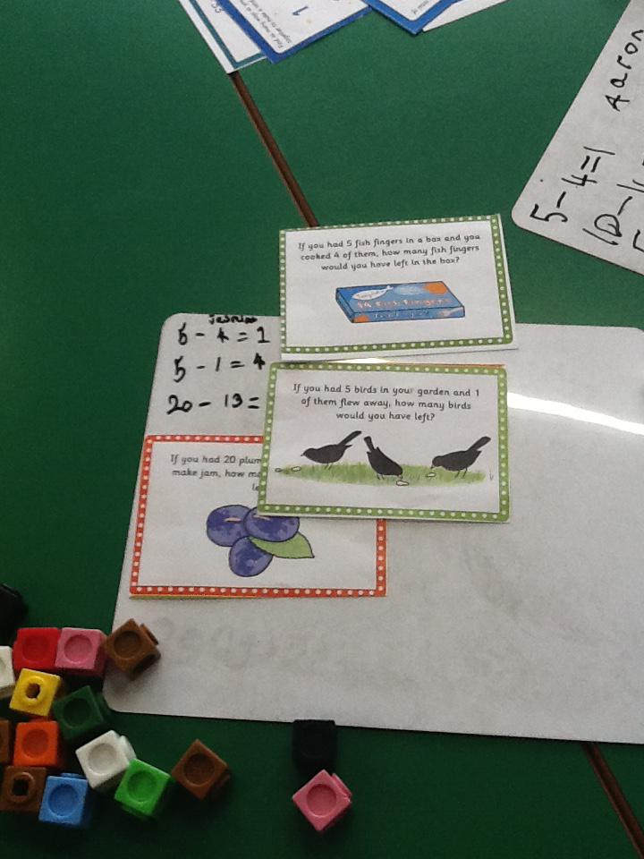 This week in maths we have been solving subtraction and addition sentences. We have been using 1 and 2 digit numbers going up to 50. We have used a range of different equipment to help us solve these sentences but our favourite thing to help was the number line. We finished the week by solving some word problems. We had to read the problems carefully and then work out which number operation we needed to use.
