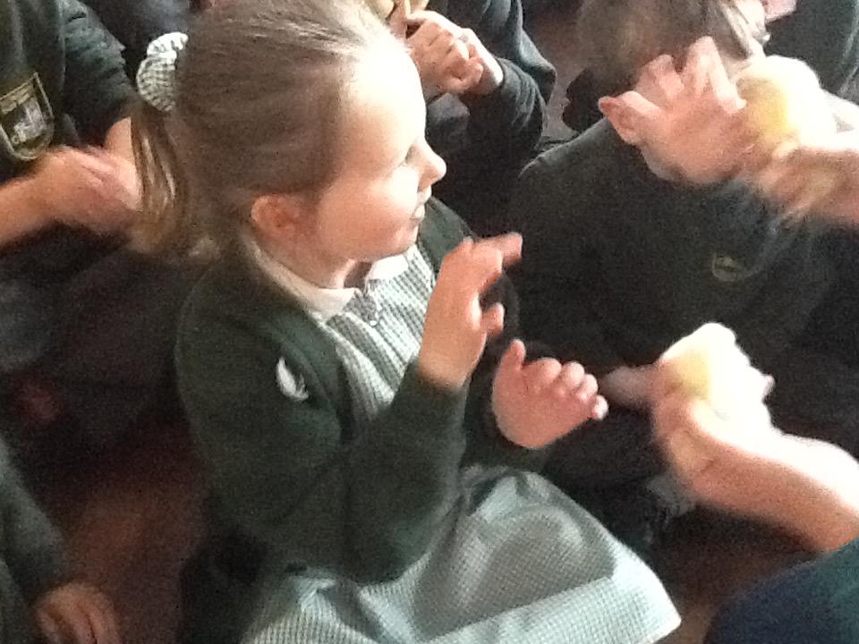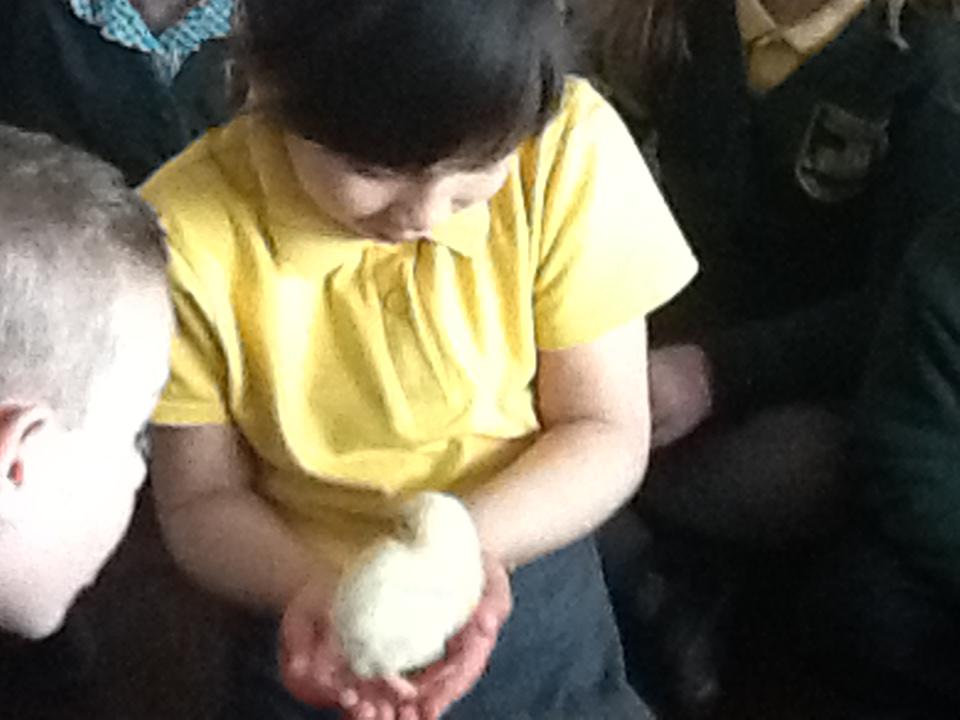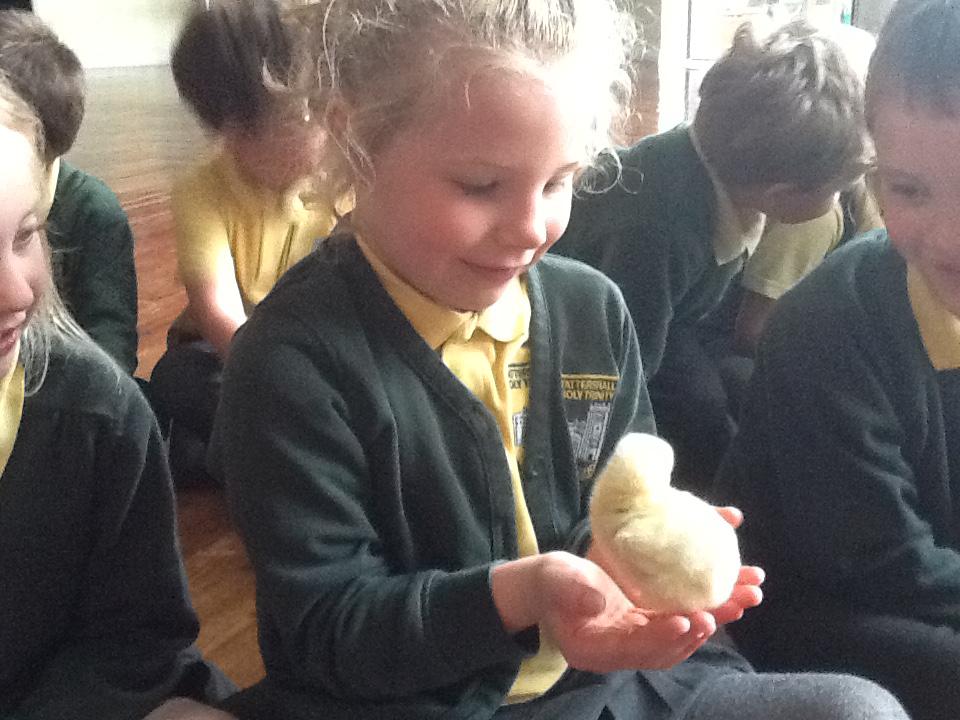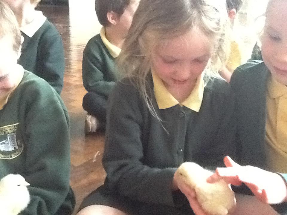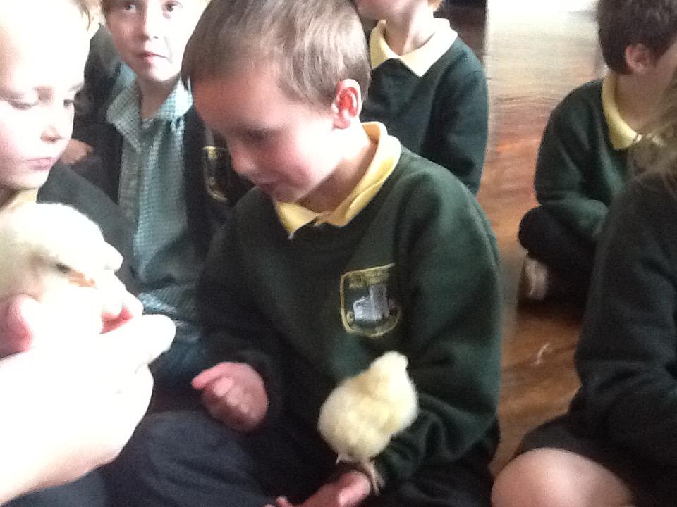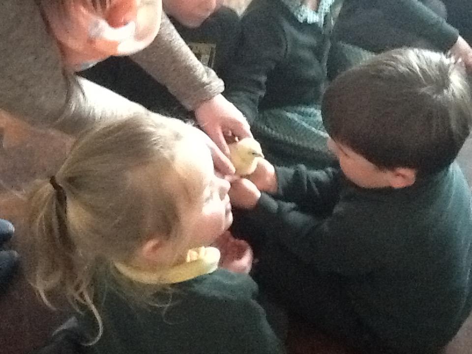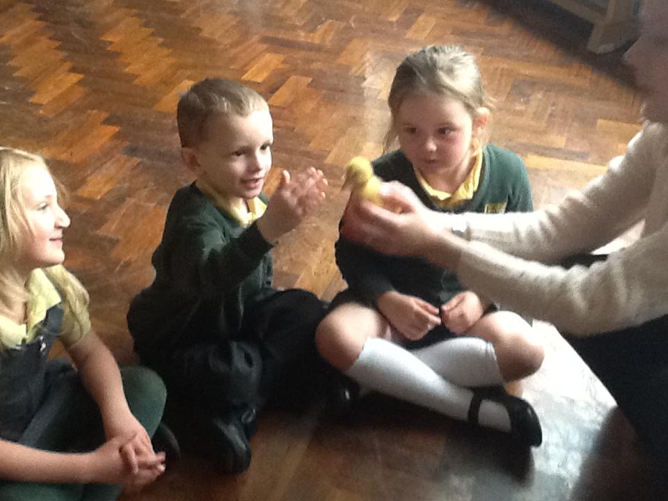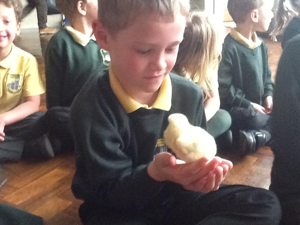 We have had very exciting visitors this afternoon of the fluffy variety. We were very lucky to have some 2 day old chicks and ducklings come to school. We were able to hold and stroke them and then ask questions about how they grow.