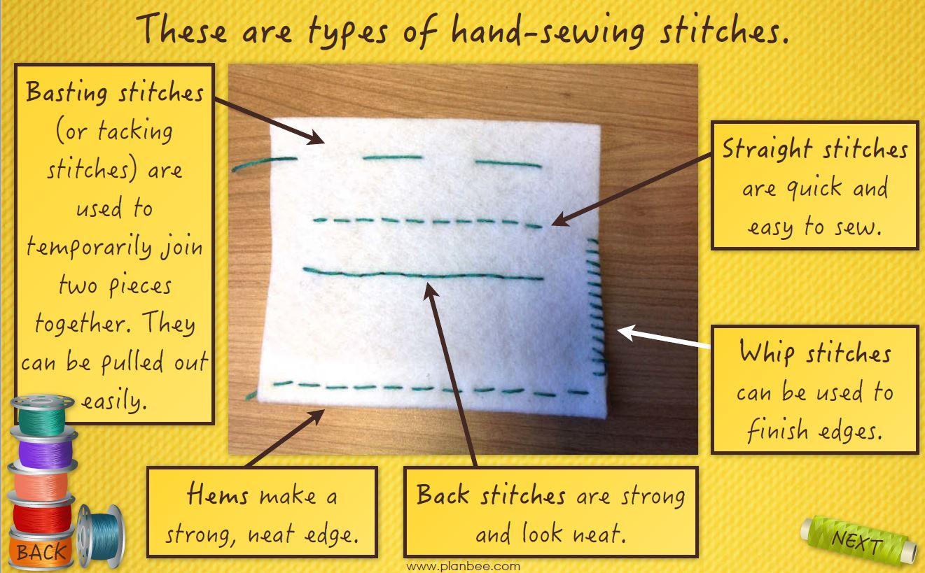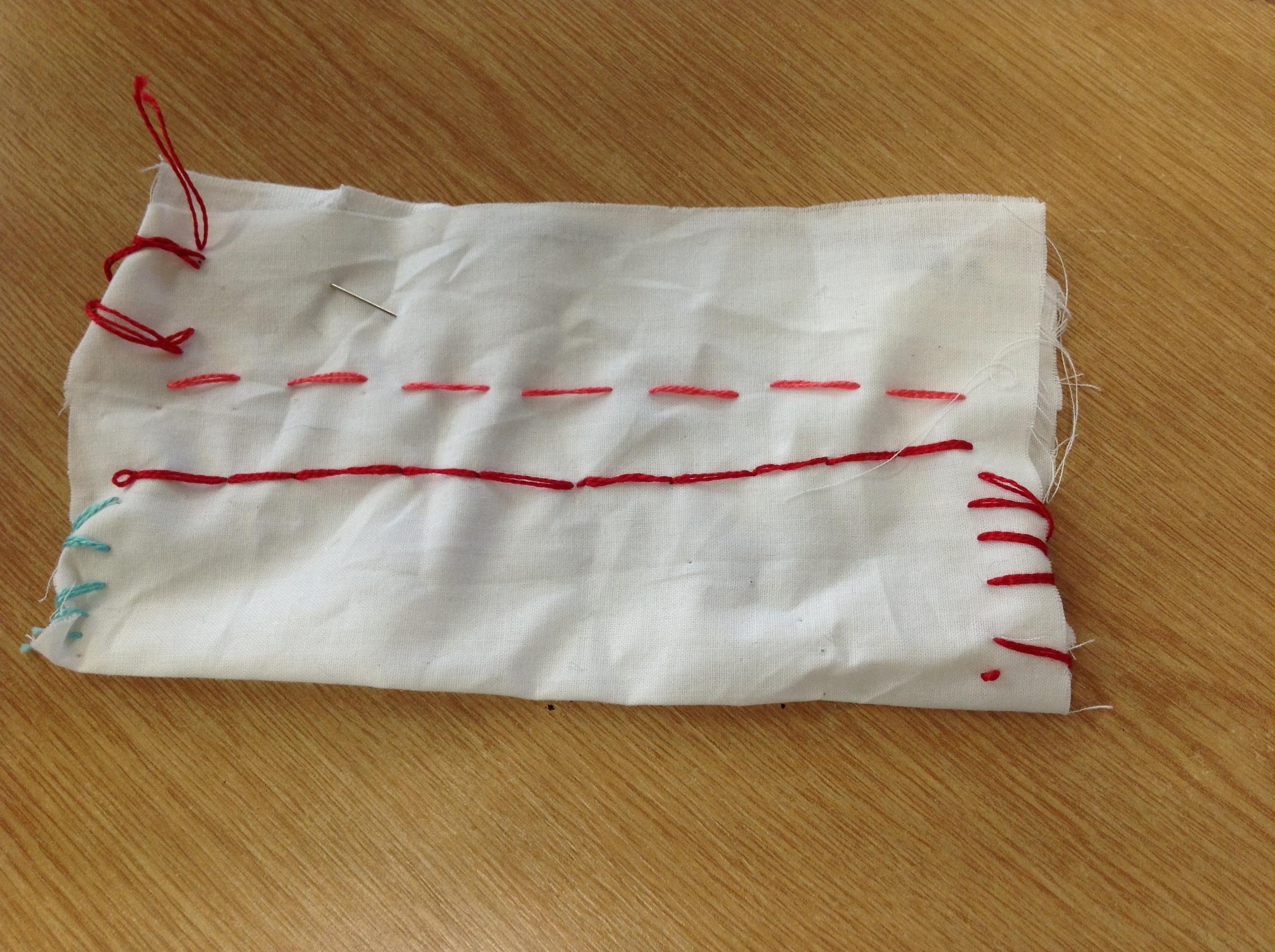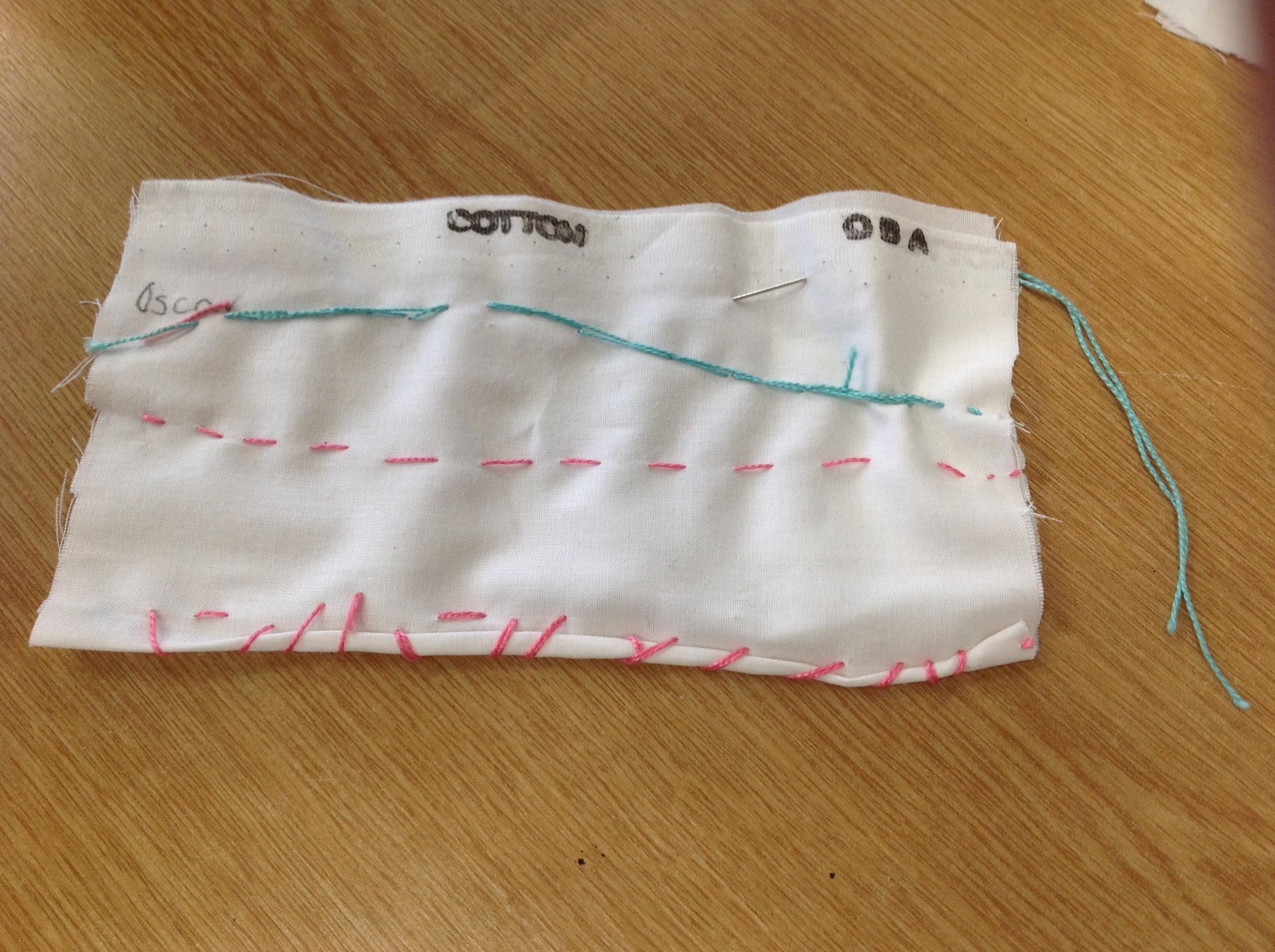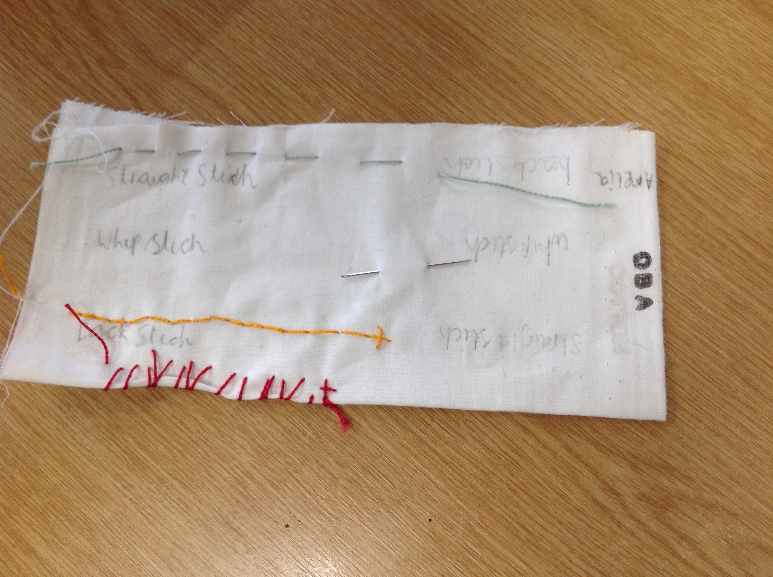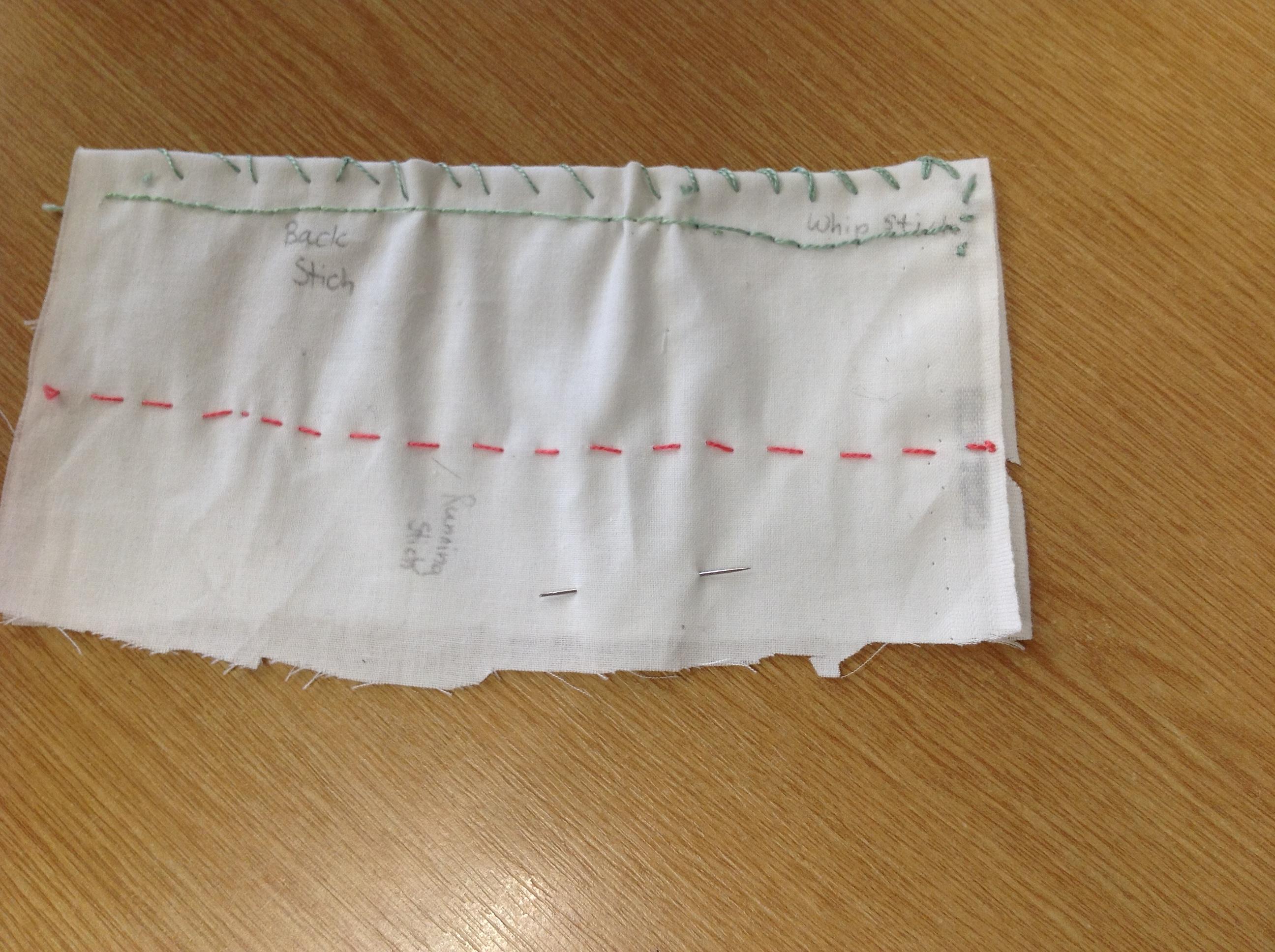 We then looked at hand sewing and learned how to sew straight stitch, backstitch and whip stitch.