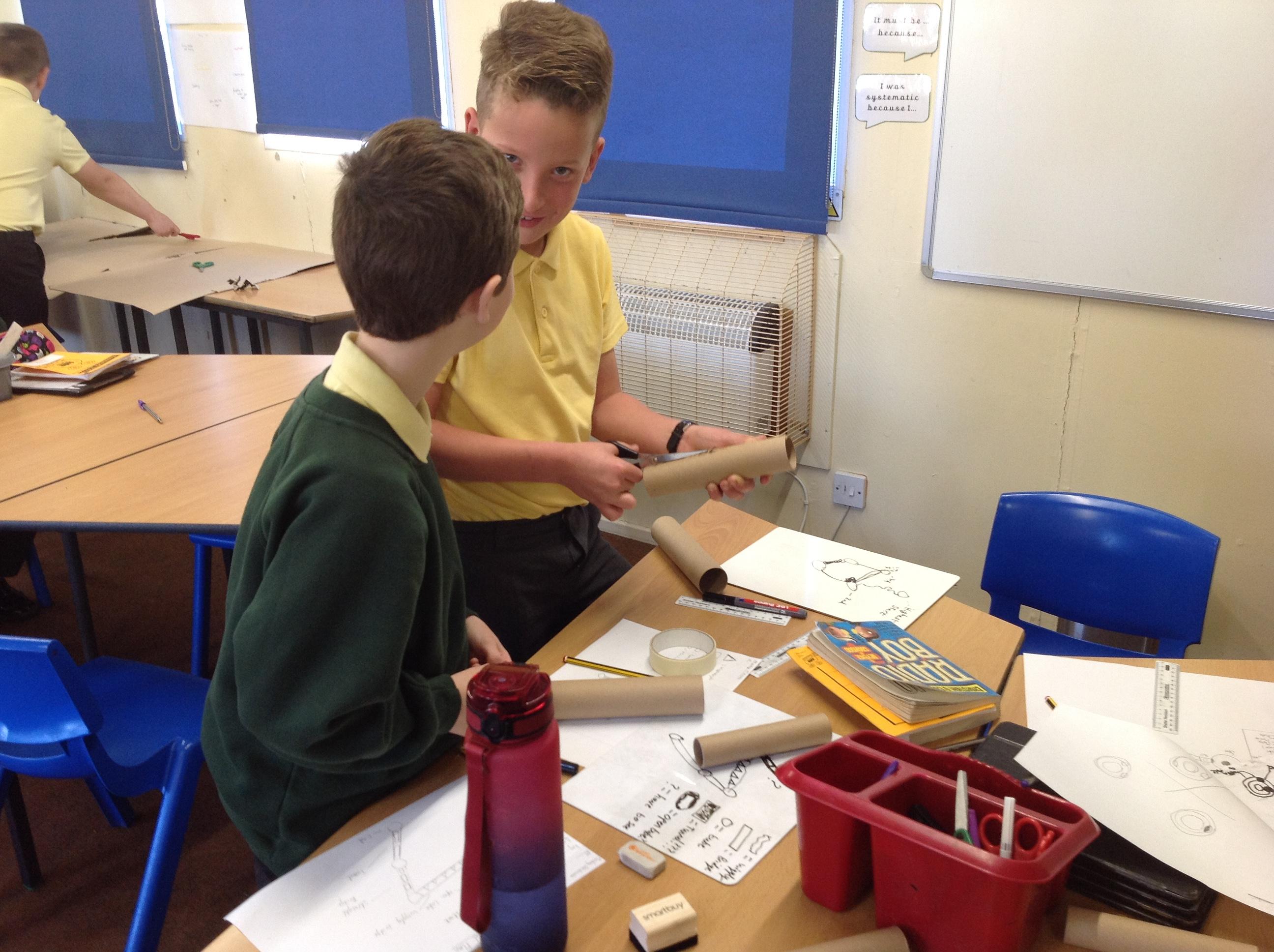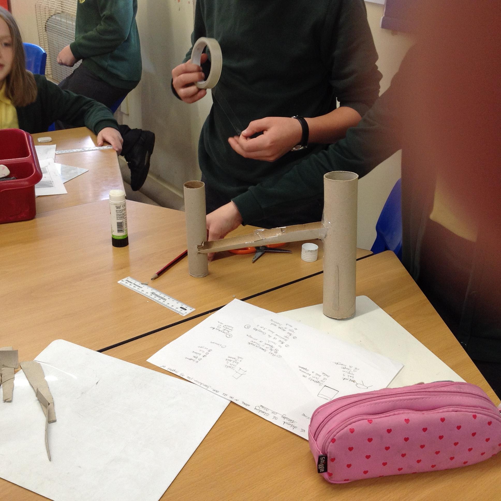 We worked in teams using our prior knowledge of structures from building our marble runs.