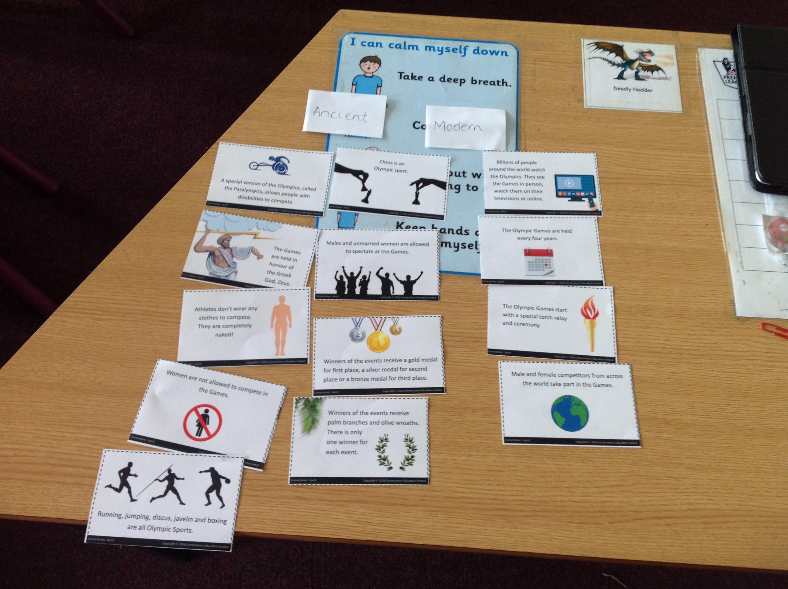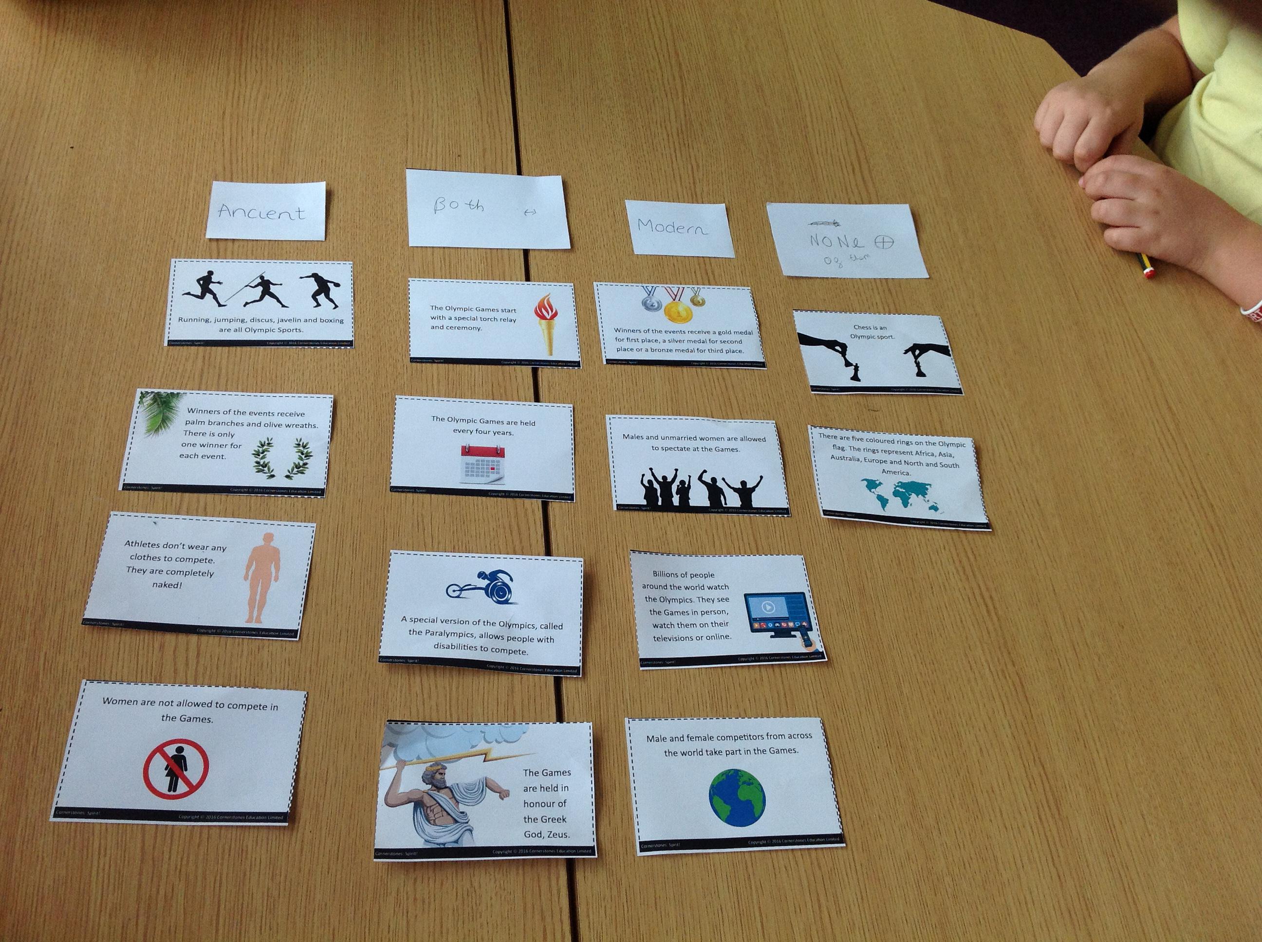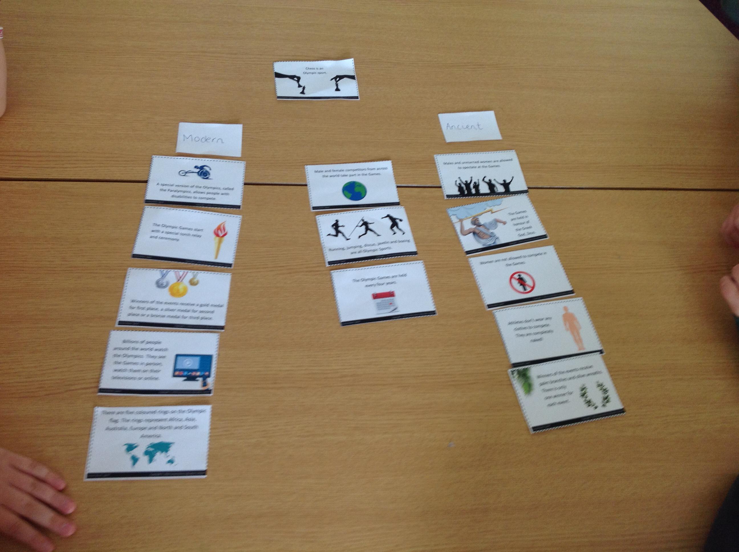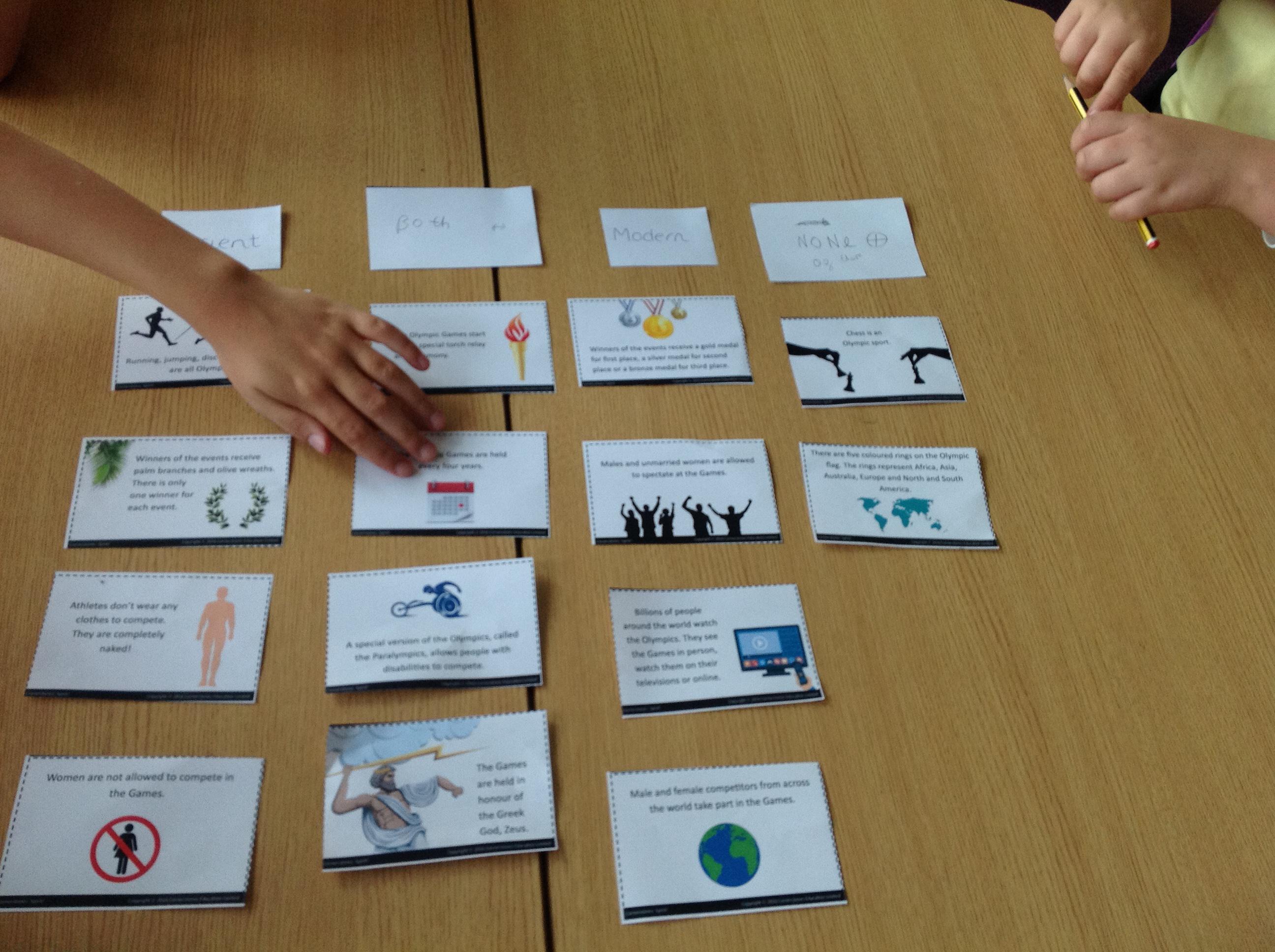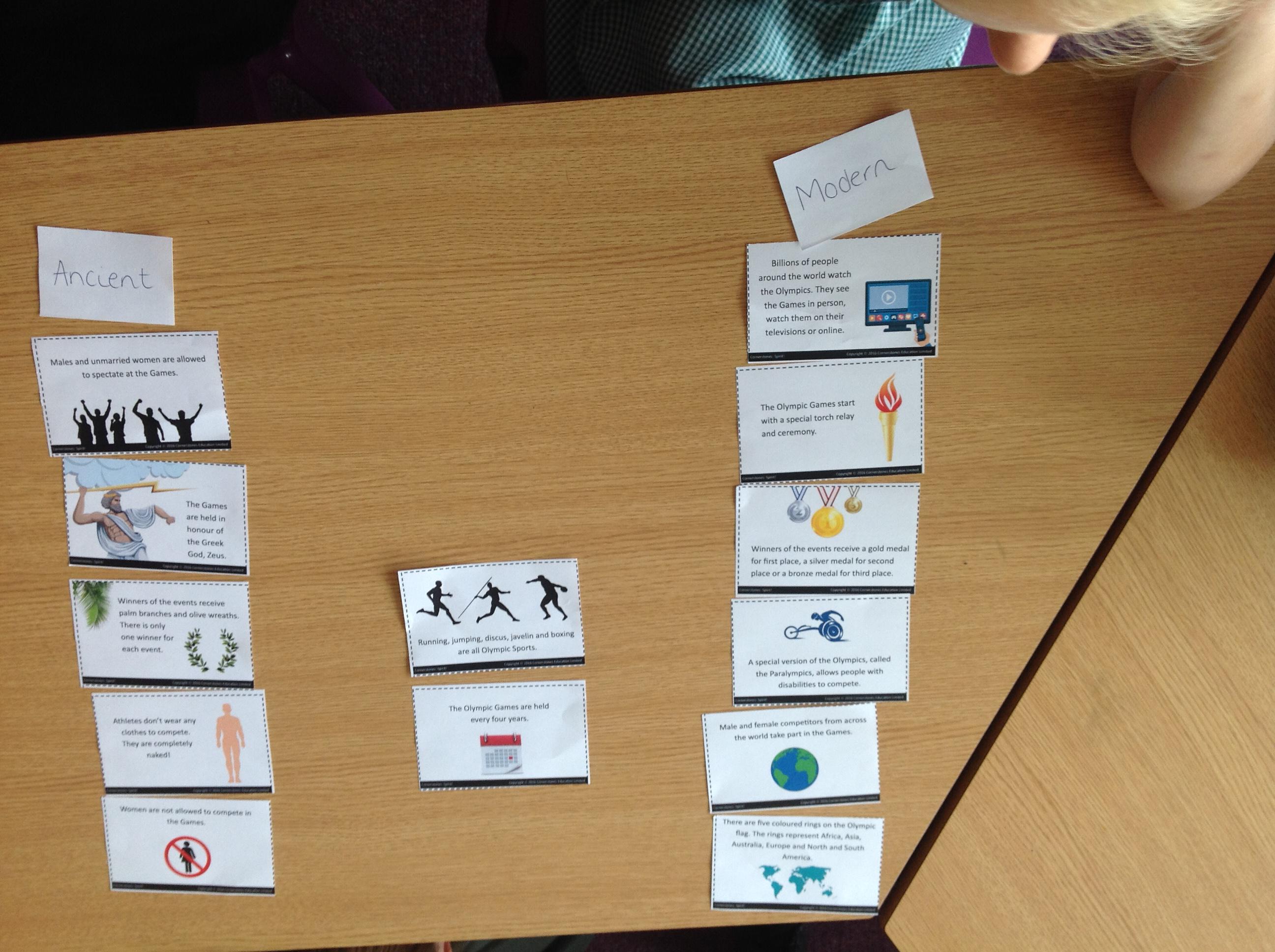 Today we learn more about the Olympics. We used a KWL grid to think about questions we would like to find the answers to! We used the iPads to find the answers. Then we sorted some facts into which we thought were about the modern games and which were about the ancient games. Some were both and some were neither! However, we learnt that an application has been put in to make Chess an Olympic sport in 2020!