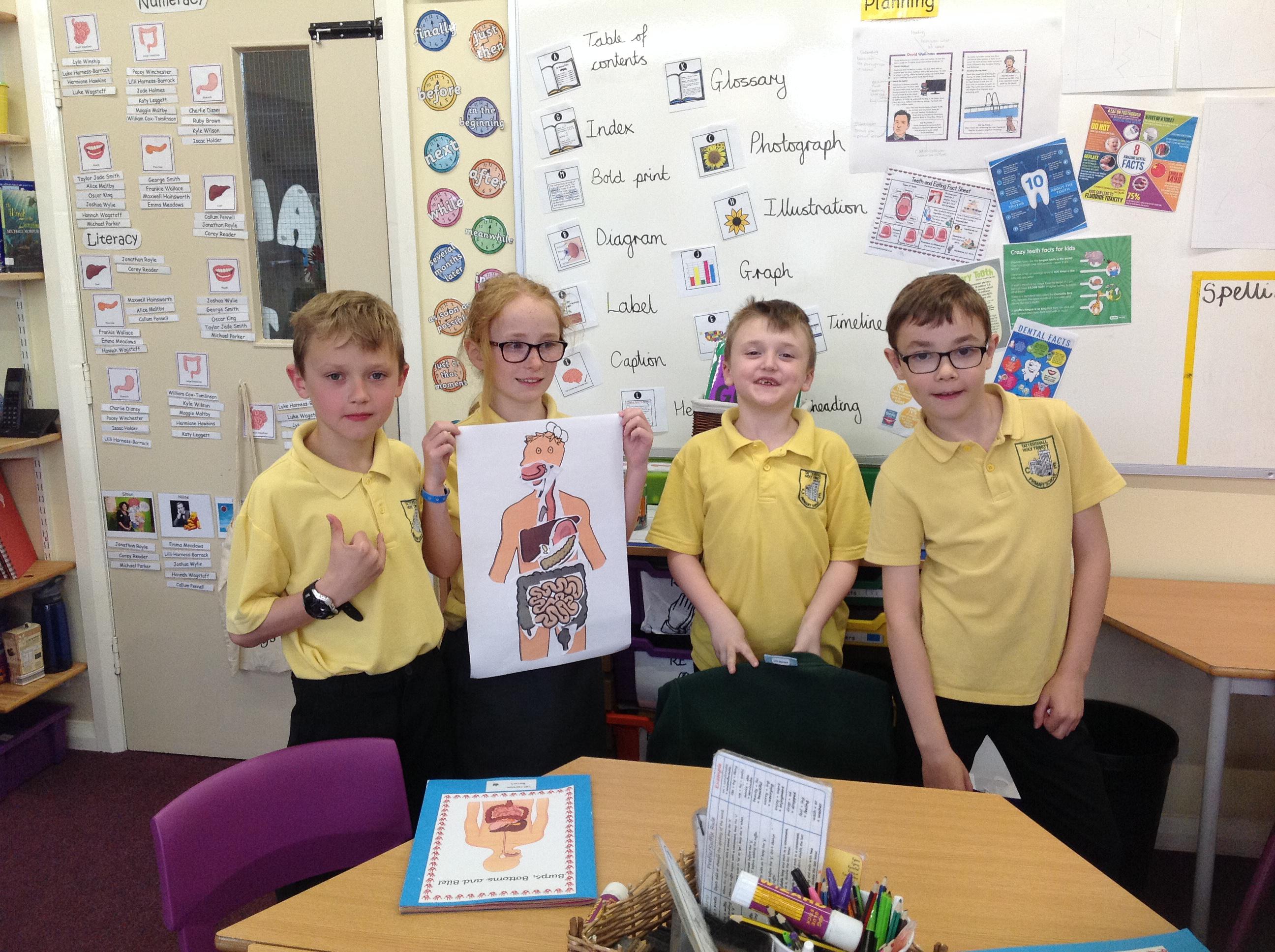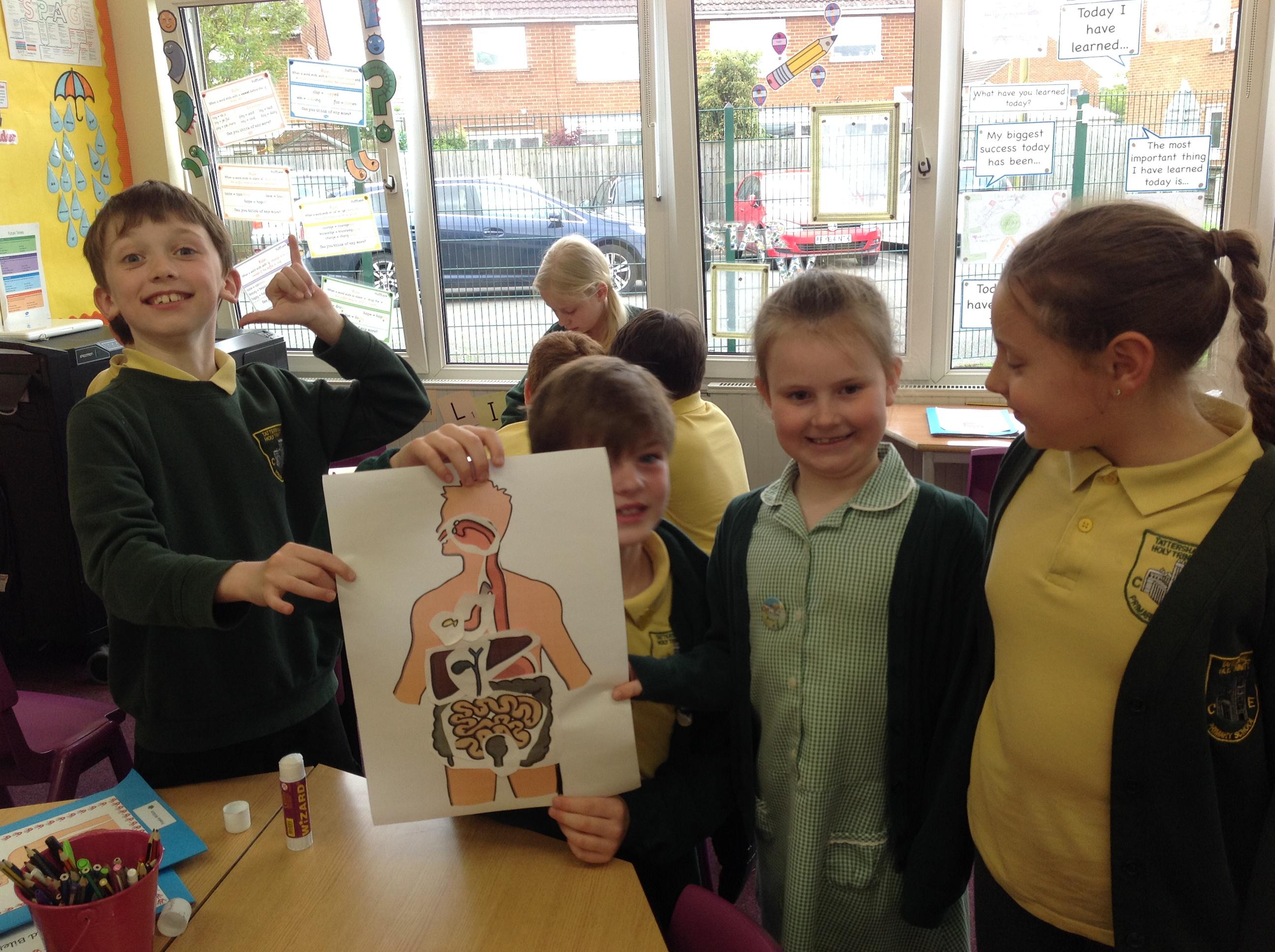 Today we have been finding out which organs help us to digest our food. We had a go at positioning and labelling these organs first and then checked our answers! We were very close with some of the larger organs! Next week, we're going to learn their purpose within the digestive system!