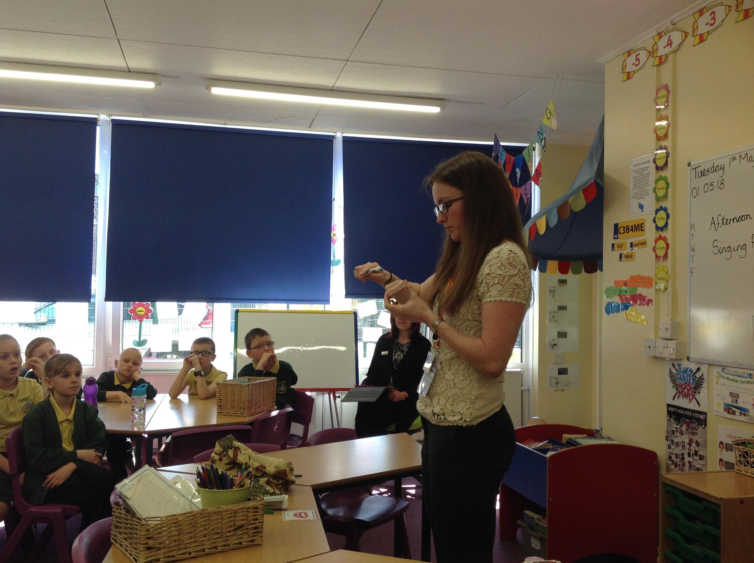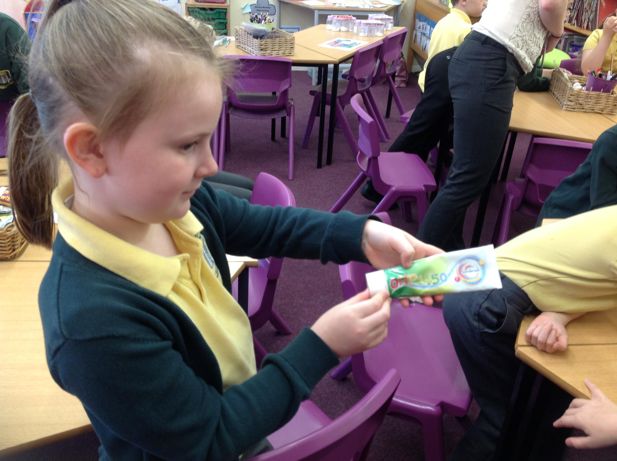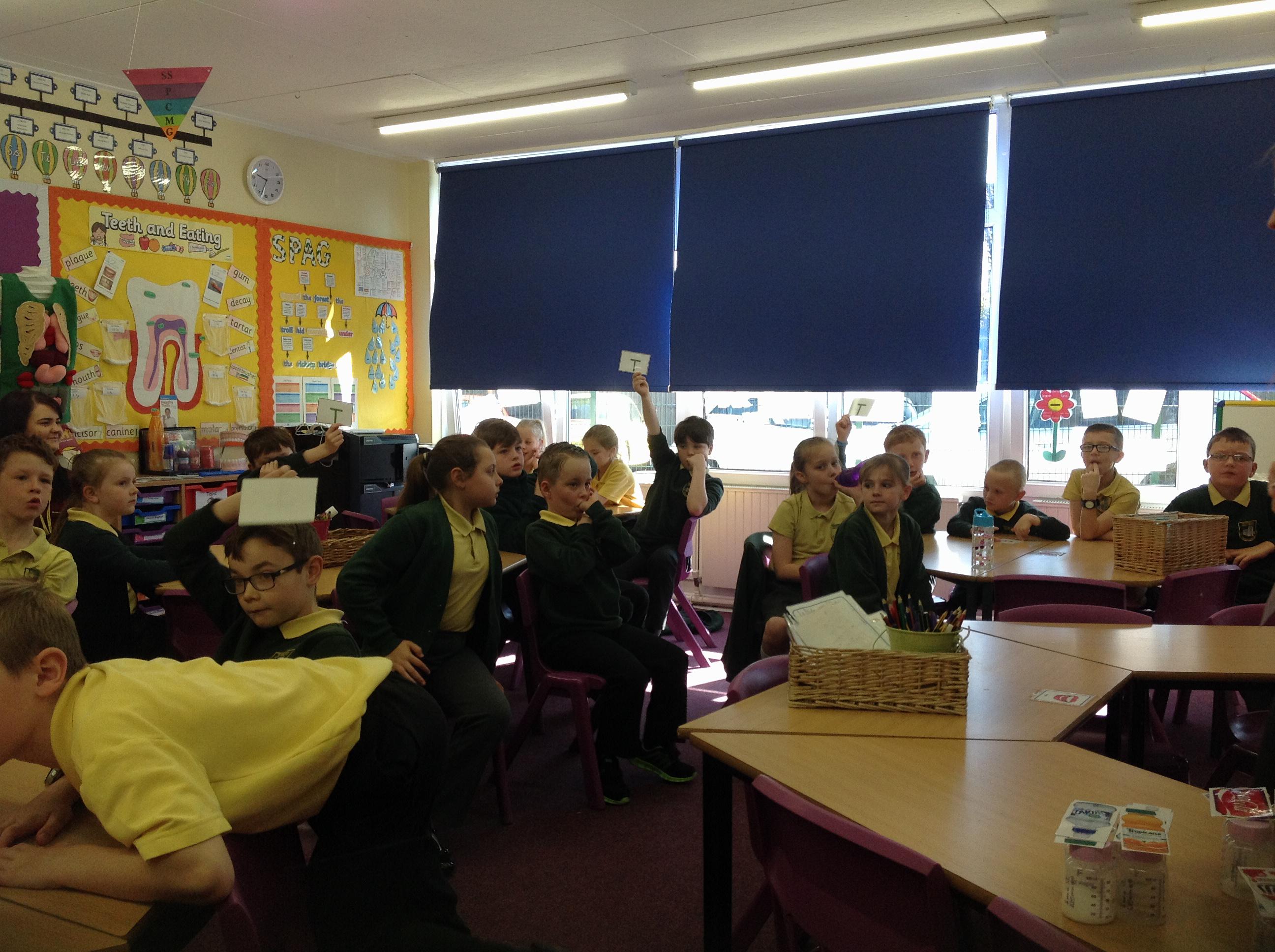 We had a visit from a dental nurse today. We looked at different toothbrushes and the benefits of each type and discovered how much fluoride should be in toothpaste (1450ppmf.) We had a true or false quiz and we really showed off our knowledge of teeth! We then guessed how much sugar is in different types of drinks!