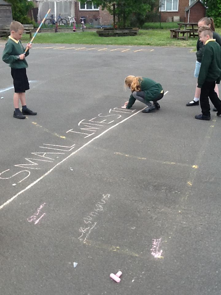 We went out on the playground today to measure the lengths of different parts of the Digestive System! We realised that the small intestines were the longest part! It was incredible to see that 5m of tube is tucked away inside our tummies!
