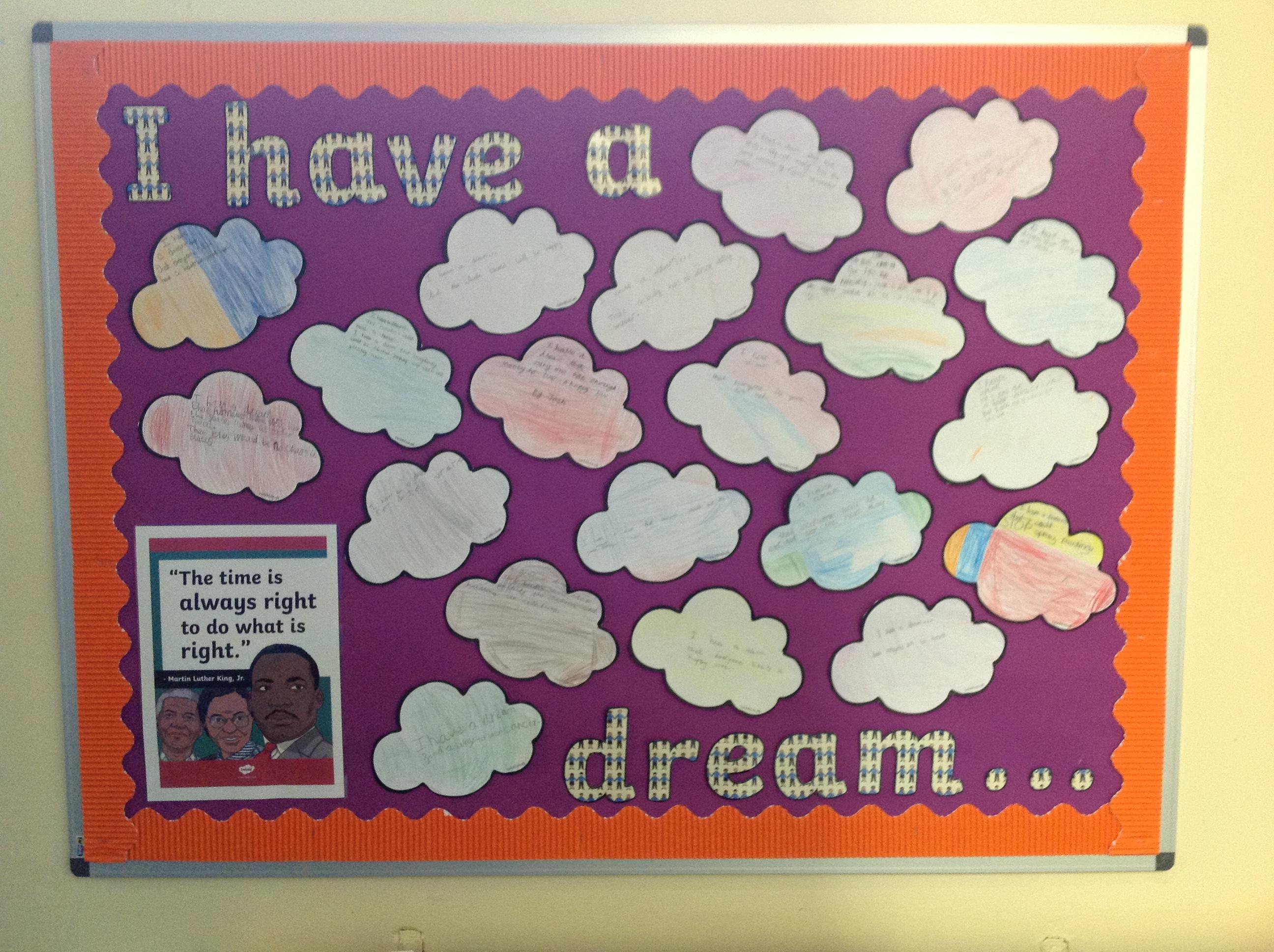 We have learnt all about Martin Luther King and how his views have affected how the people of America live today. We learnt about his life and what he believed in. We also watched a little bit of his famous speech. We then thought about what we might write a speech about and what we thought needed to change in the world.