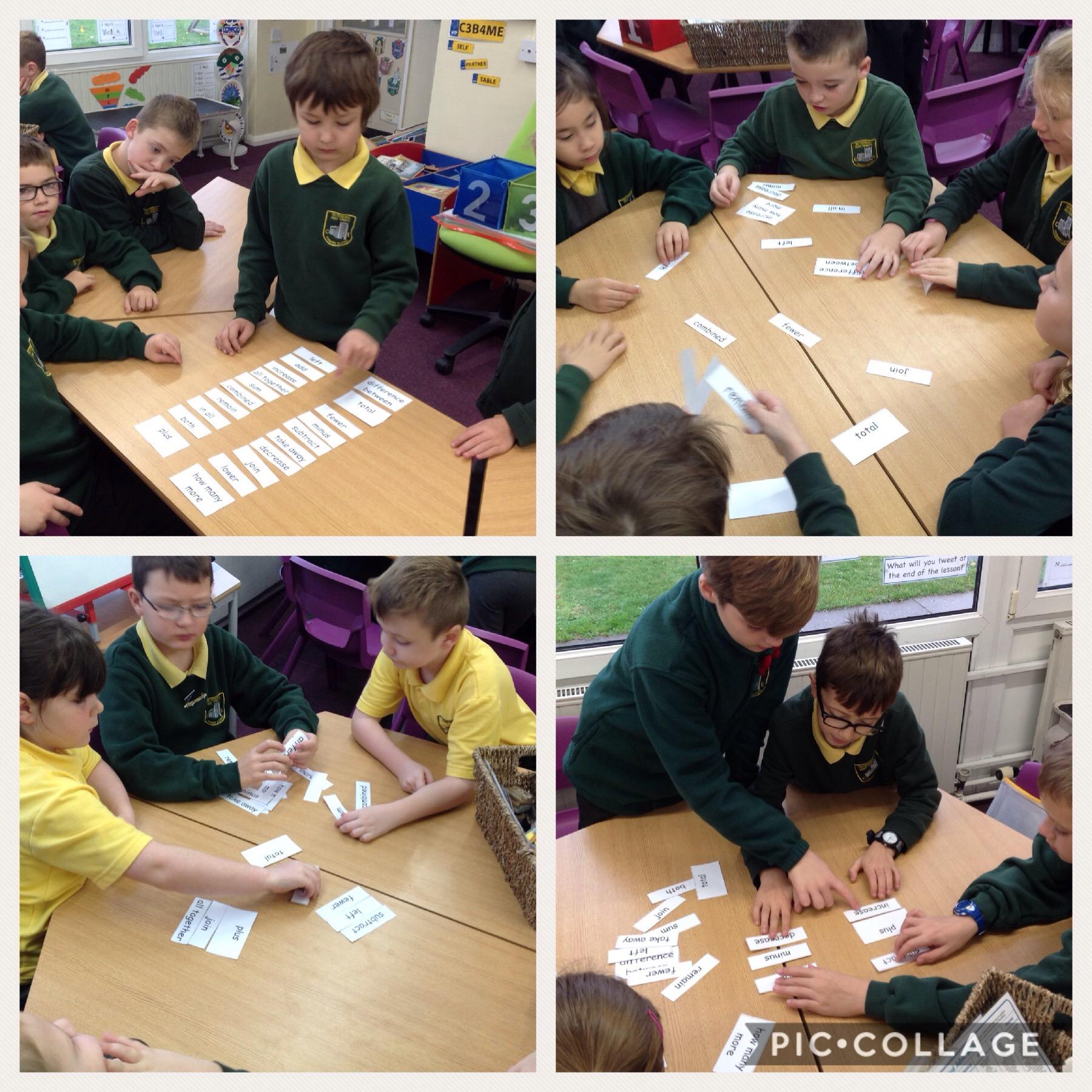 We have been learning the column method for addition and subtraction this week. We thought about the different types of language we might use when adding and subtracting and sorted them into two piles. We talked lots about how we might use this vocabulary when we're solving problems!