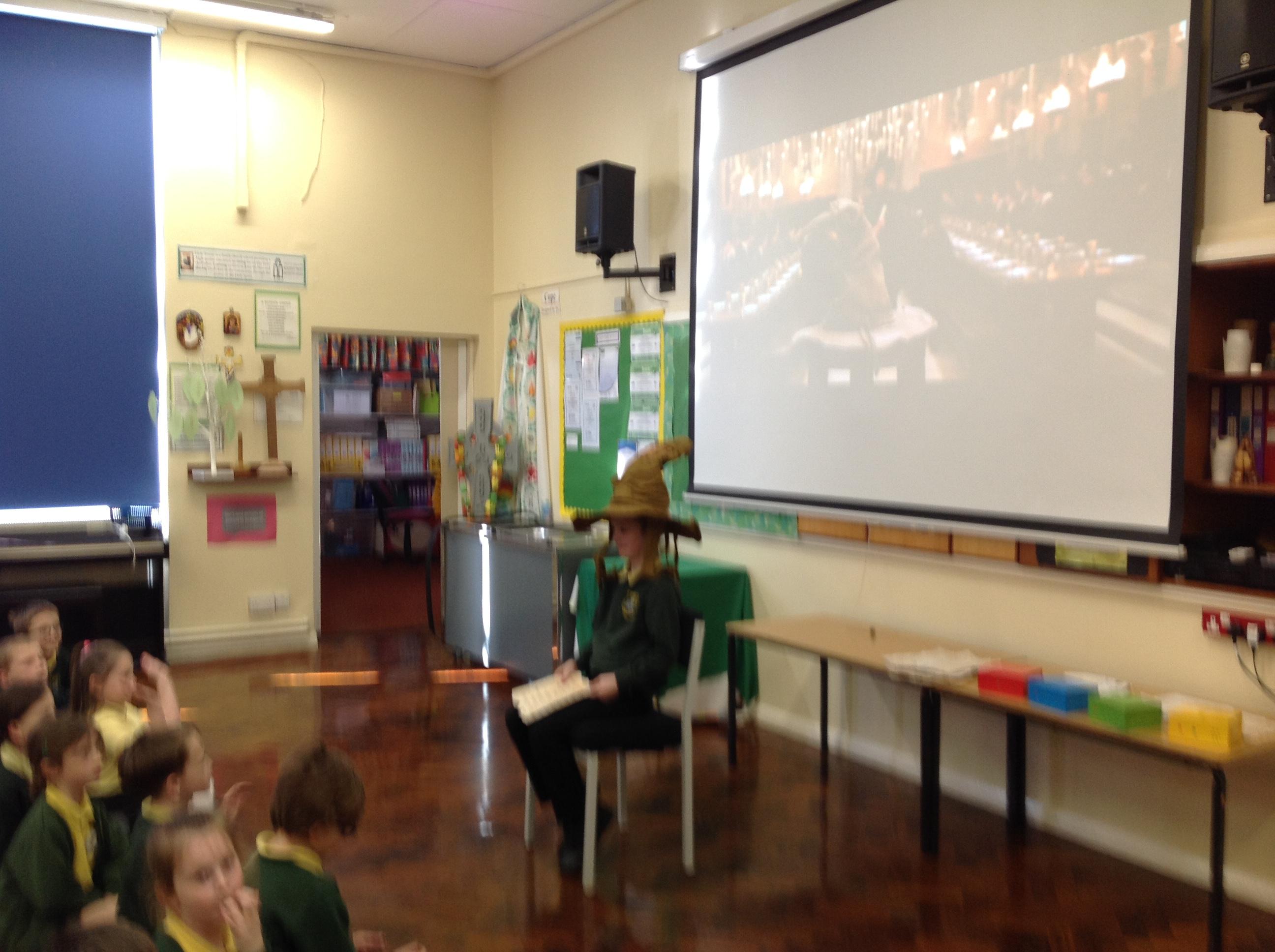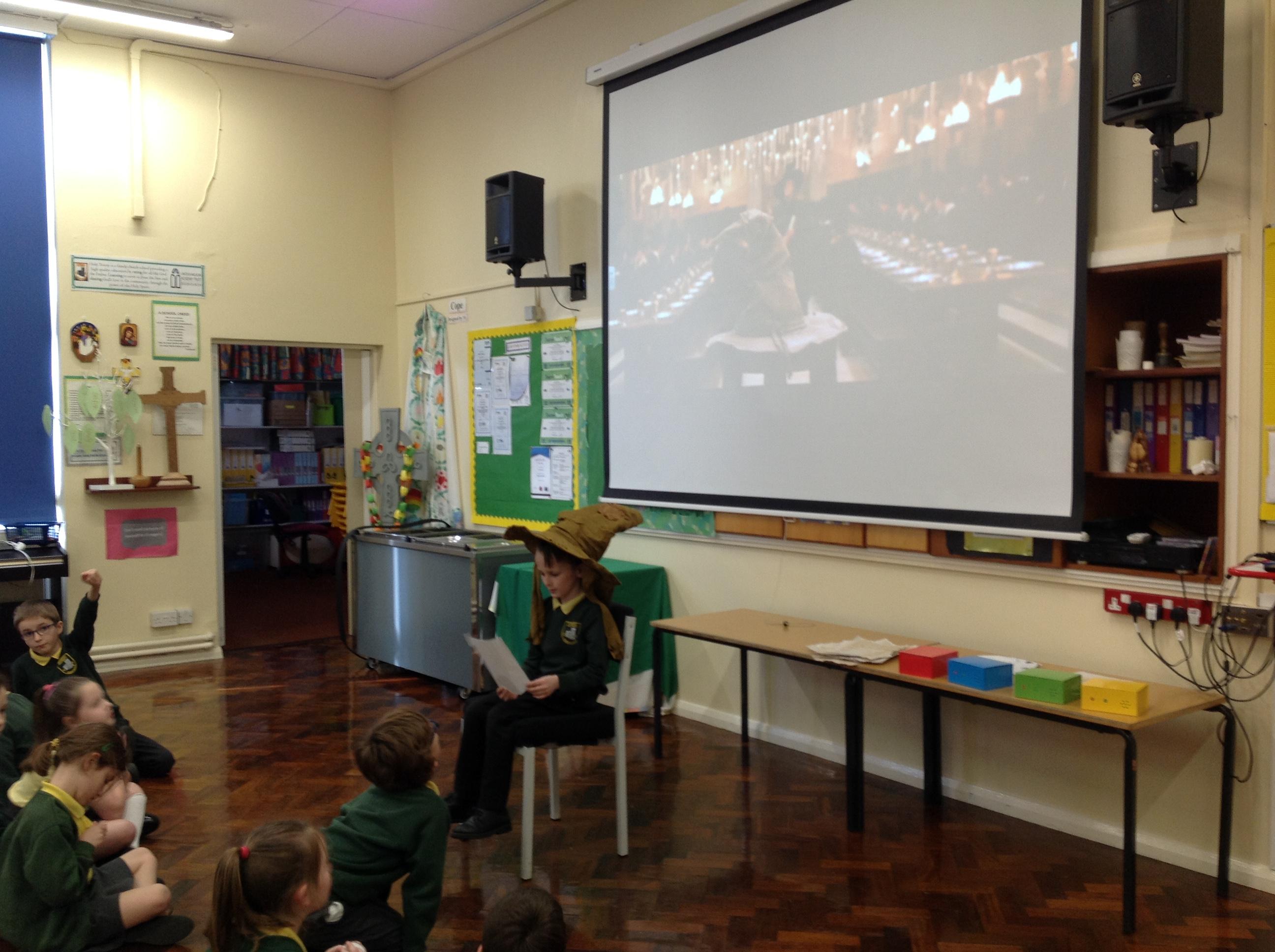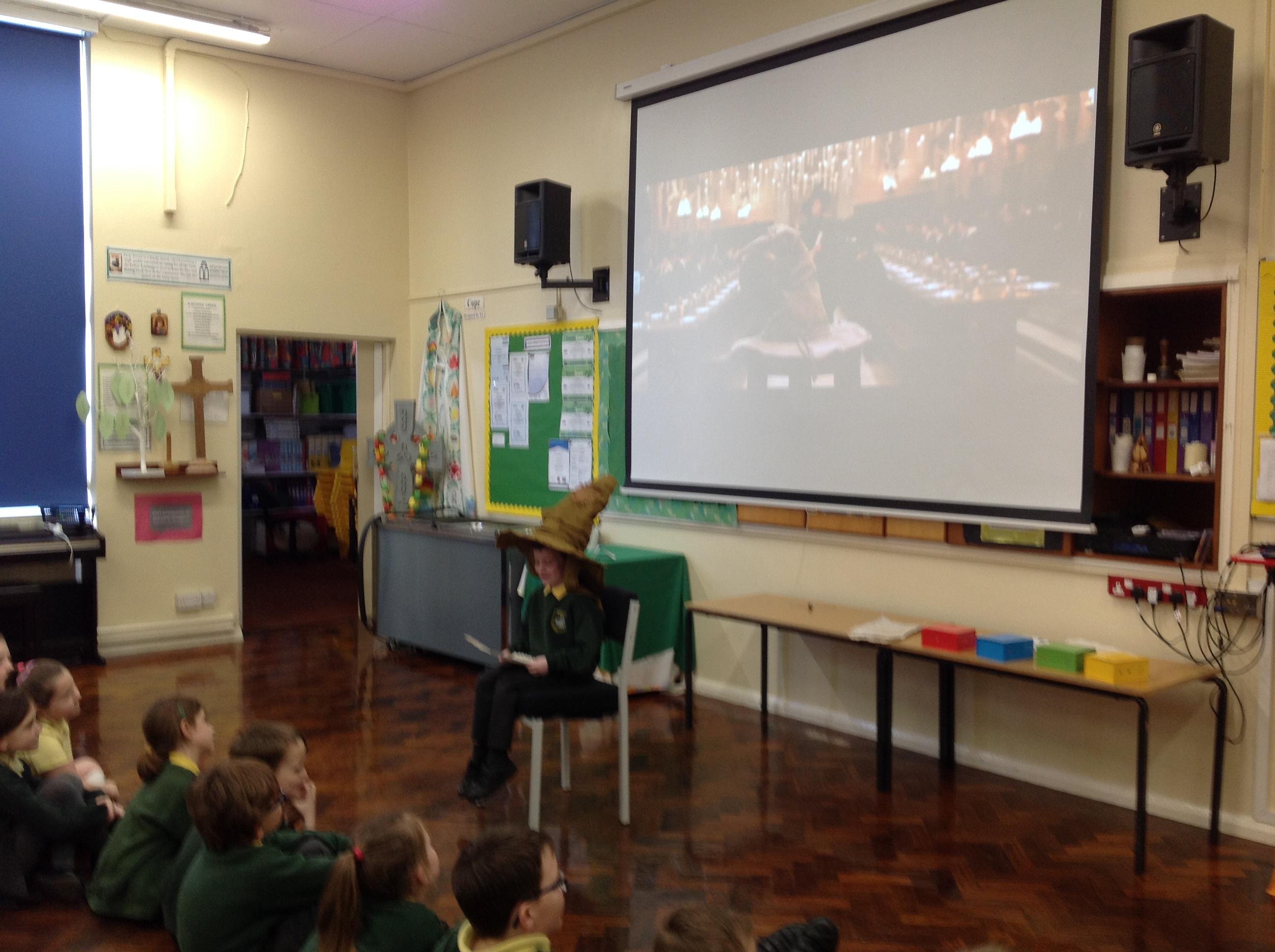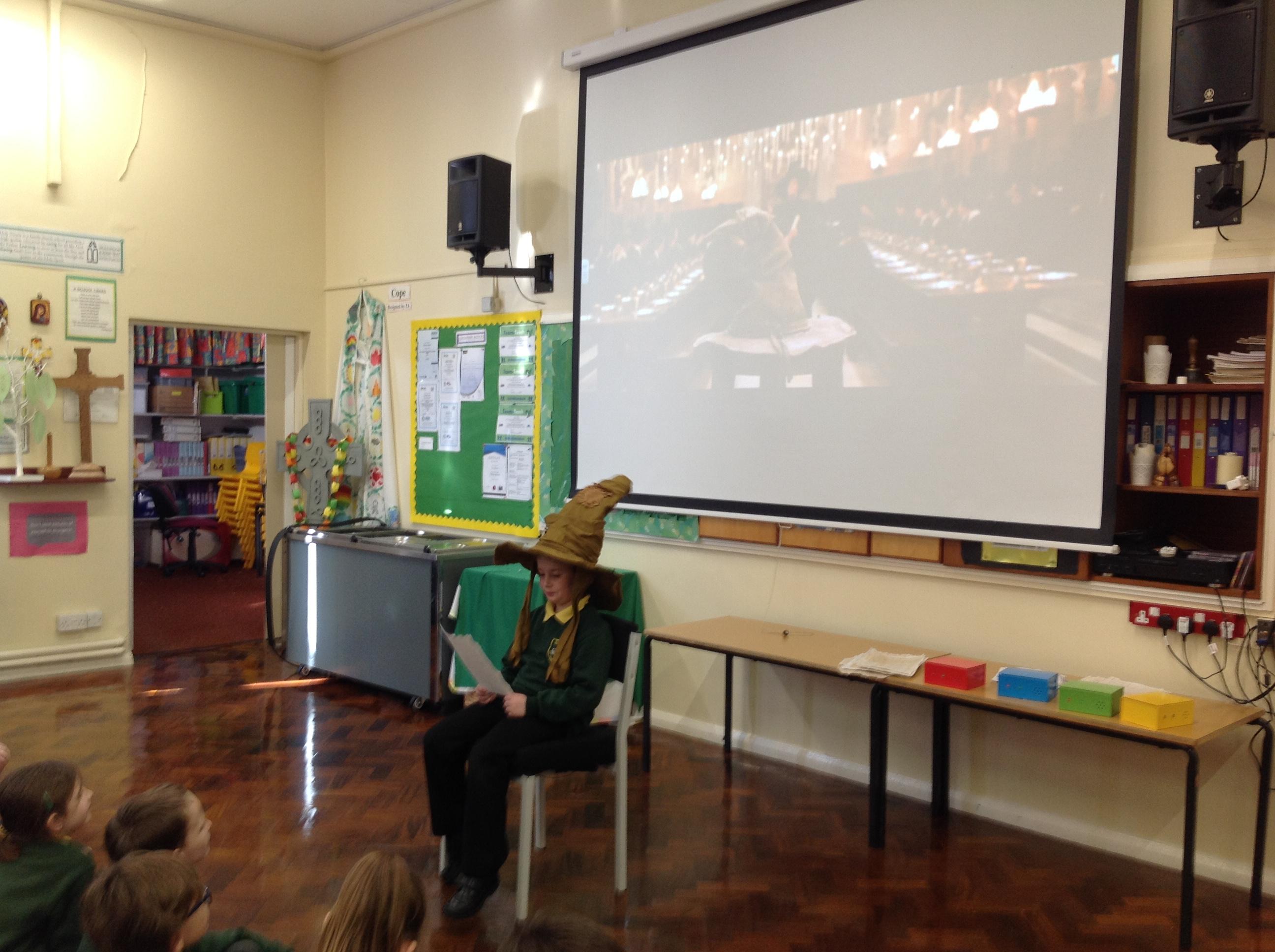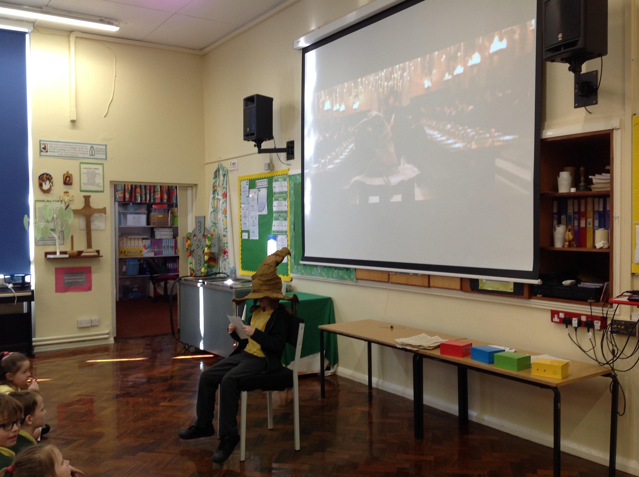 This week, we have been looking at persuasive writing techniques and we have written to the Sorting Hat to persuade them to put us in a certain house. This afternoon, we had a Sorting Ceremony of our own! We all got to wear the Sorting Hat and read our letters...and then we were sorted into our chosen house! We get to wear a new badge for the rest of the topic showing which house we are in!