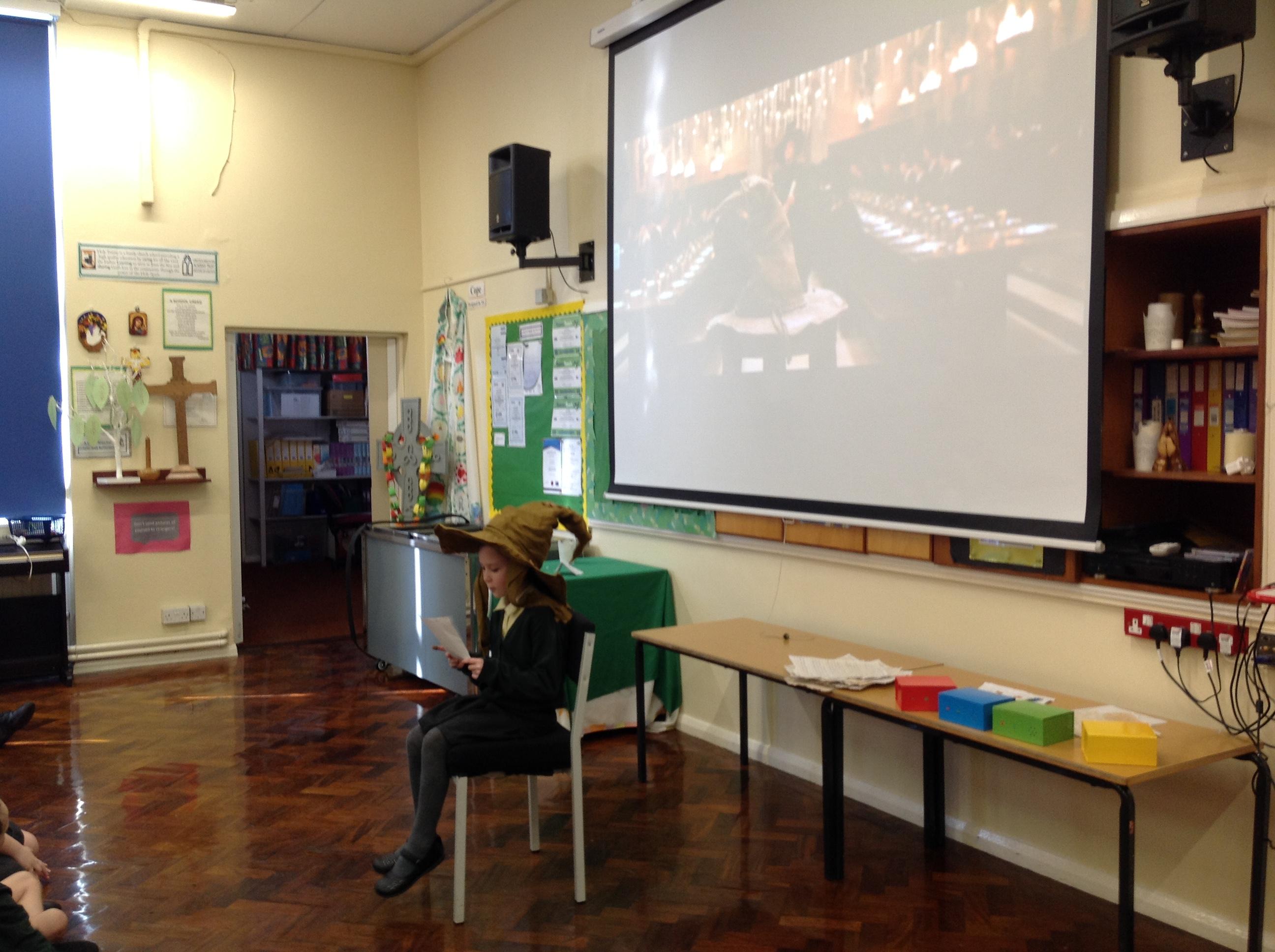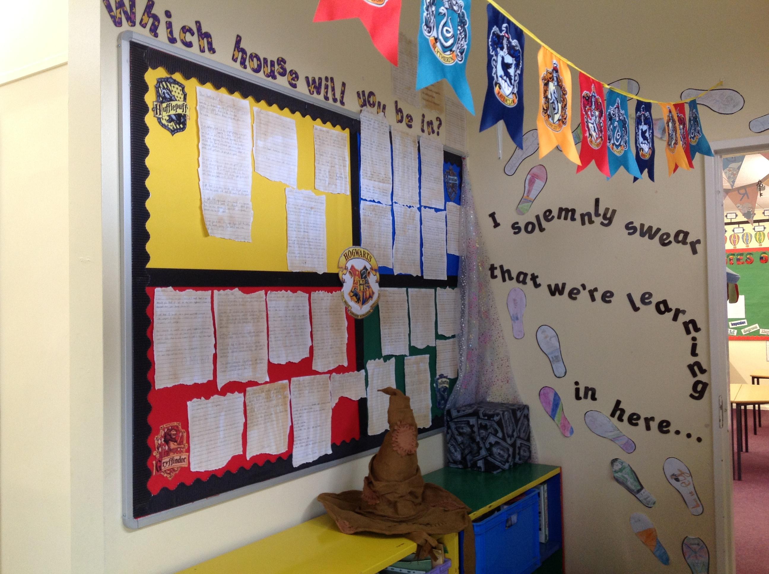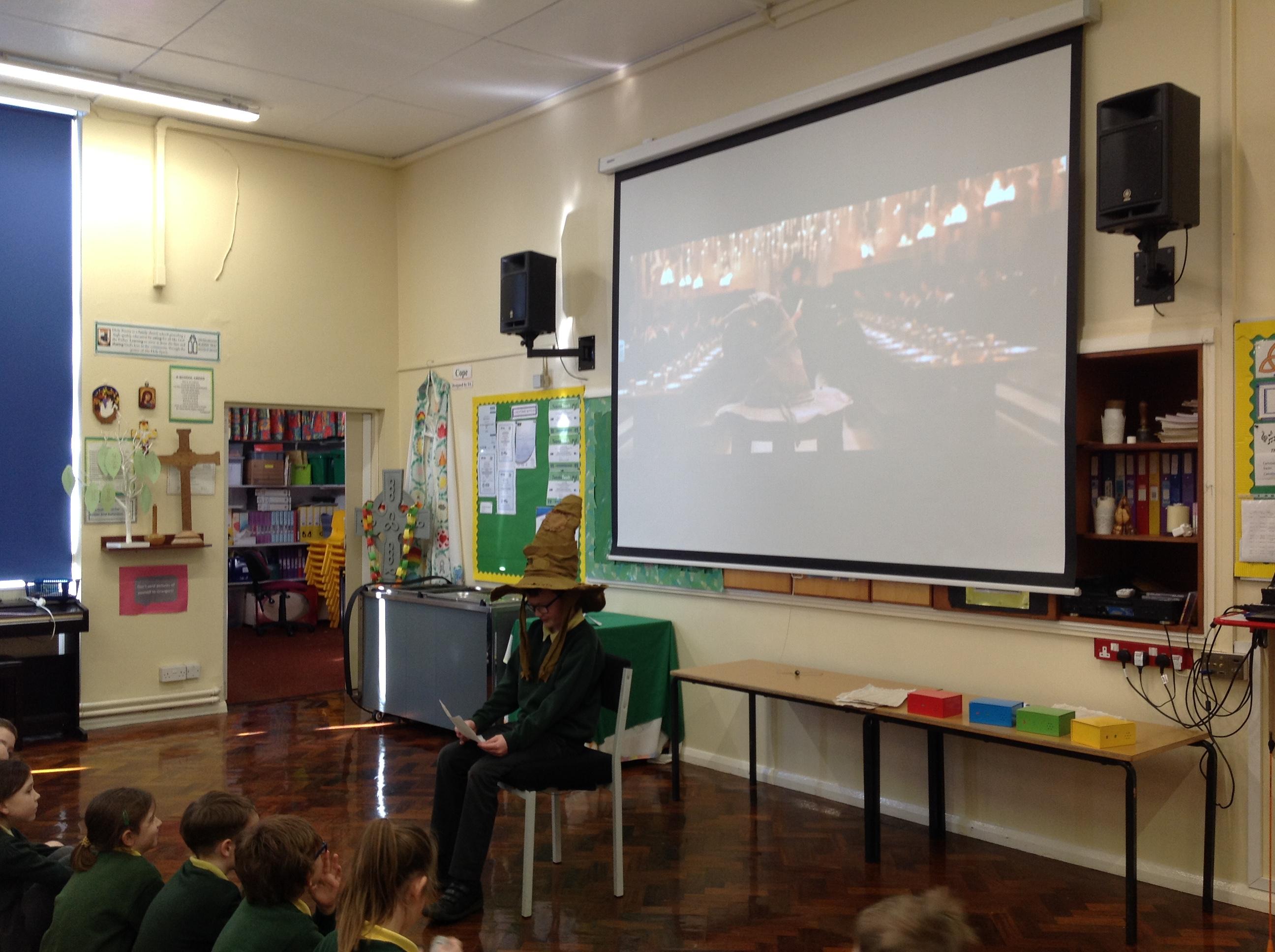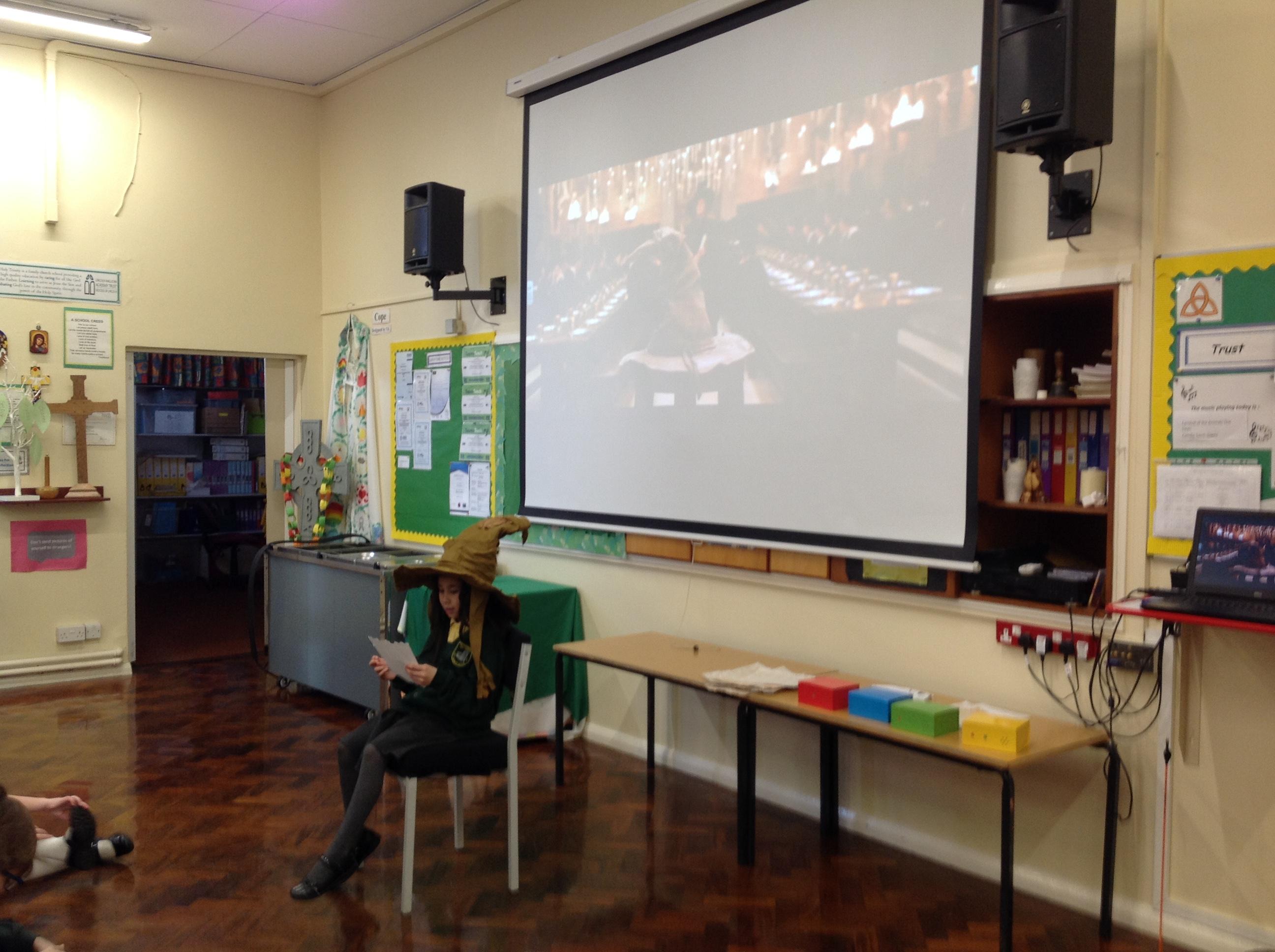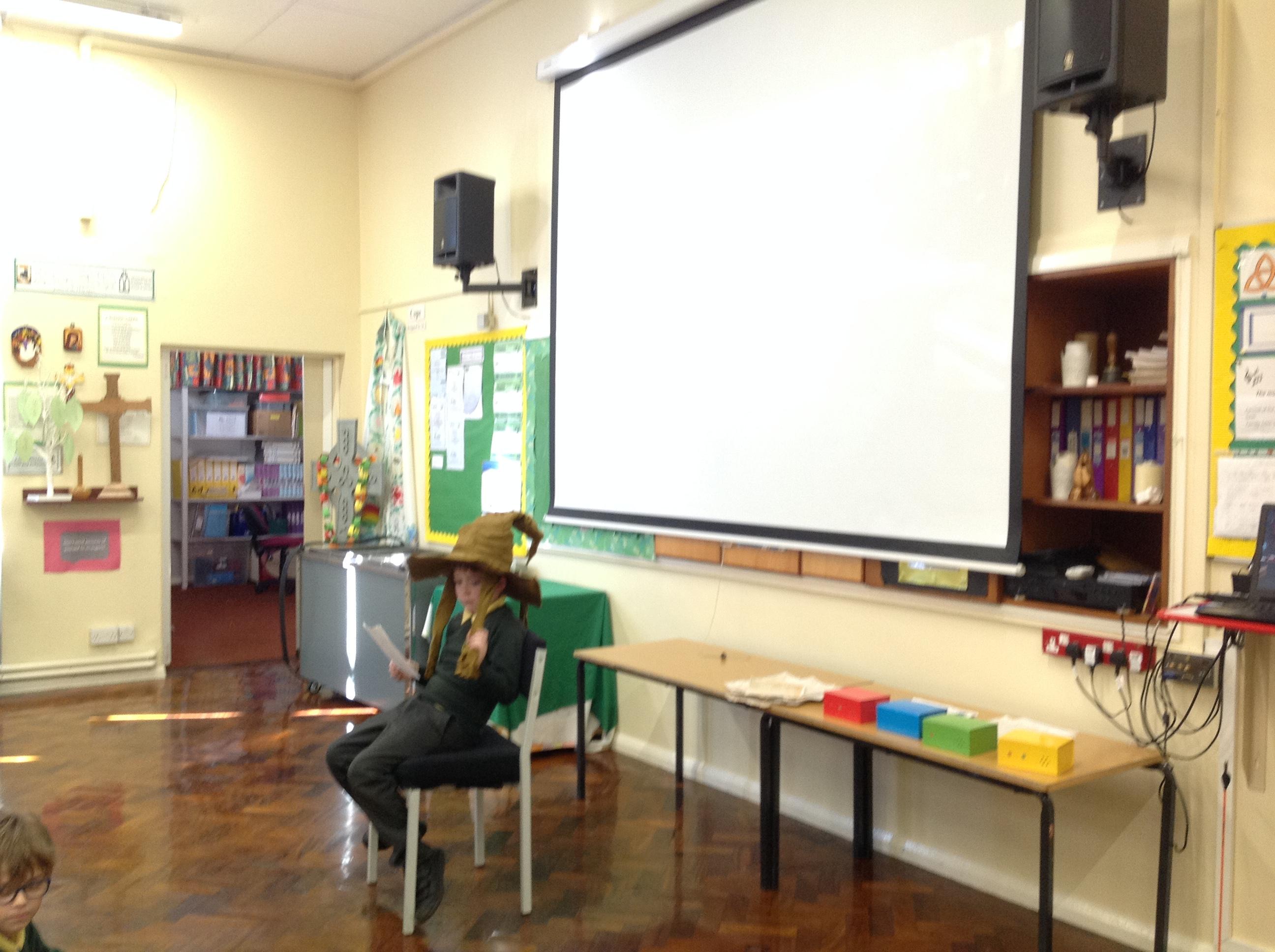 This week, we have been looking at persuasive writing techniques and we have written to the Sorting Hat to persuade them to put us in a certain house. This afternoon, we had a Sorting Ceremony of our own! We all got to wear the Sorting Hat and read our letters...and then we were sorted into our chosen house! We get to wear a new badge for the rest of the topic showing which house we are in!