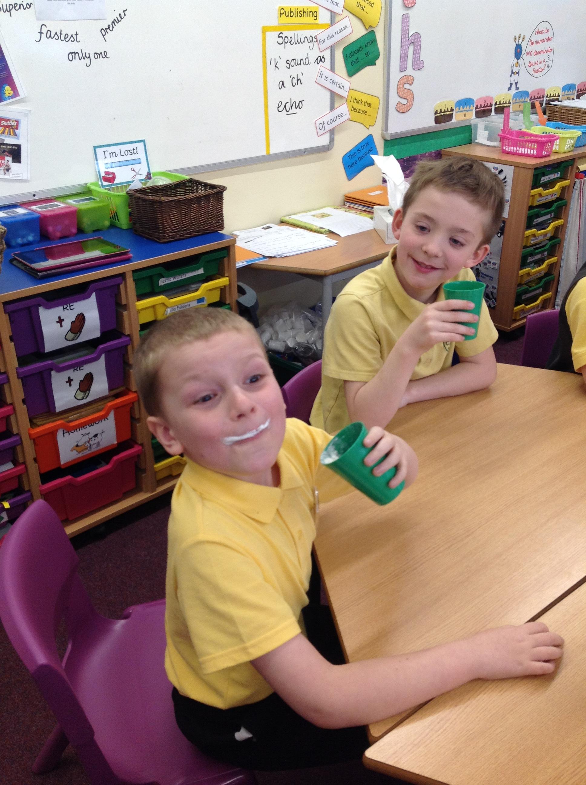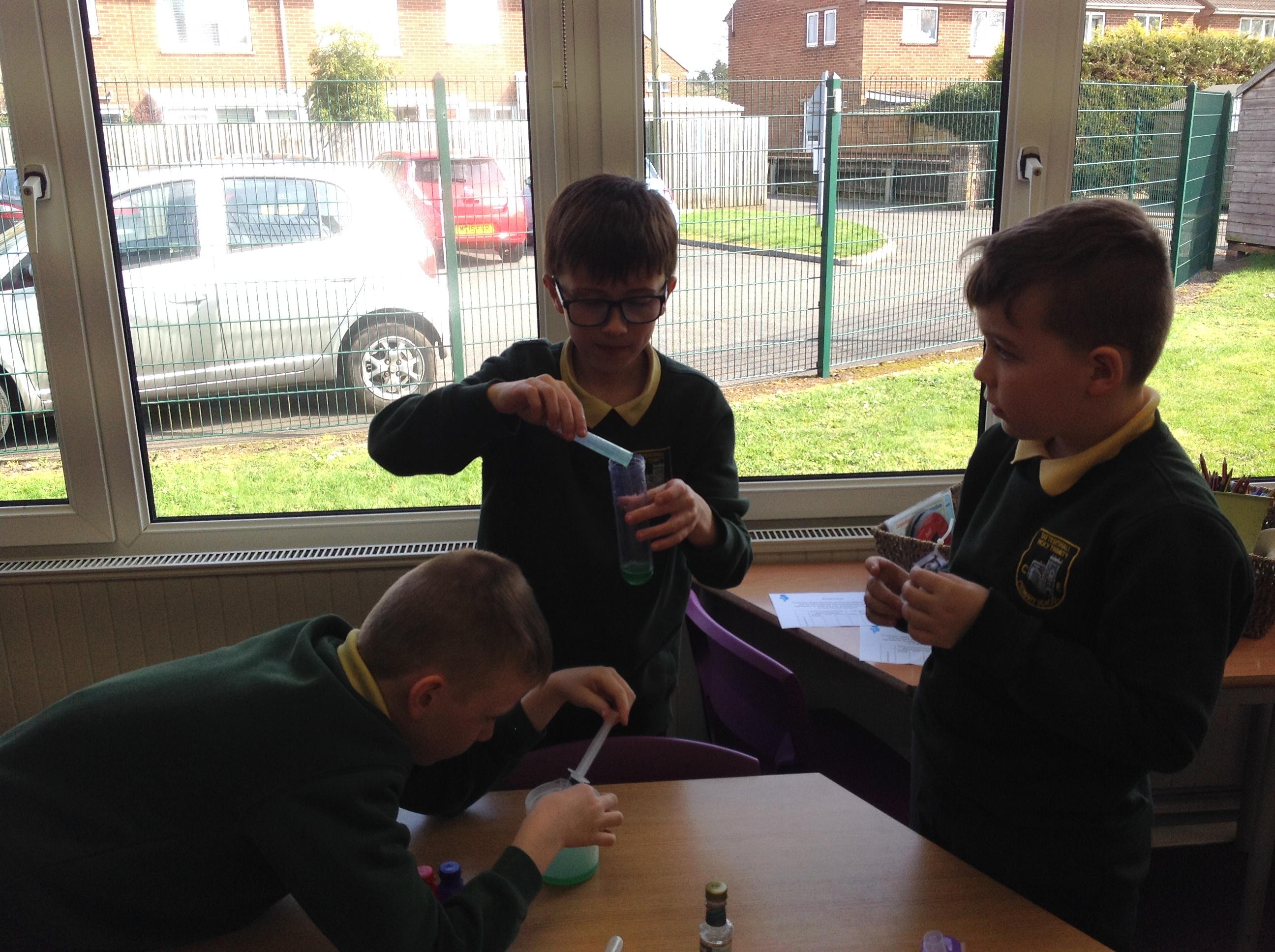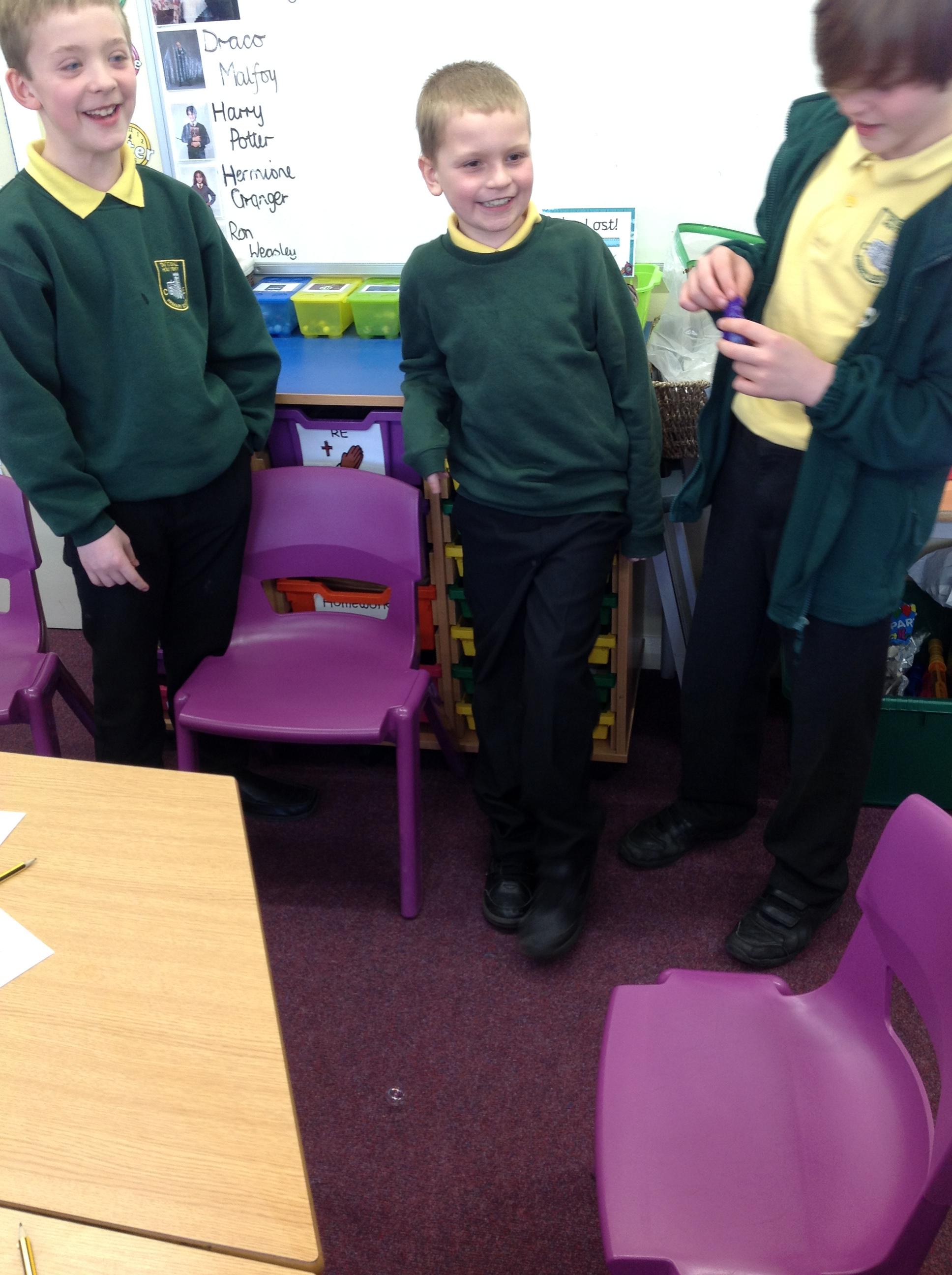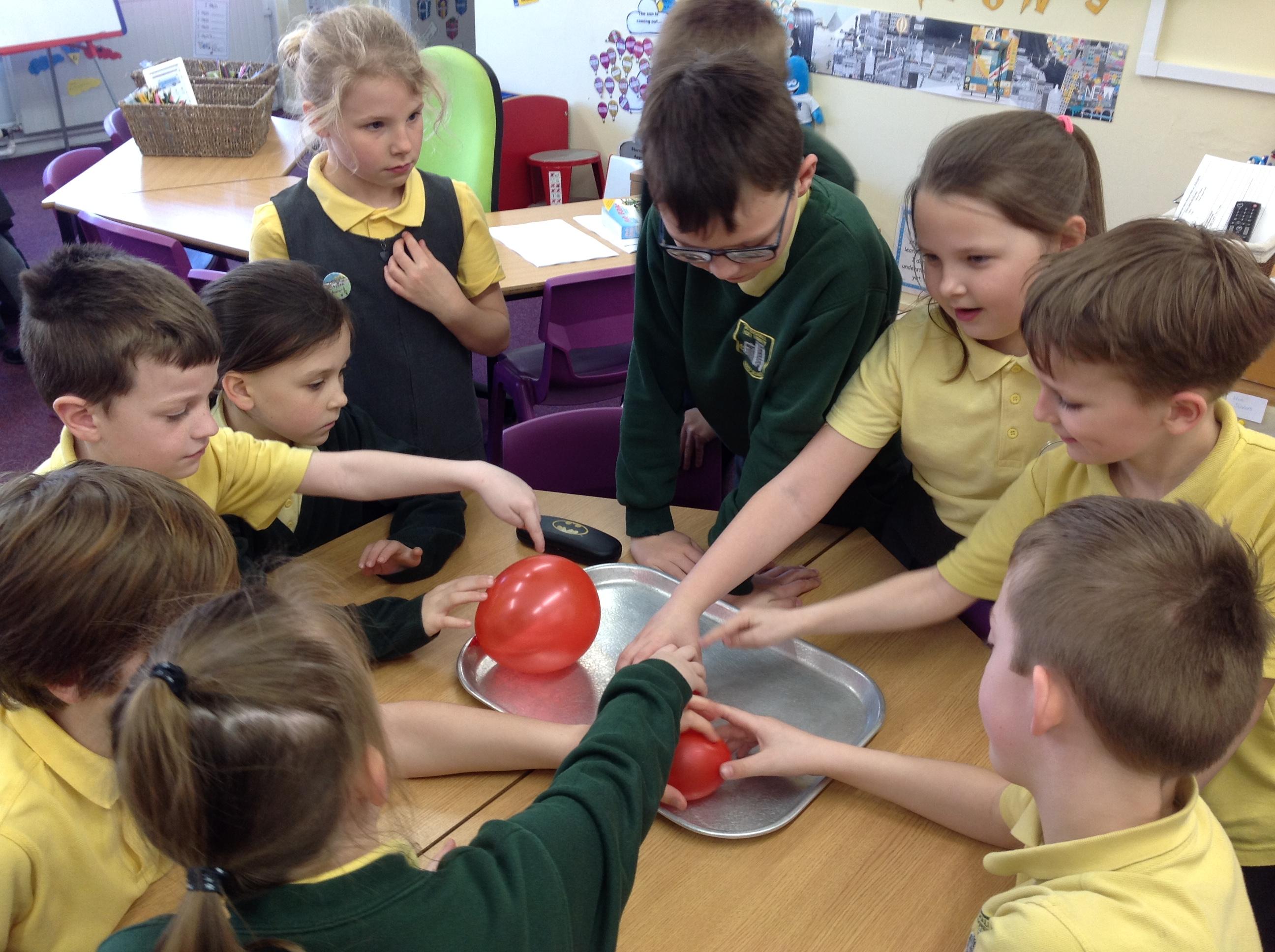 We have had a very exciting afternoon! We were set a challenge to inflate a balloon using bicarbonate of soda and vinegar! We put the balloon over the vinegar and poured in the bicarbonate of soda. This created a chemical reaction, which gave off a gas that filled the balloon!