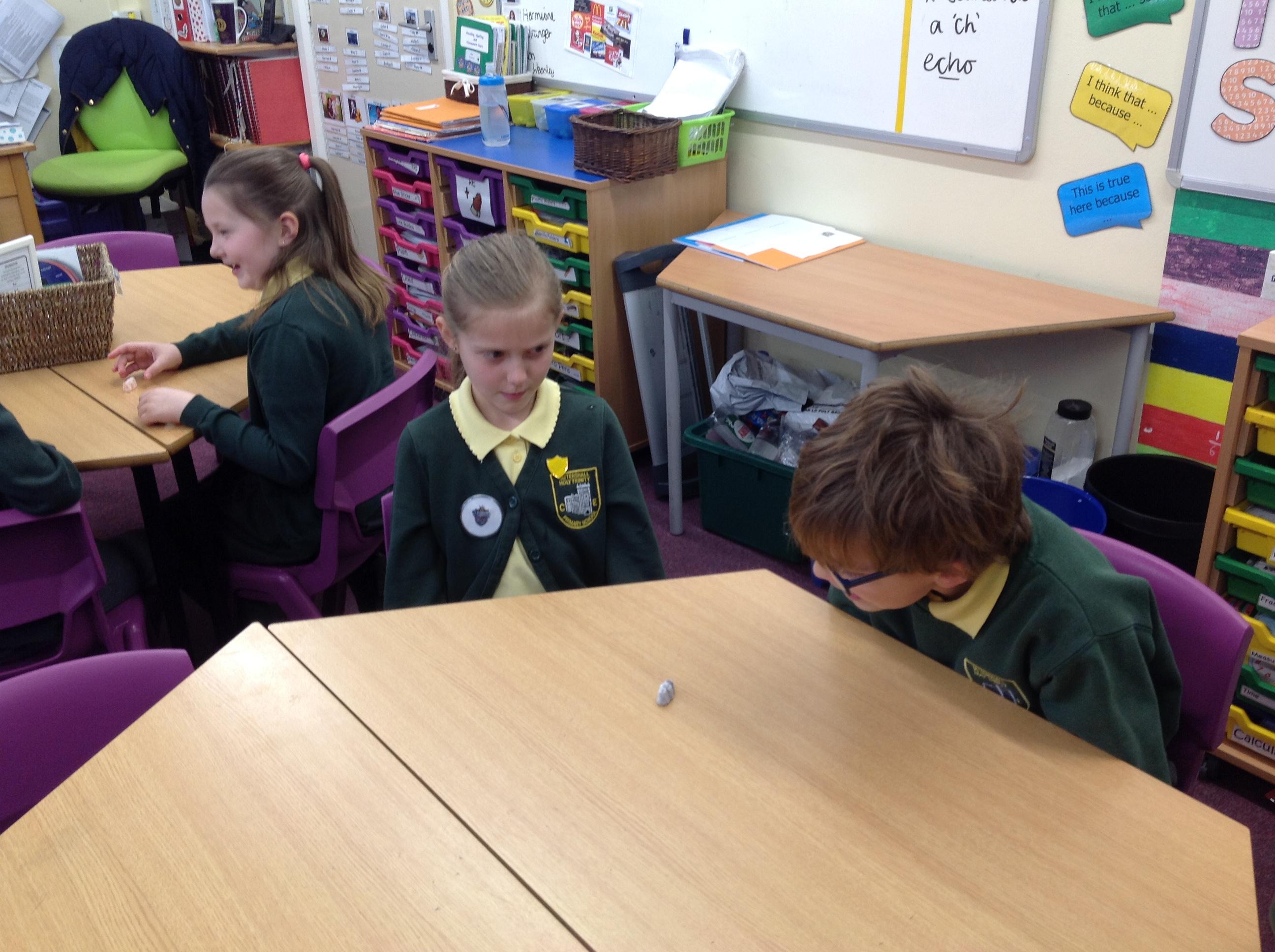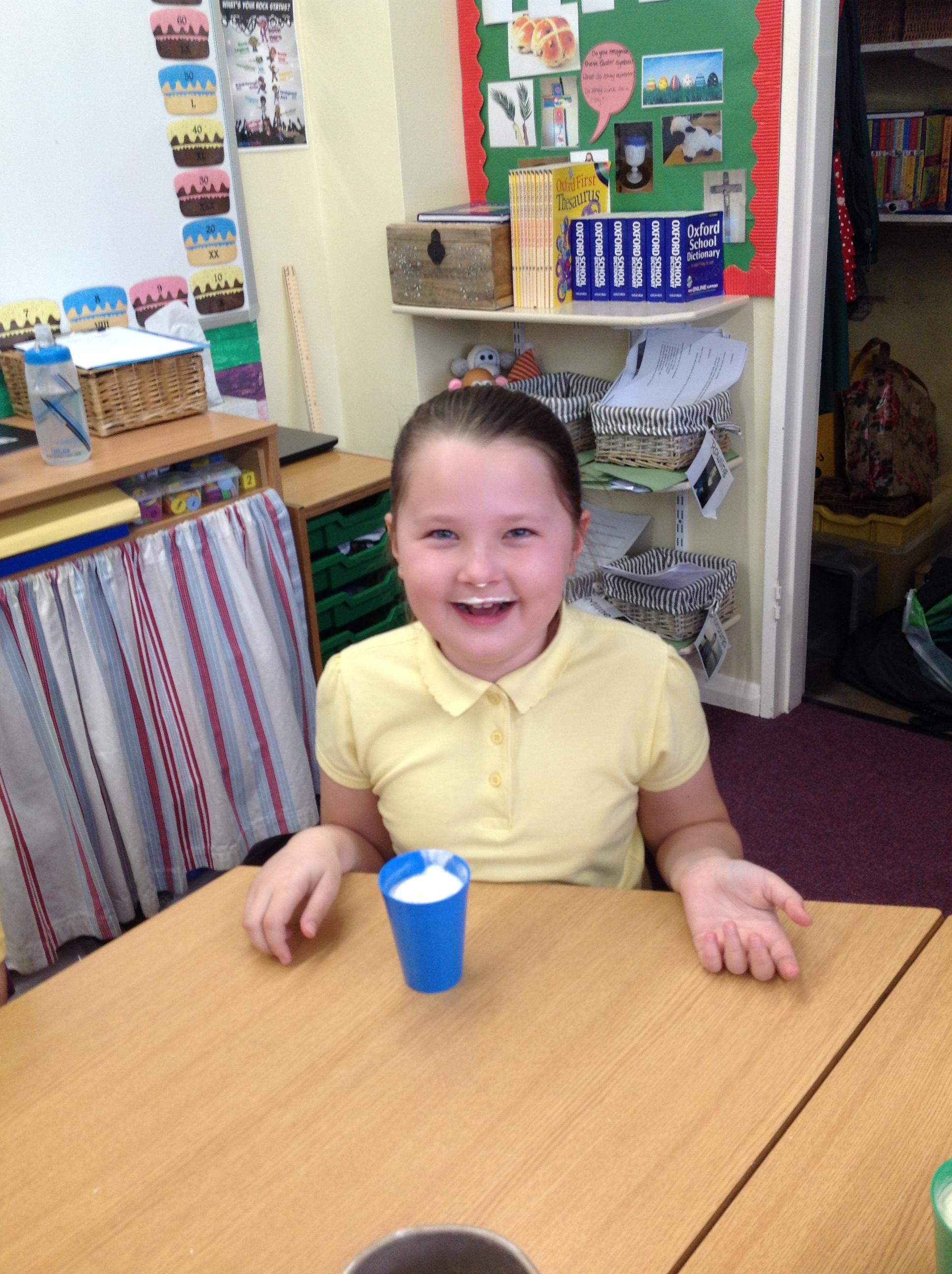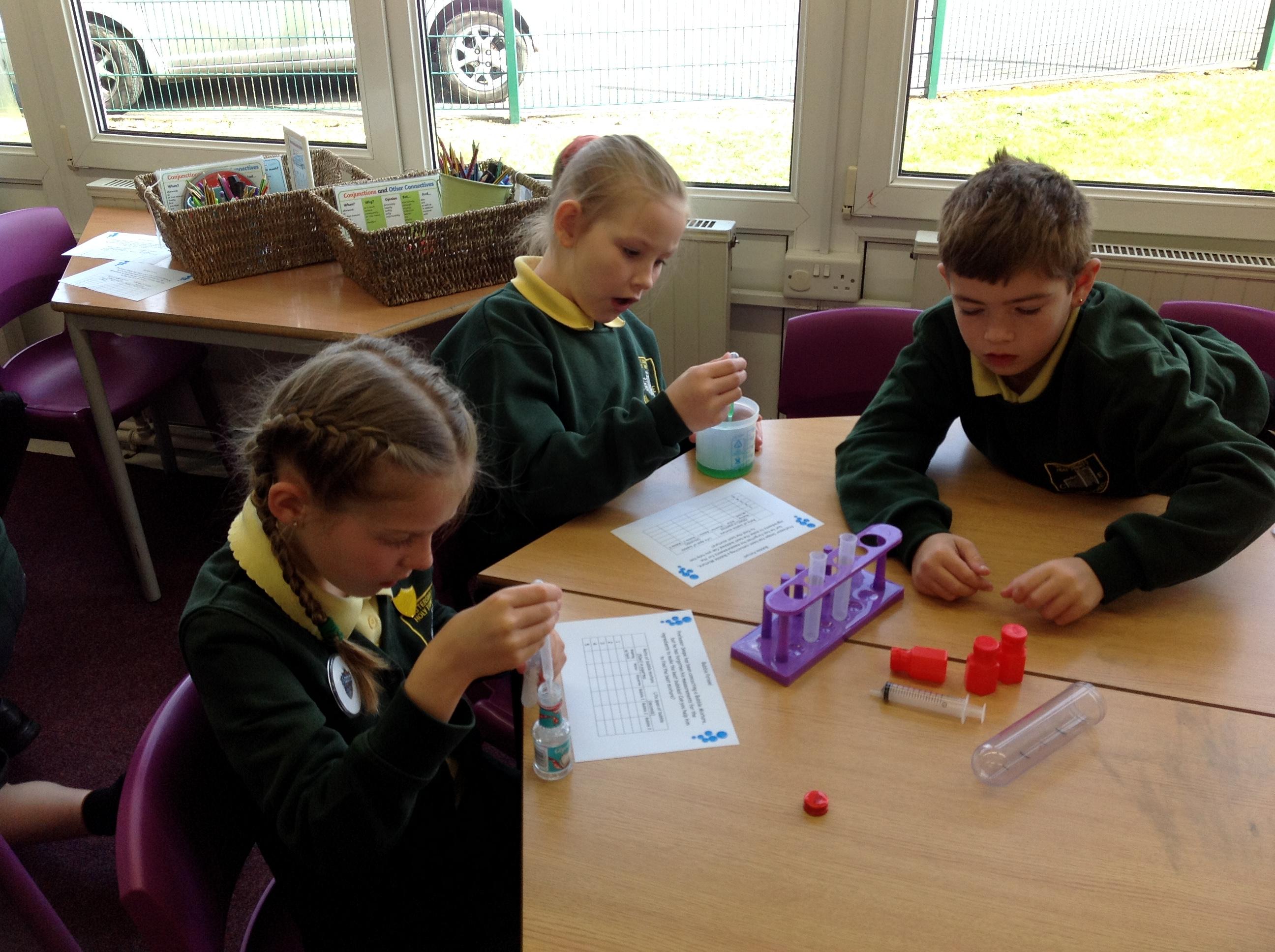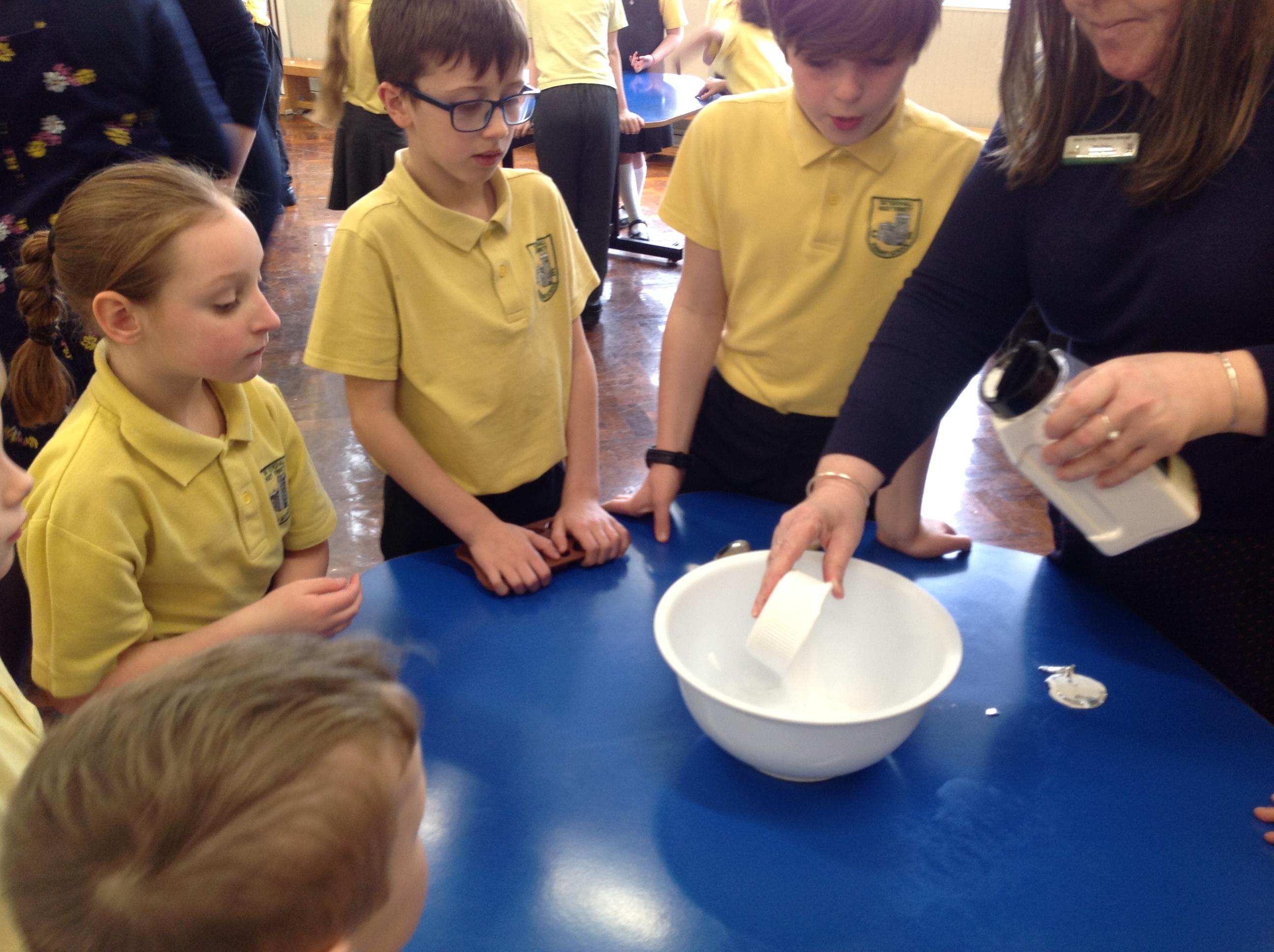 We have had a very exciting afternoon! We were set a challenge to inflate a balloon using bicarbonate of soda and vinegar! We put the balloon over the vinegar and poured in the bicarbonate of soda. This created a chemical reaction, which gave off a gas that filled the balloon!