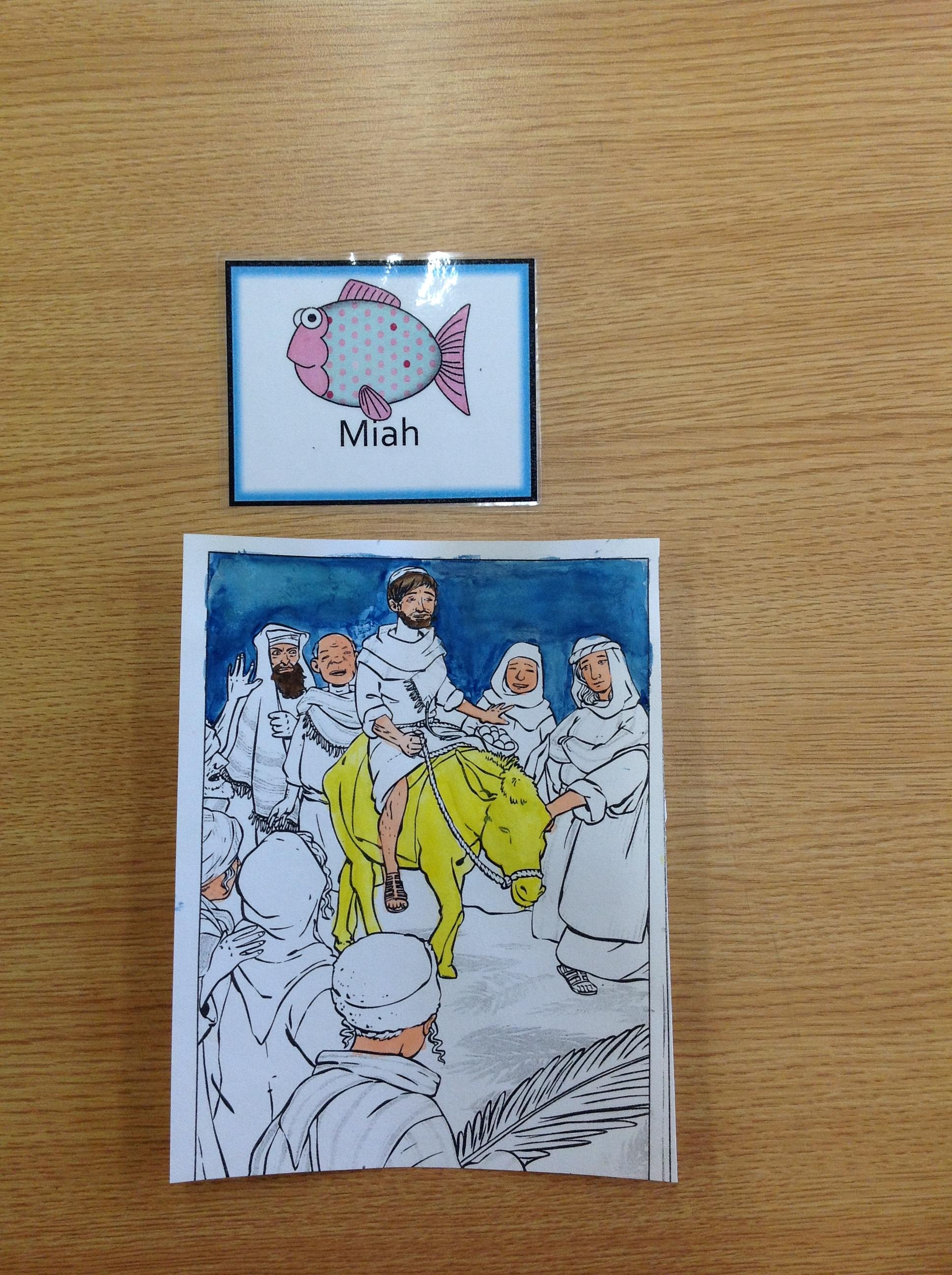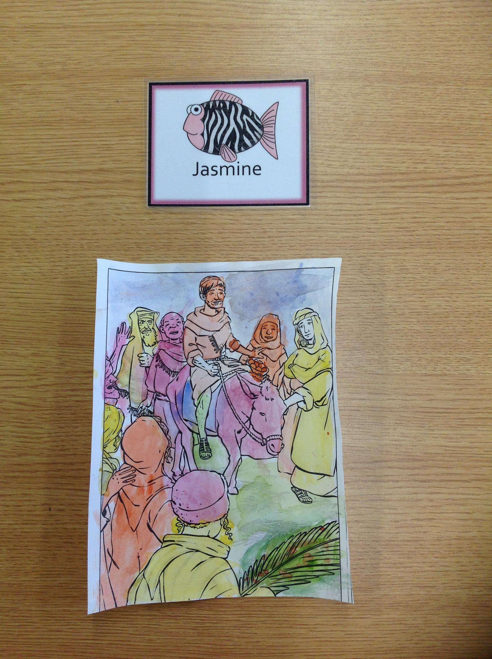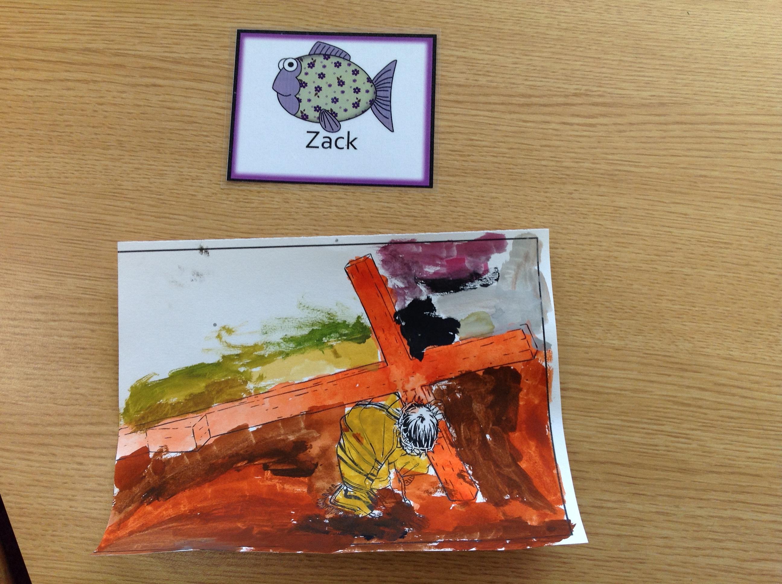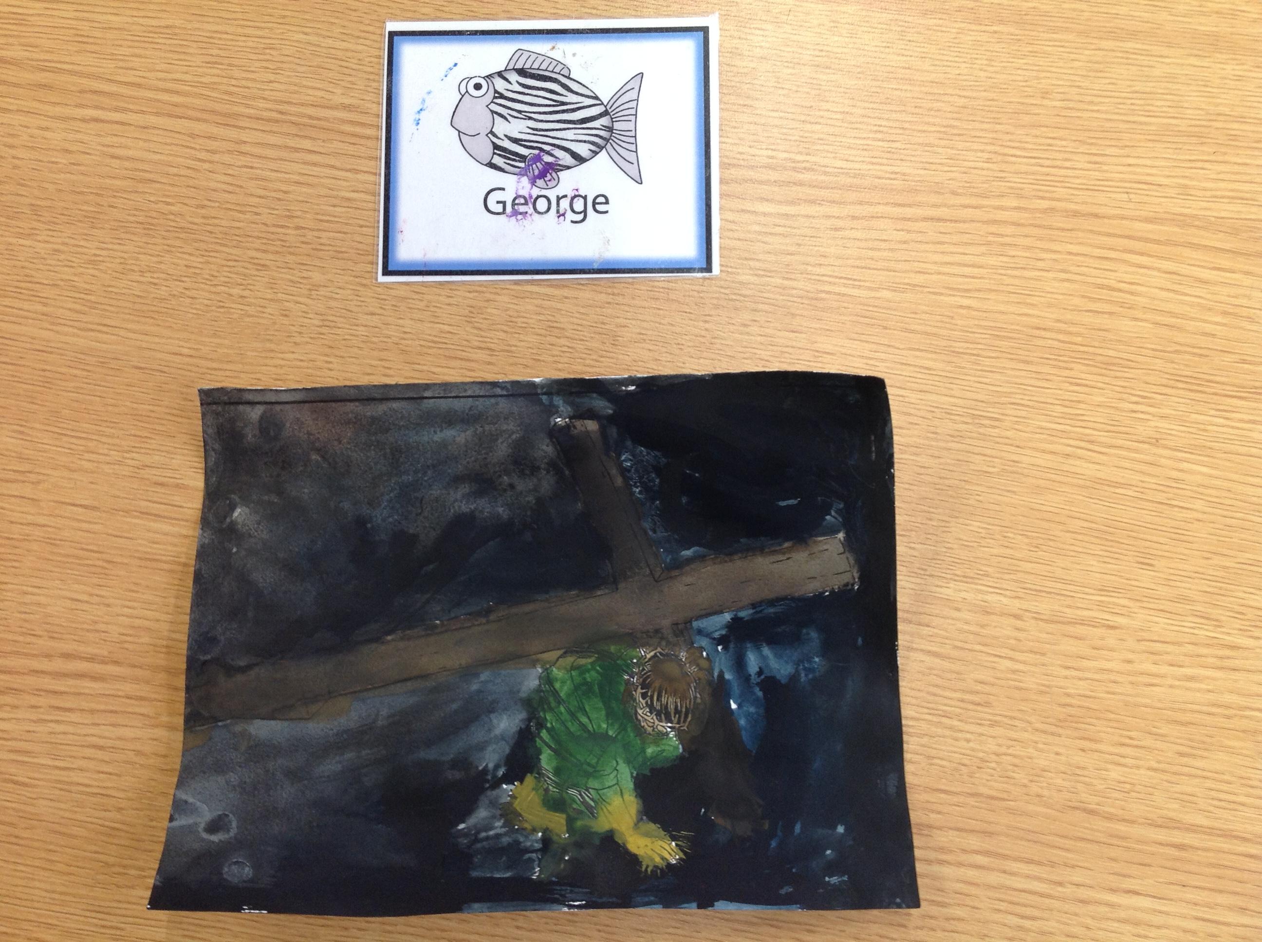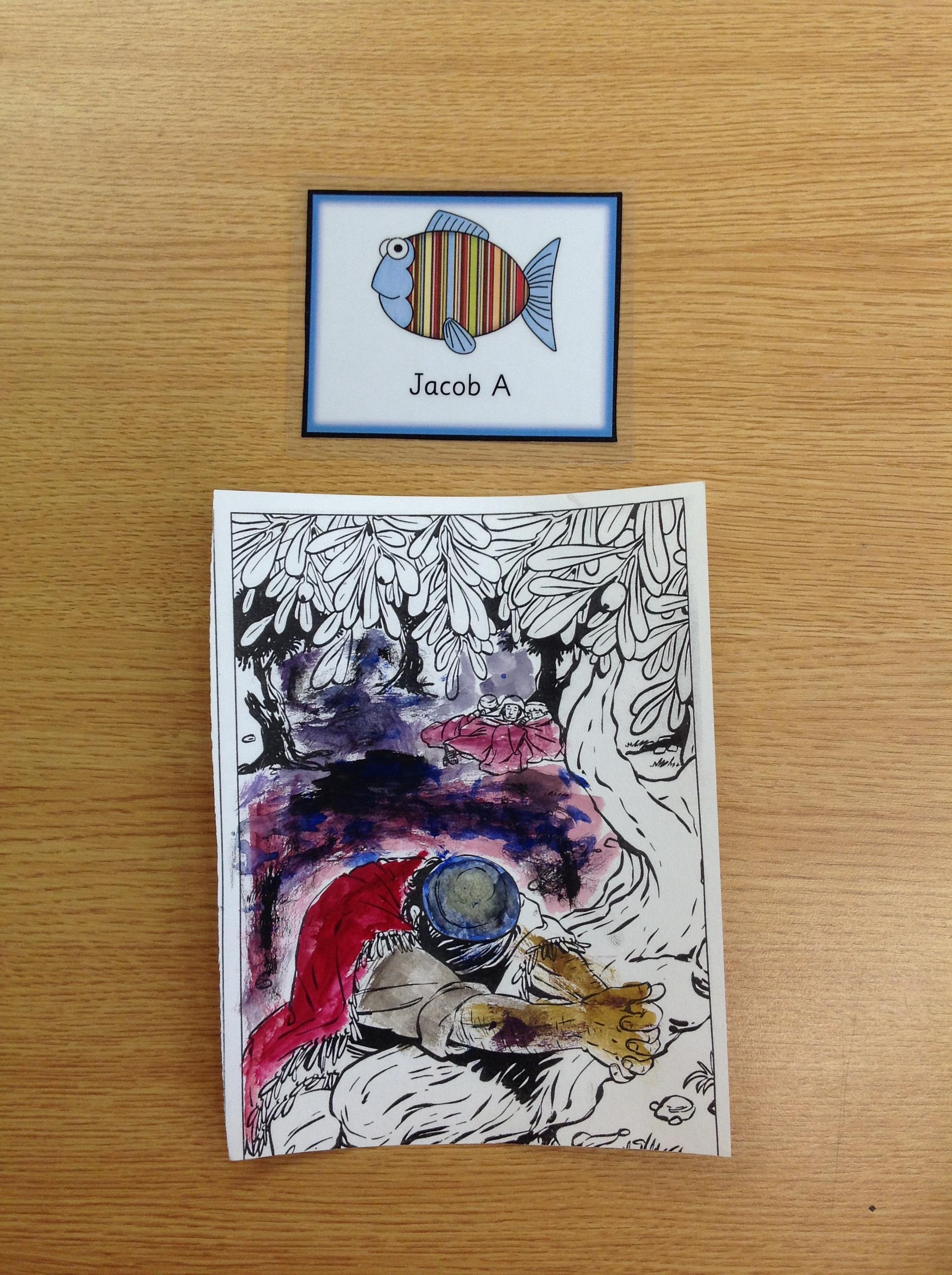 We having been thinking about the Easter Week and how Mary felt at different points of the story. We used watercolours to paint these pictures using colours that echoed Mary's feelings at that point in the story.