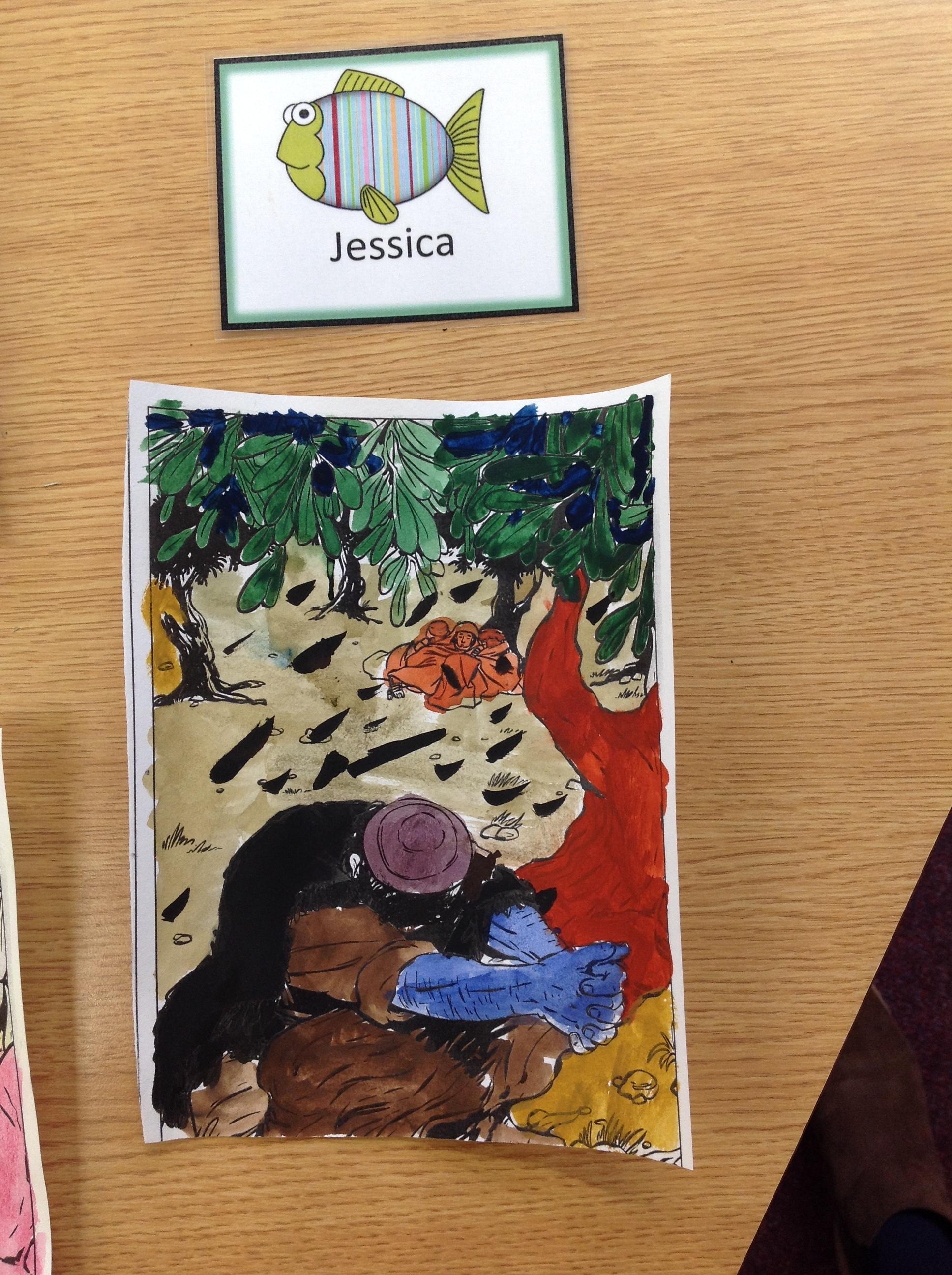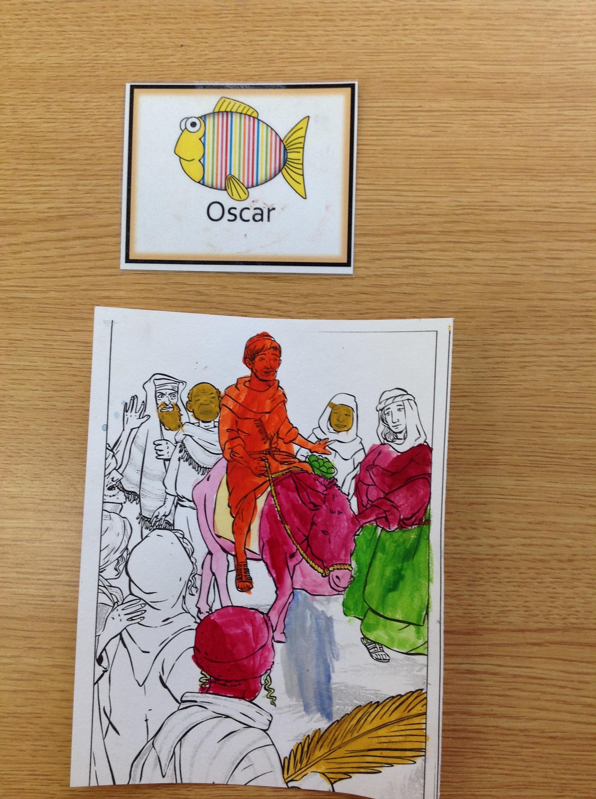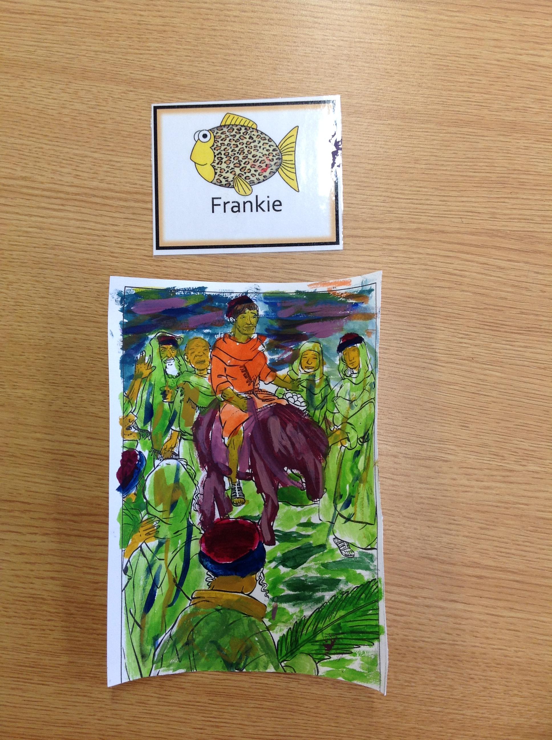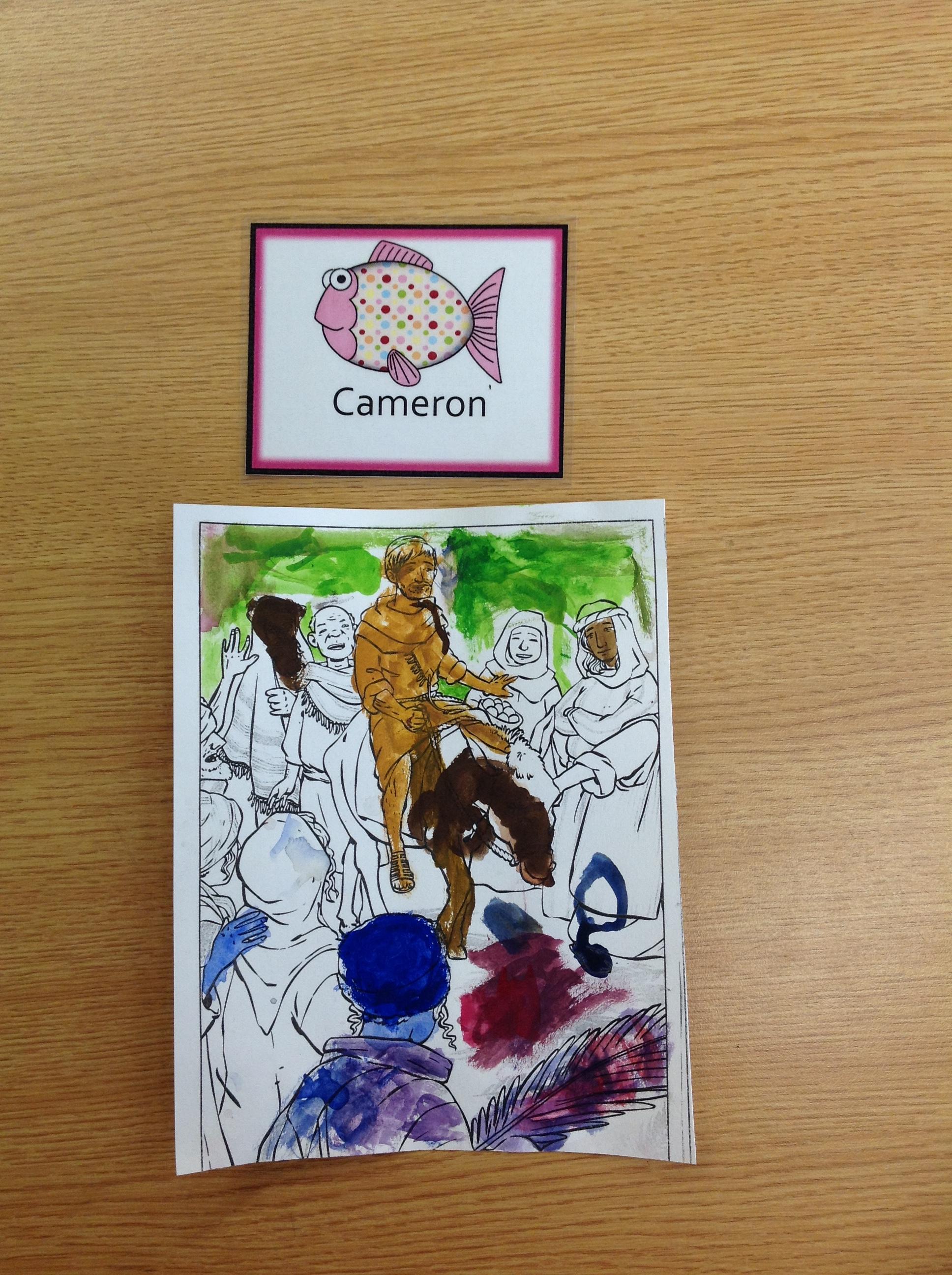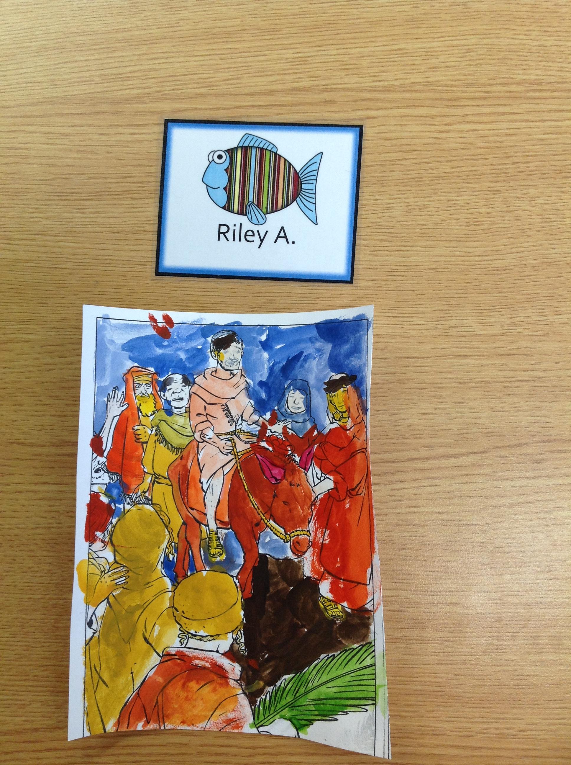 We having been thinking about the Easter Week and how Mary felt at different points of the story. We used watercolours to paint these pictures using colours that echoed Mary's feelings at that point in the story.