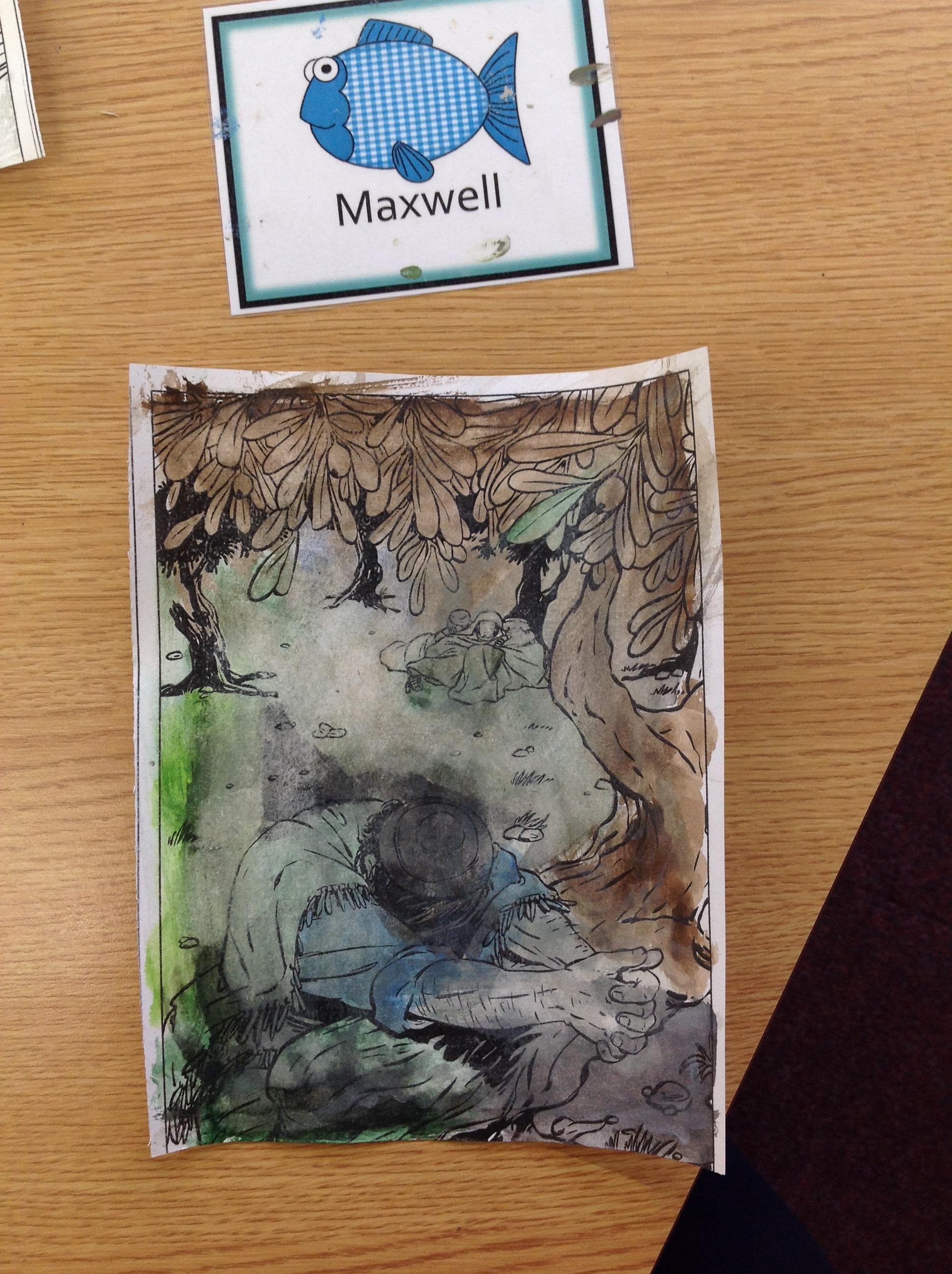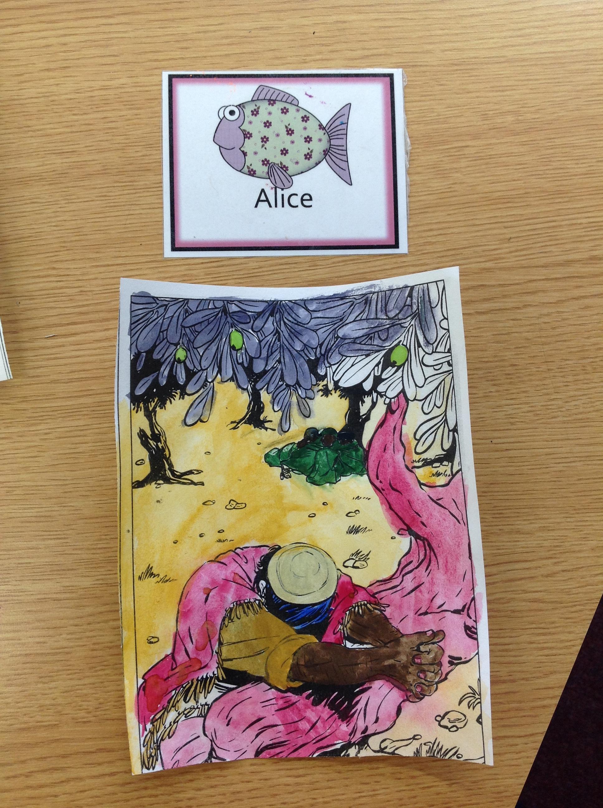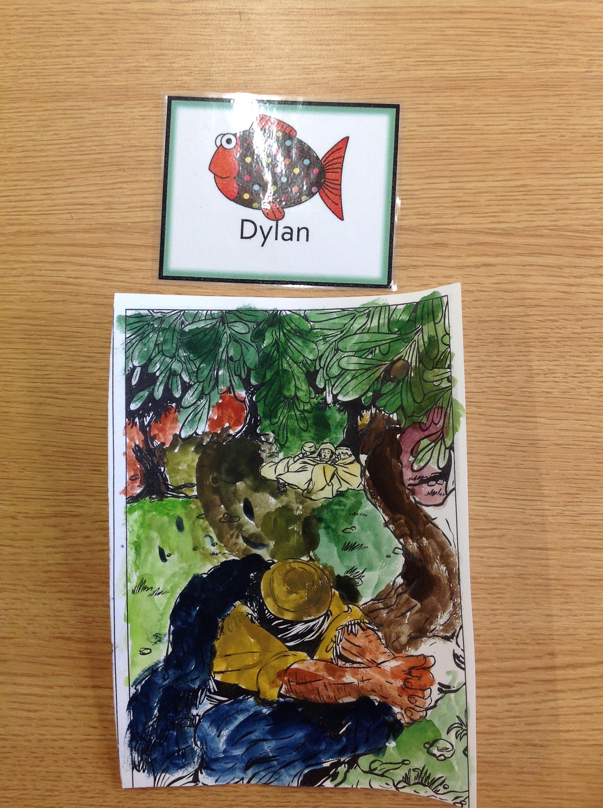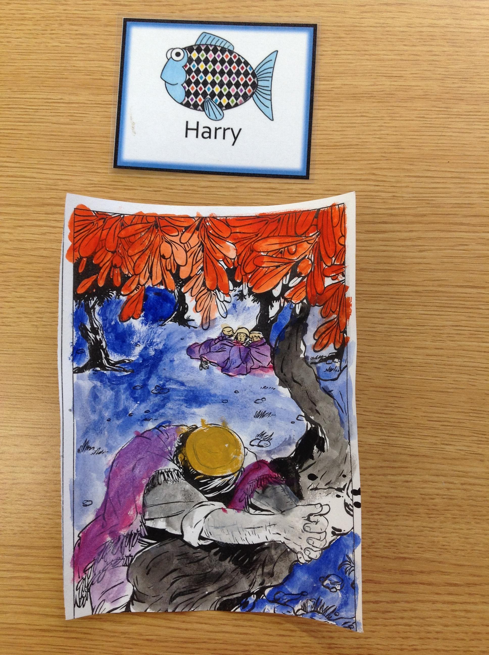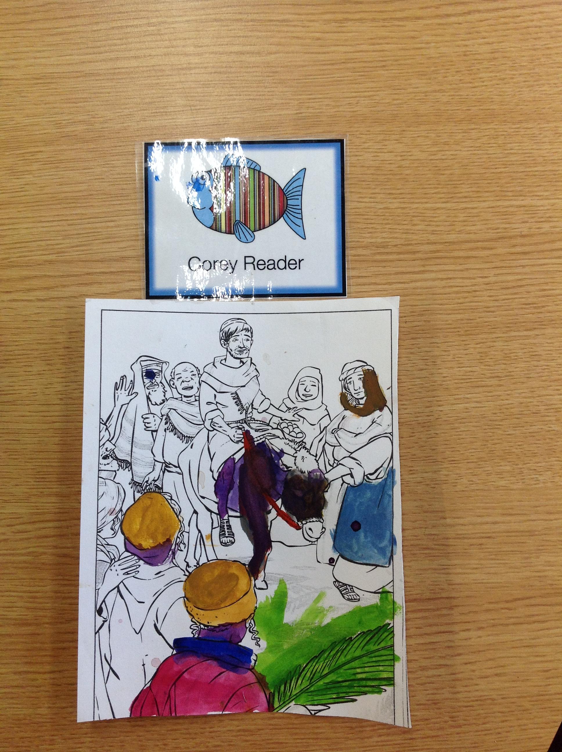 We having been thinking about the Easter Week and how Mary felt at different points of the story. We used watercolours to paint these pictures using colours that echoed Mary's feelings at that point in the story.