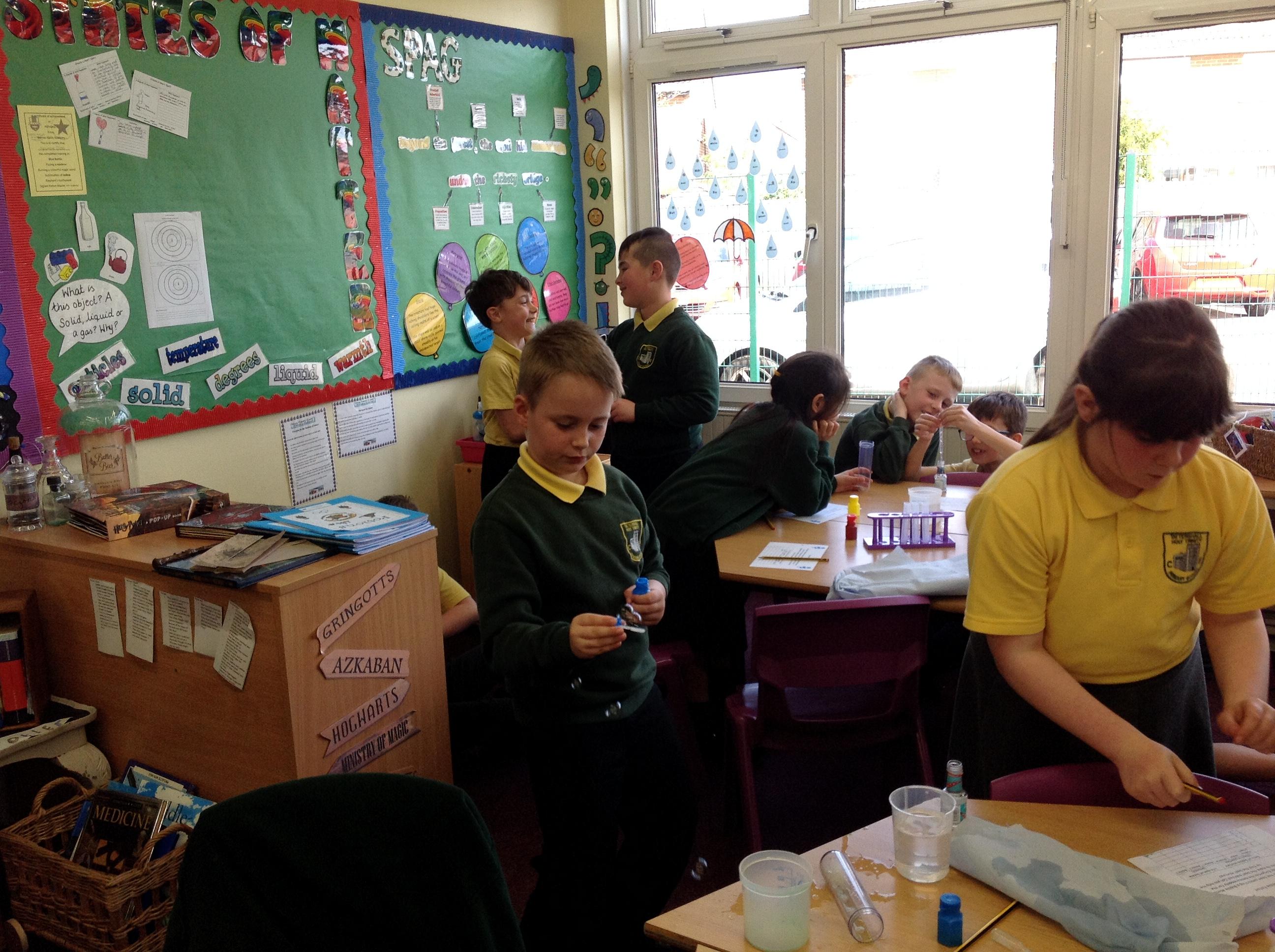 Now we are experts on solids, liquids and gases...we have started to think about how they can move between one another and make reversible changes. We learnt new vocabulary of evaporate and condense!
